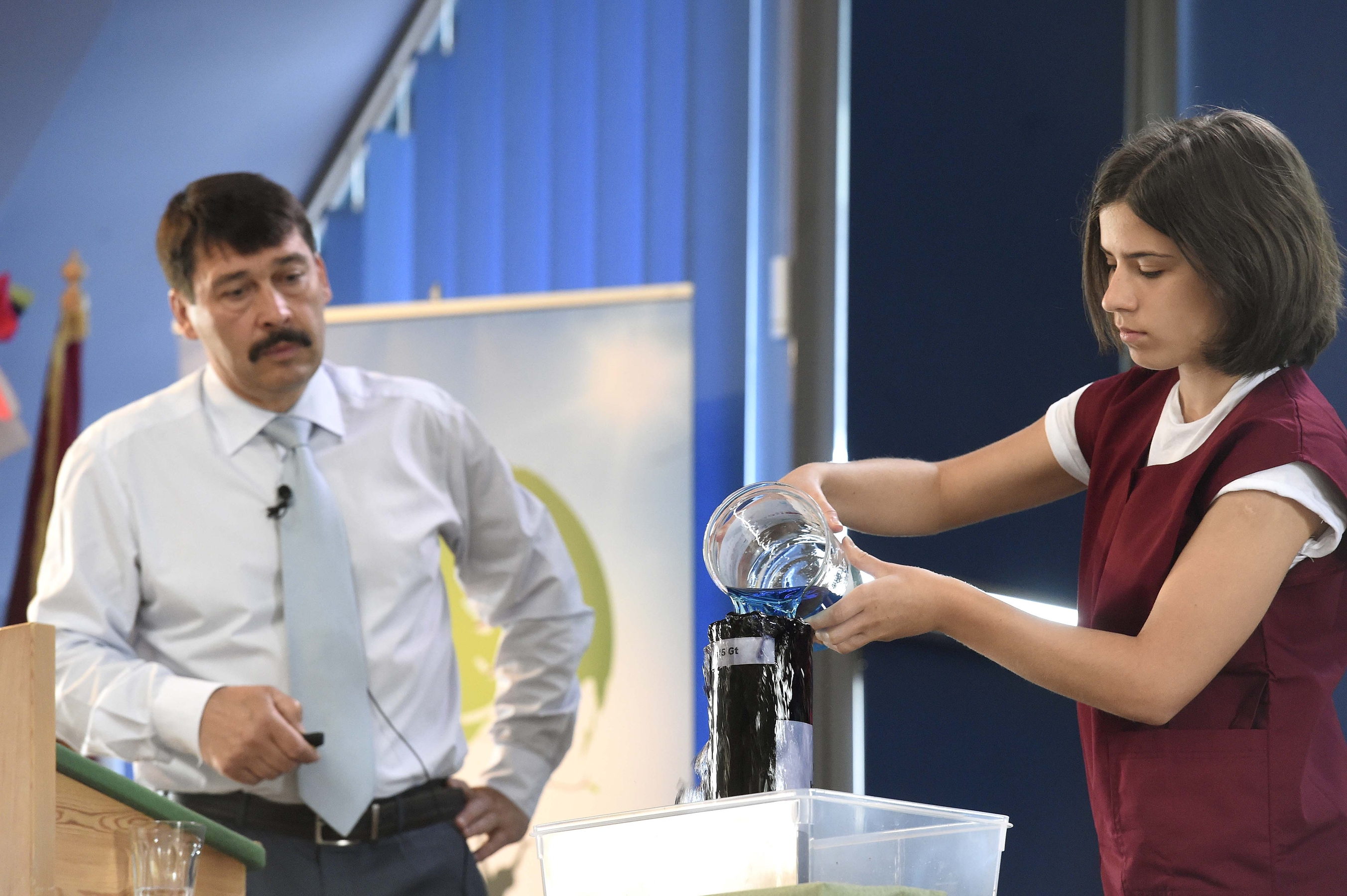 A látványos tanóra kitért többek között a drasztikus mértékben zsugorodó nagy tavak vagy az esőerdők kiirtásával megváltozott ökoszisztéma visszafordíthatatlan folyamataira is. A „sok víz” kapcsán pedig rámutatott a felgyorsuló hidrológiai ciklus drámai, sokszor nem várt világgazdasági hatásaira, valamint az óceánokon lebegő, kontinensnyi méretű műanyaghulladék-szigetek és a természetbe kerülő tisztítatlan ipari és kommunális szennyvíz súlyos ökológiai következményeire is.