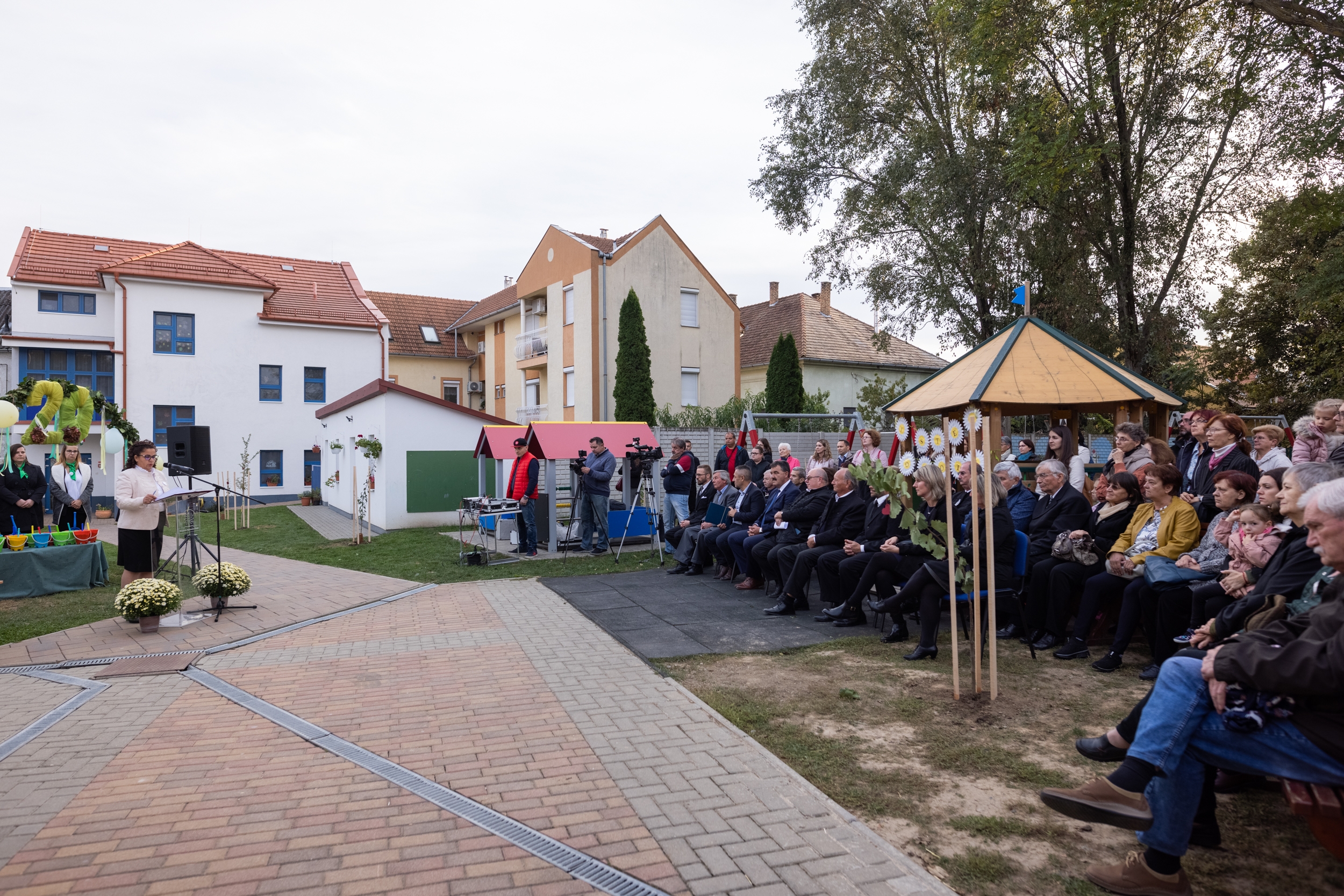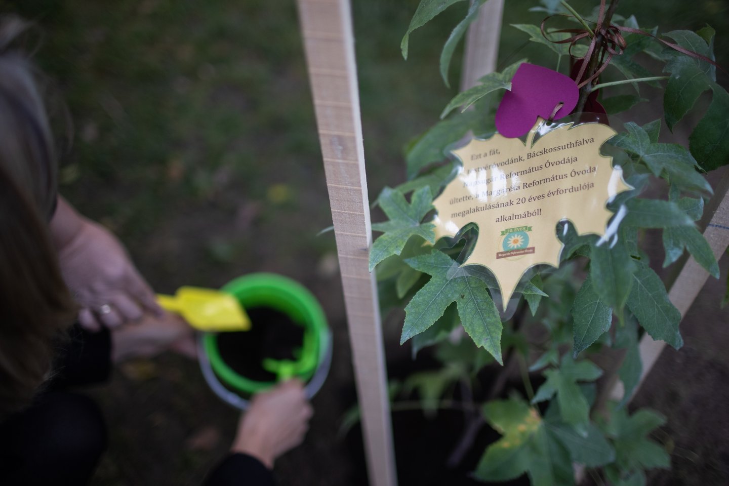 A gyermekek rövid műsora után az évforduló alkalmából húsz fát ültettek el. Tizenkilenc az óvoda udvarán kapott helyet, a huszadik pedig a templomkertben, ezzel is kifejezve a szoros kapcsolatot az intézmény és a gyülekezet között.