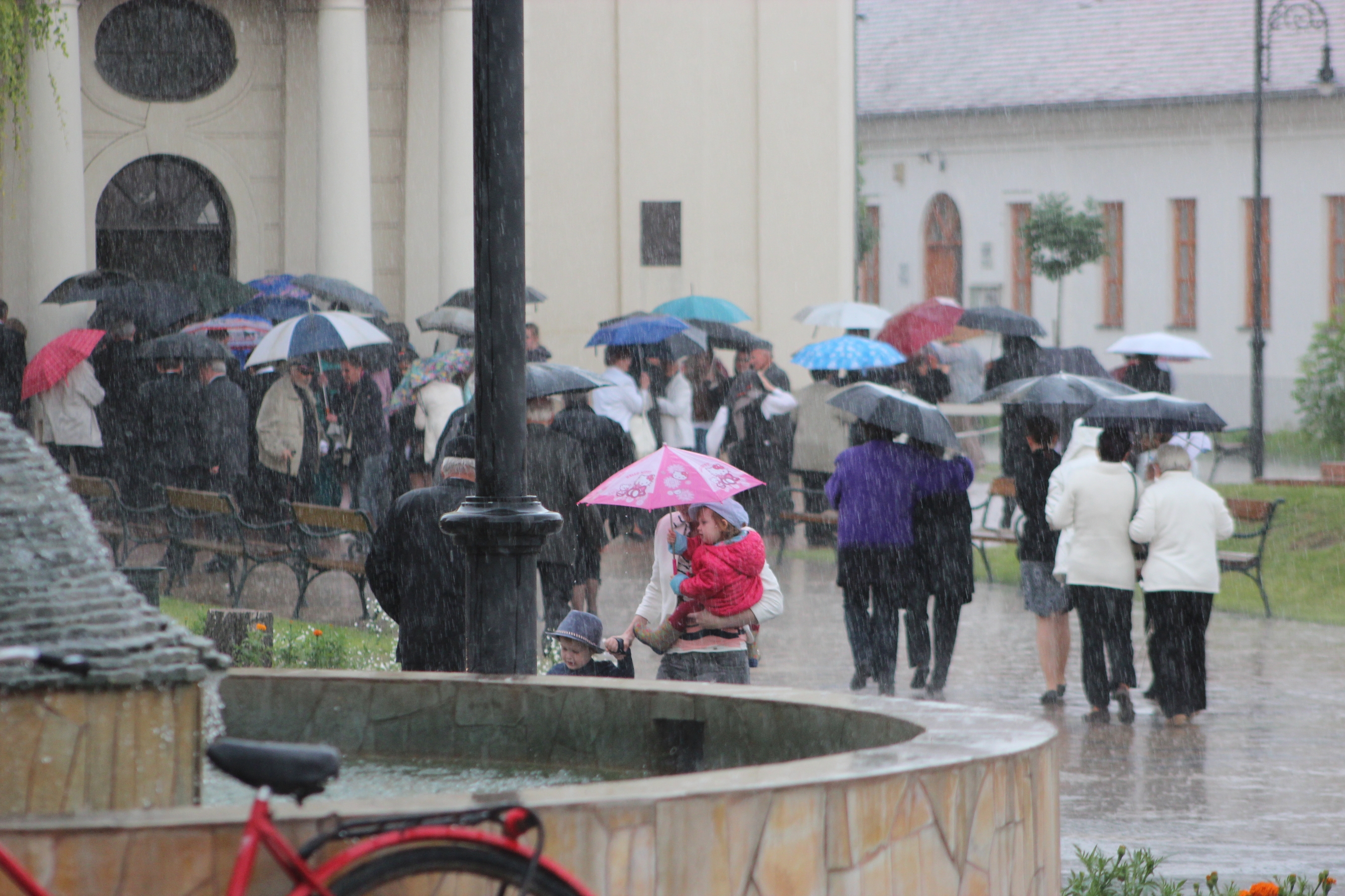A szabadtéri ökumenikus istentisztelet fölött már a kezdés előtt gyülekeztek az esőfelhők. Bár egy ideig úgy tűnt, hogy néhány csepp esővel megúszhatja a gyülekezet, végül nem így lett. A prédikációt közösen mondták el a kunszentmiklósi katolikus, pünkösdi és református gyülekezetek lelkészei. Épp a bevezetésnél tartott Pintér Gyula református lelkész – az ökumenikus szabadtéri istentisztelt szervezője –, amikor esni kezdett. Neki kellett meghozni a döntést, hogy a – kezdődő esőt türelmesen bíró – gyülekezet, vonuljon át a református templomba. „Sokat imádkoztam azért, hogy létrejöjjön a közös szabadtéri istentiszteletünk, és úgy éreztem, ennek terhe rajtam van. Isten megbeszélte ezt velem, és nekem alázattal el kellett fogadnom. De megvan ennek a szimbolikája is, amit az utcán kezdünk el, azt Isten a templomban fejezi be.”