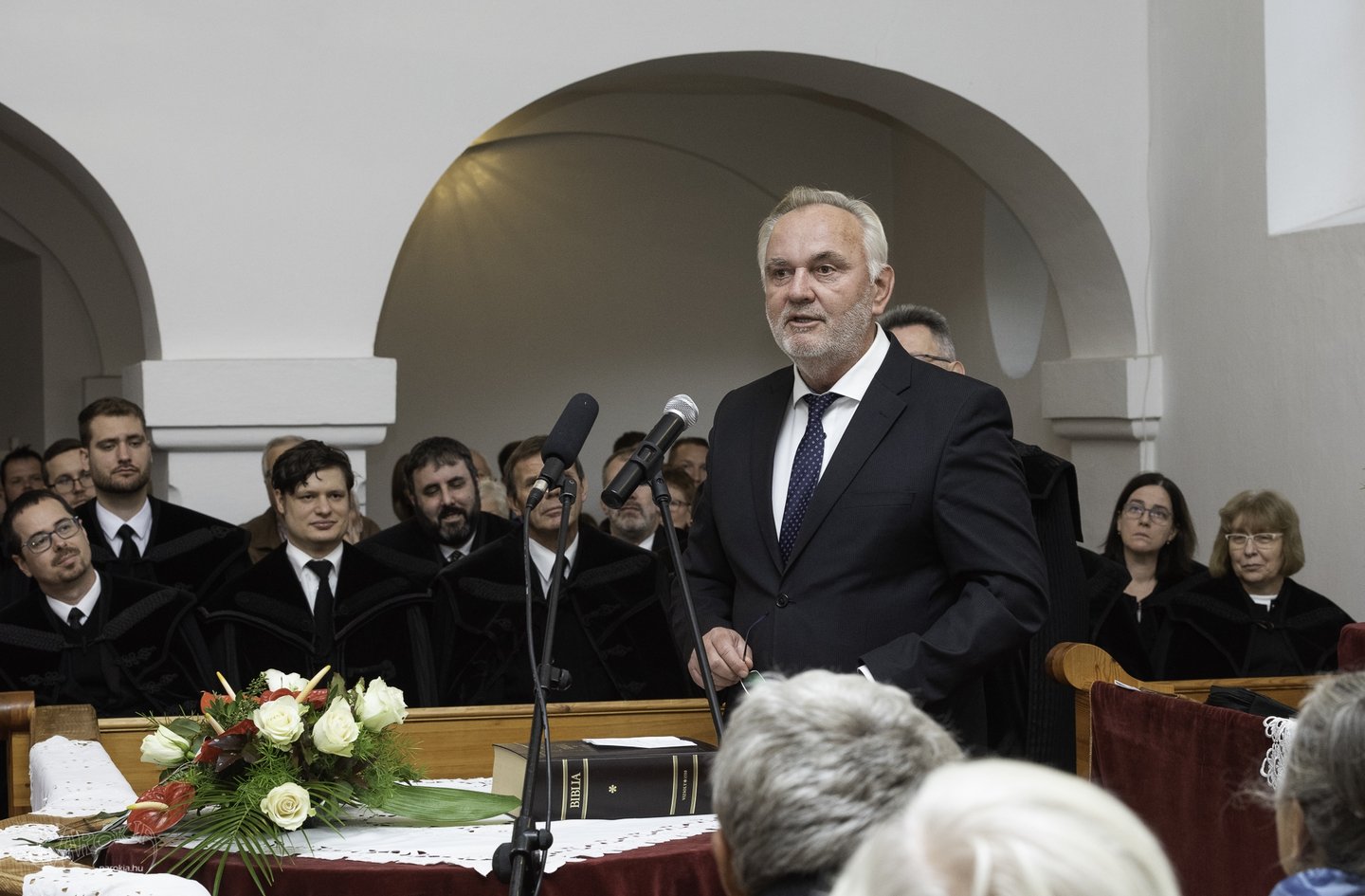 „A zsoltáros jól tudja, hogy Isten az ő tenyerén hordozza az embert. Fontos bátorítás ez számunkra a mai ünnepségen, hiszen az óvoda létrejötte és elindulása nem volt zökkenőmentes. A mi feladatunk, hogy elfogadjuk az isteni segítséget, hogy a Teremtő ezt az óvodát és gyülekezetet is a tenyerén hordozza. Nem angyaloknak, hanem embereknek teremtettünk, érző, sebezhető lényeknek, akik sokszor elbotlunk az Isten által elrendelt úton, de akik képesek Istennel újat kezdeni.”