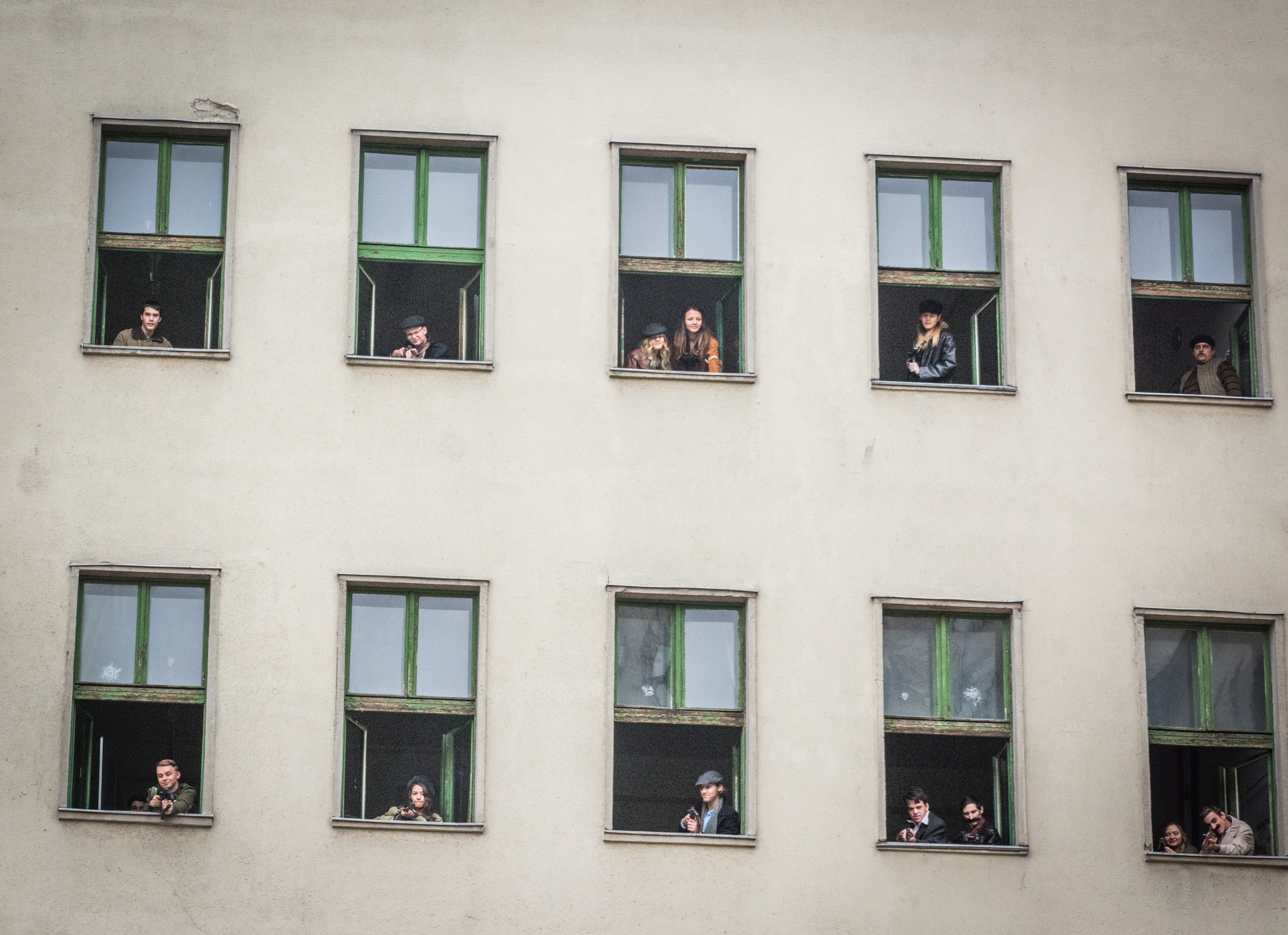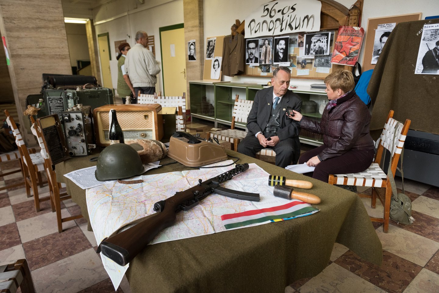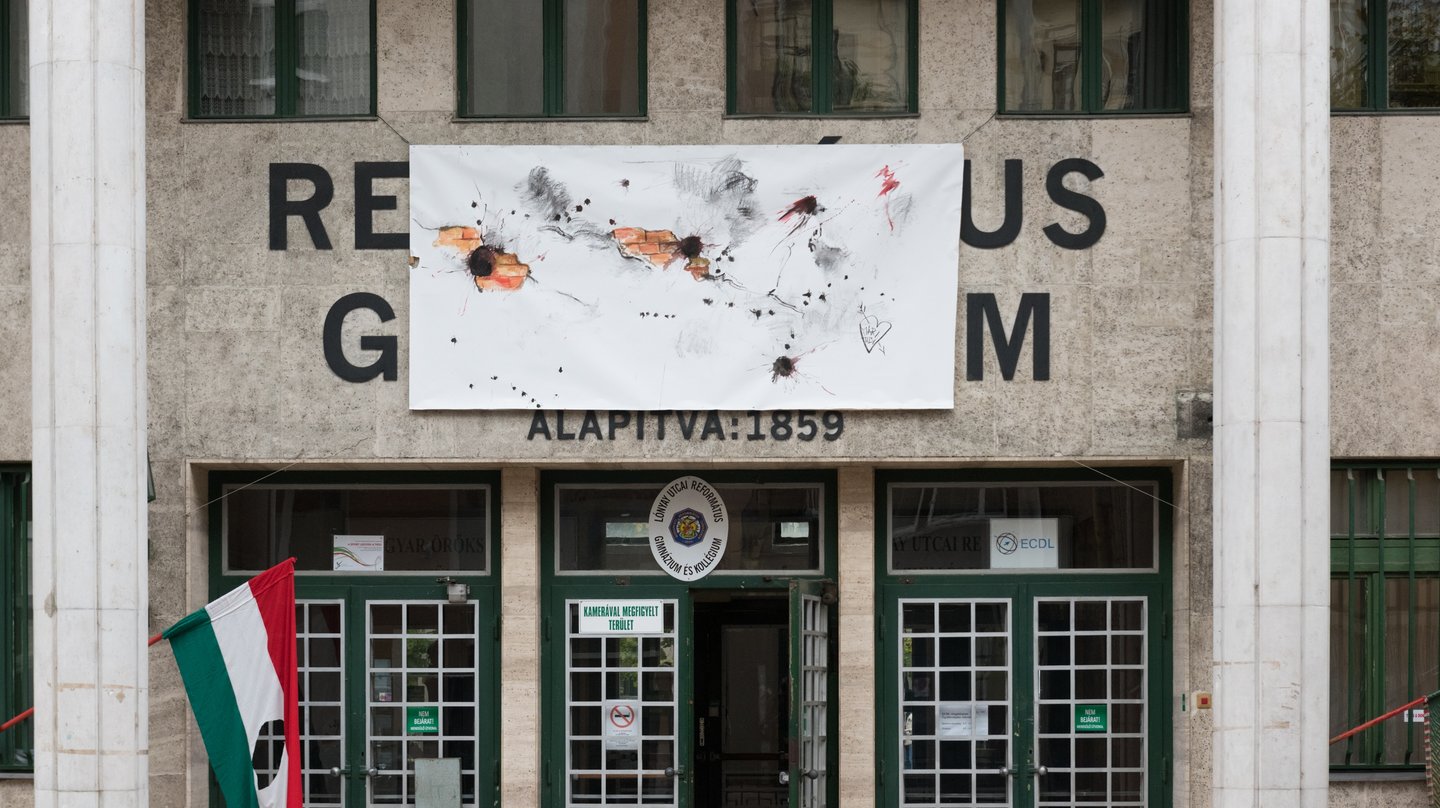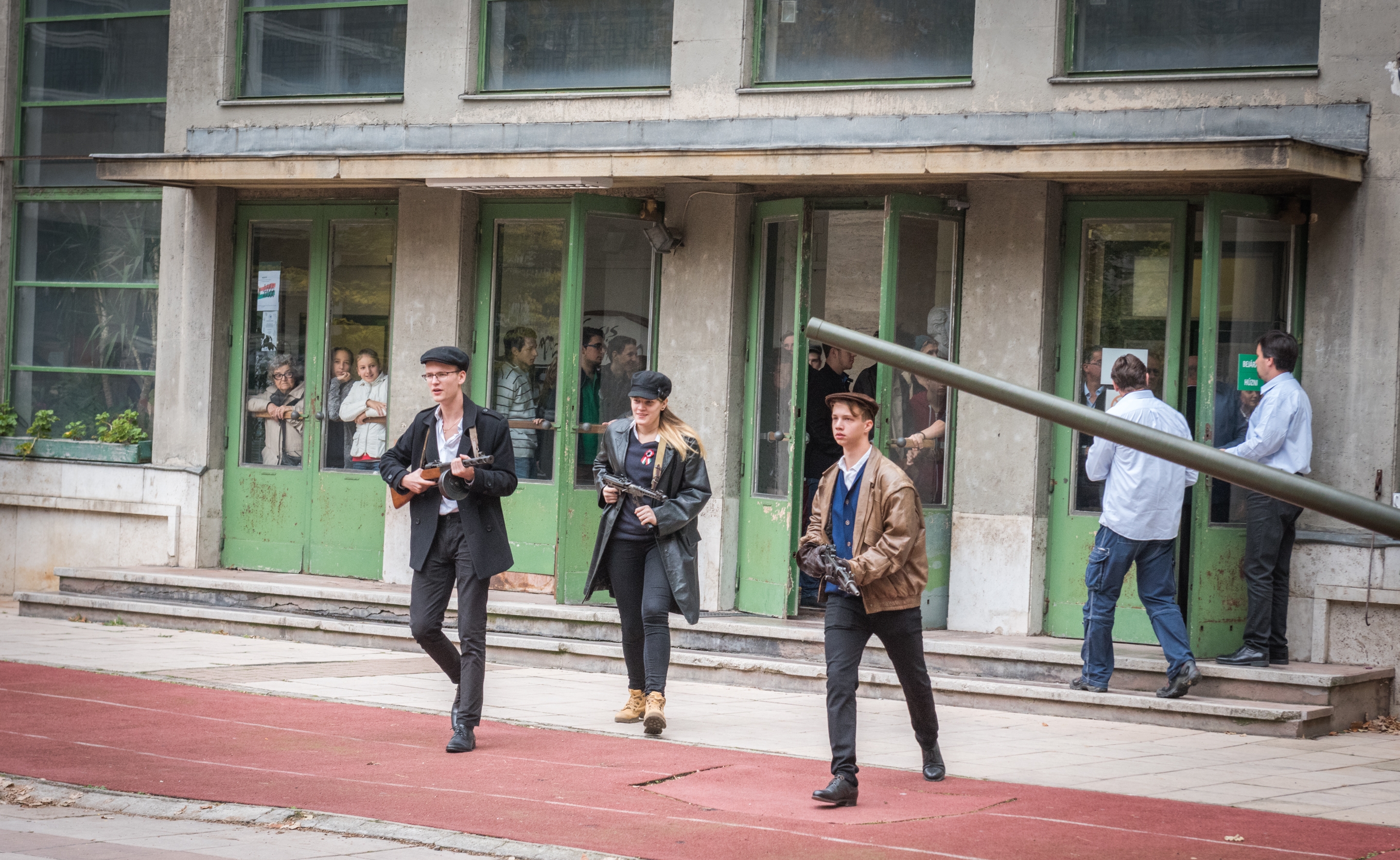 Fegyveres fiatalok rohangálnak fel s alá, a sebesülteket hordágyon cipelik, a kapcsolatot tábori telefonon tartják. Zakatol az illegális nyomda, csúcsfordulaton a kórházi műtő, közben az udvaron felállított tábori konyhában sül az ellátmány: illatozik a meleg kenyér és pogácsa. Nyolc órakor megszólal az iskola rádiója, a felkelőközpont parancsnoka szól a fiatalokhoz. A Lónyay utcai Református Gimnáziumban így indult a tanítás az ötvenhatos forradalom hatvanadik évfordulójára emlékezve.