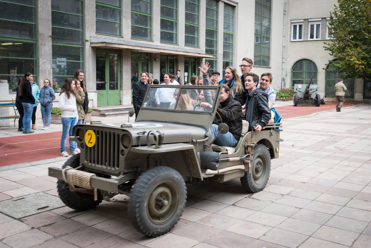A következő állomáshelyem egy második világháborús amerikai dzsip, ahol Tóth Csaba Csongort, a Lónyay igazgatóját faggatom az élménydús ötvenhatos megemlékezésről.