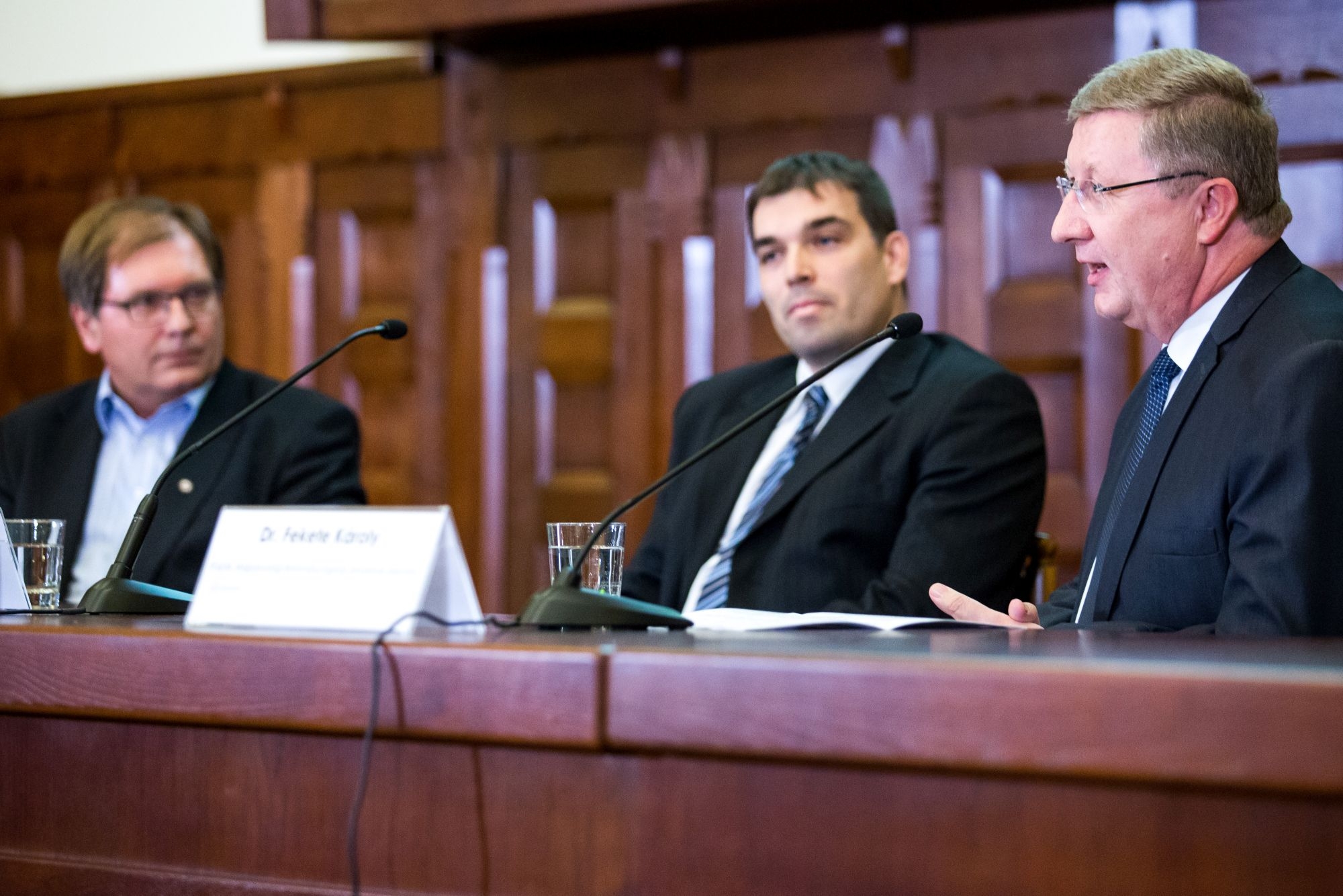 Fekete Károly, a Tiszántúli Református Egyházkerület püspöke és Fabiny Tamás, az Északi Evangélikus Egyházkerület püspöke a keresztyénség helyzetéről és egyházaik mindennapjairól beszélgetett a Károli Gáspár Református Egyetem Hittudományi Karán október 12-én. Az eseményt Kodácsy Tamás református lelkész moderálta, aki családja révén is összeköti a református és evangélikus egyházat.