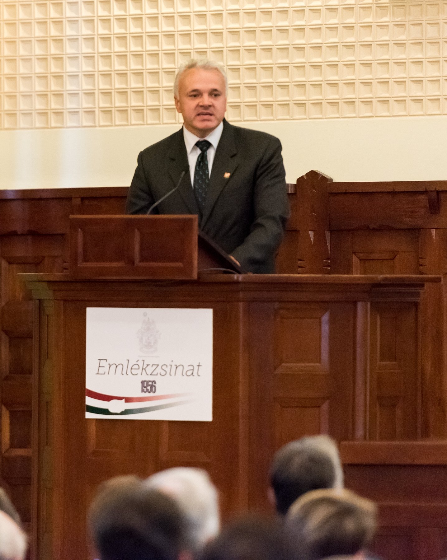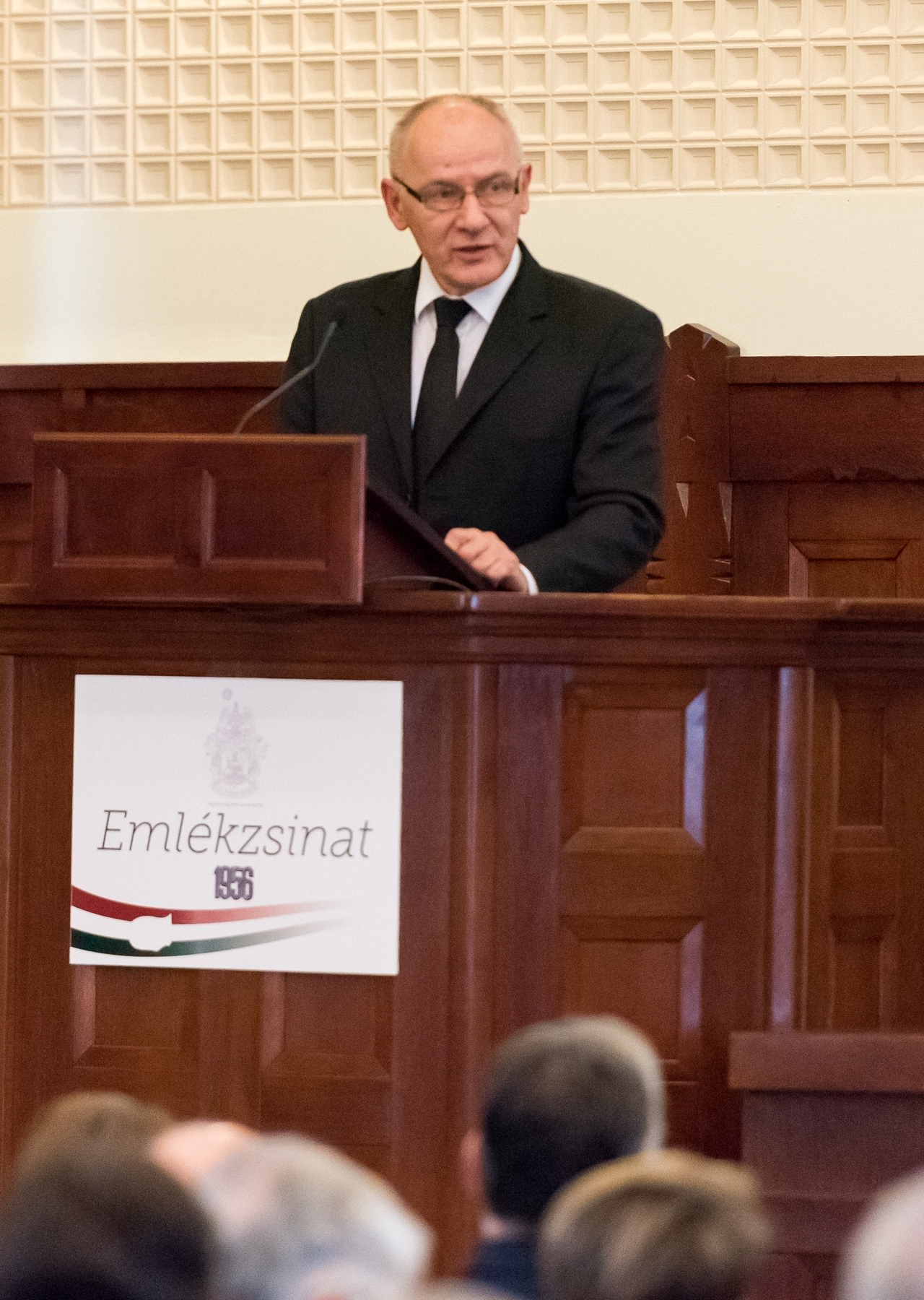 „A szabadság kérdése döntően áthatja az egész keresztyén civilizációt. 1956 a szabadság jogáért való kiállást, illetve akár a forradalom árán való érvényesítését is jelöli. Ez olyan világpolitikai konstellációban következett be, amikor a nagyhatalmi status quo értelmében nem volt bölcs dolog egy gyarmati rendszer foglyaként vergődő országban bármiféle szabadságért síkraszállni. 1956 ezért nemcsak egy hazug és barbár rendszer senki által nem várt leleplezését jelentette, hanem azt is, hogy minősített történelmi helyzetekben nem a pillanatnyi nagypolitikai alku, nem a pax sovietica vagy a pax americana, vagy éppenséggel a pax brusseliana a mérvadó, hanem az ember Istentől adományozott szabadsága” – fogalmazott a zsinat lelkészi elnöke.