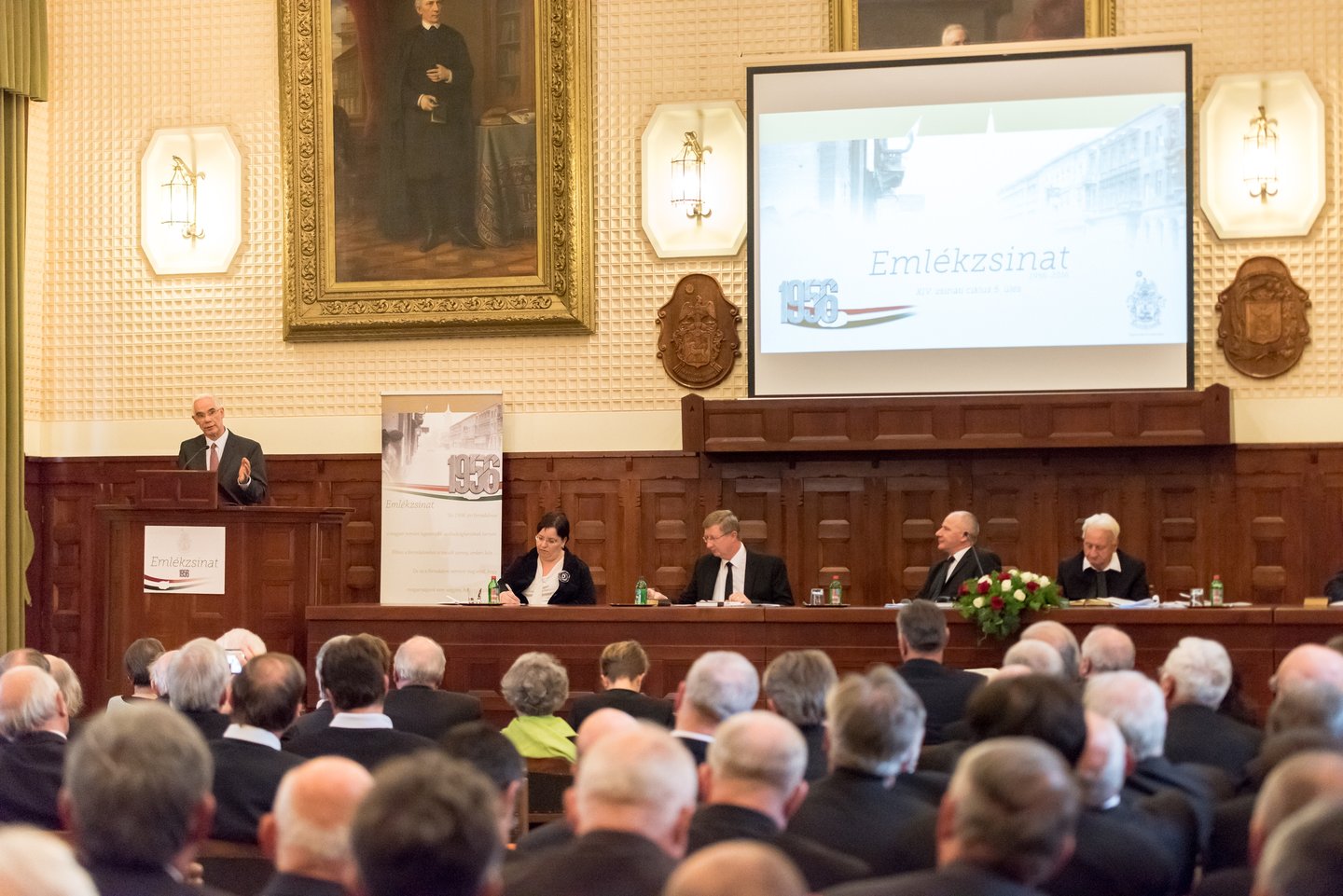 Balog Zoltán református lelkipásztor, emberierőforrás-miniszter elsőként arról szólt, hogy 2017 januárjától 34 százalékkal emelik a vidéki lelkipásztorok jövedelem-kiegészítését. A miniszter ünnepi beszédében úgy fogalmazott: azért értékeli nagyra az emlékzsinatot, mert van még bőven adósságunk 1956-tal összefüggésben. „1956 fénylő csillag, nem csak ott álltak az őseink ahol kellett, de az ’56-tal való szembesülésben benne volt a történelmi tévutak kritikus szemlélete, amelyek sokszor elragadták az egyházunkat, amikor azonosulni akart valamilyen történelmi mozgással. Mi történik a református egyházzal, ha megrendül körülöttünk a világ, a politika mélyebb rétegei? – tette fel a kérdést a miniszter. „A tudás arra kötelez minket, hogy sose keverjük össze az Isten és az ember munkáját. Az Isten dicsőségét és az ember kötelességét.”