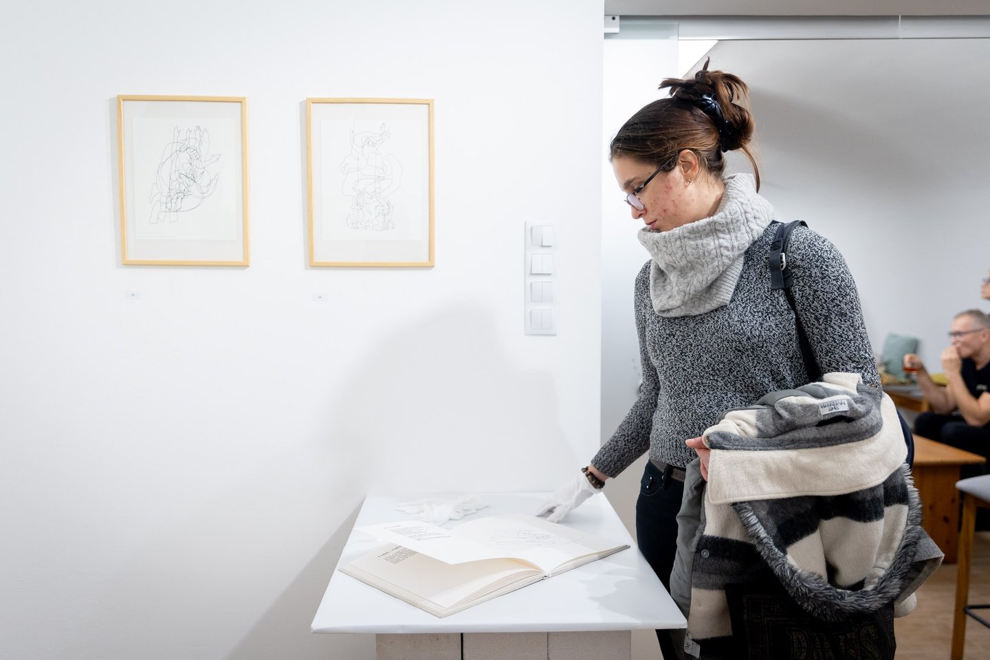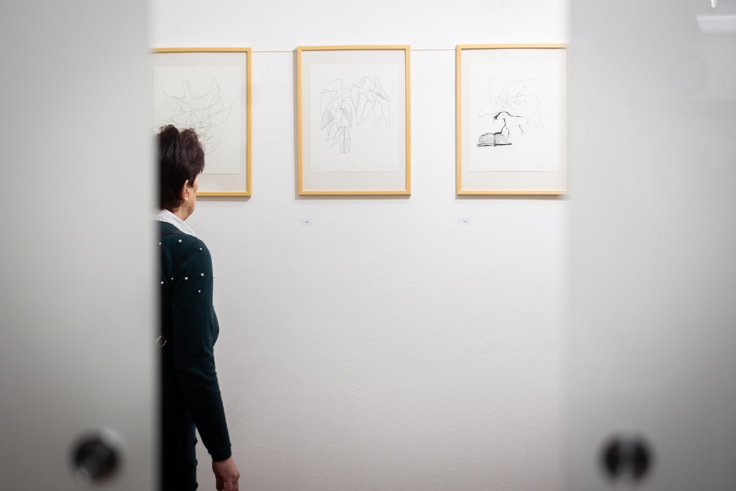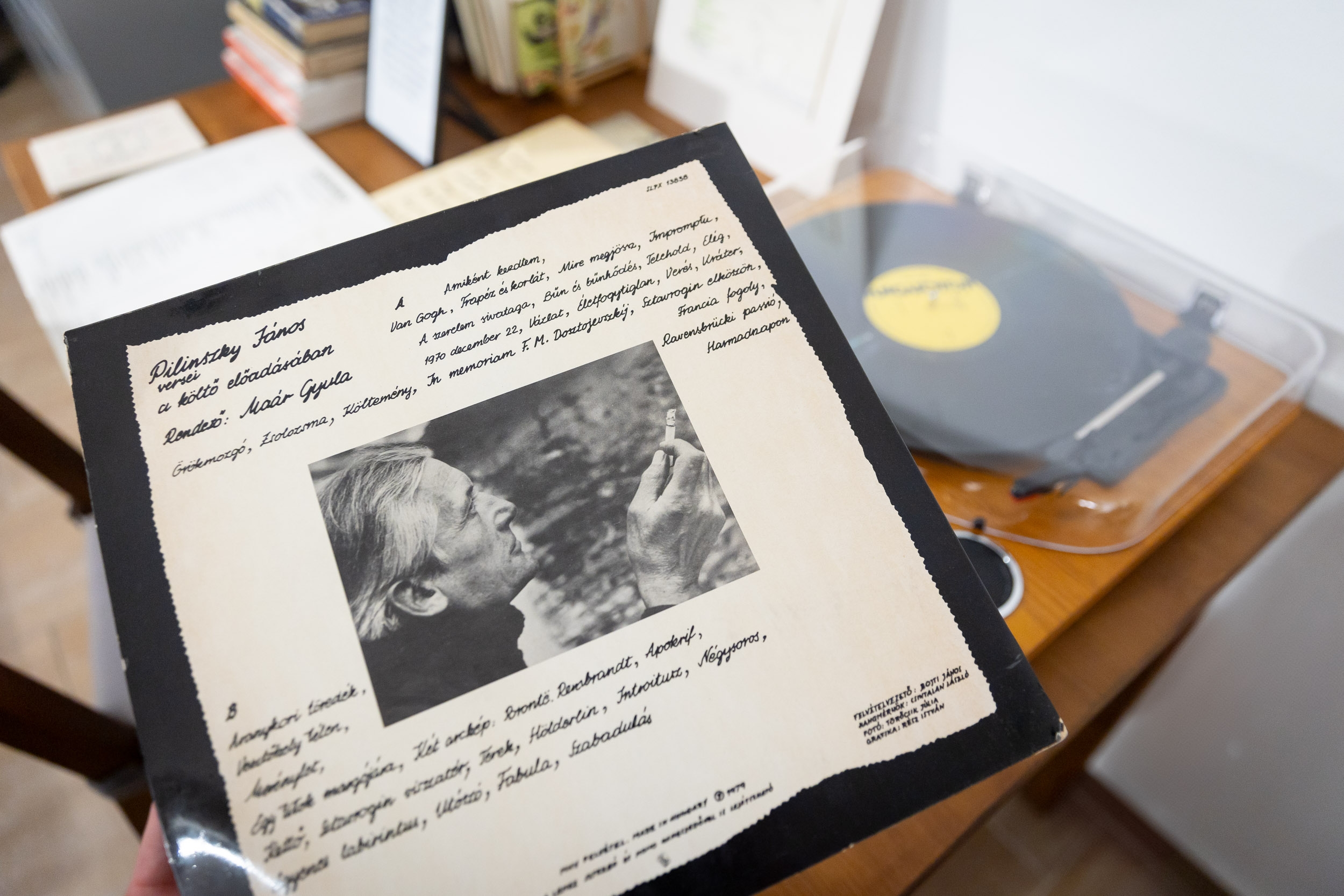 Az alkotás első fázisának a keretei megteremtődtek a megnyitón is. Pilinszky János válogatott versei a hetvenes években hanglemezen is megjelentek, ezek egyikéről szólalt meg a megnyitón a Ravensbrücki passió, a költő előadásában. (A Hungaroton honlapján a felvétel bármikor elérhető.) Így lépett be a grafikus az alkotás kezdetén a költő világába: a hangon, méghozzá a költő saját hangján keresztül. Az előtérben látható tusrajzok azok a munkák, amelyek a hallásból születtek.