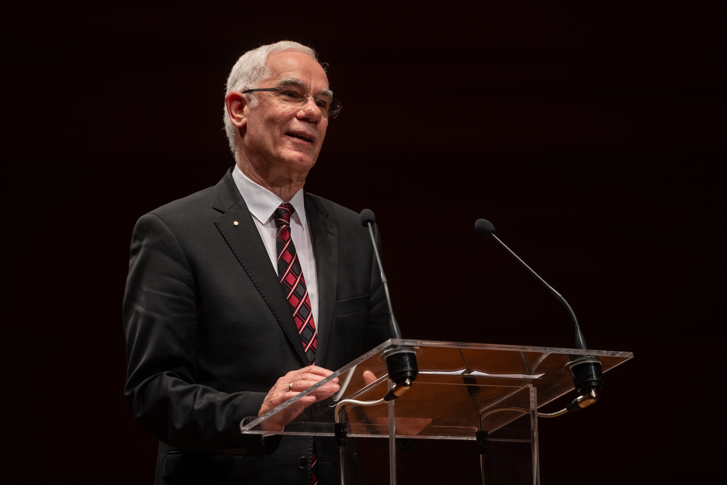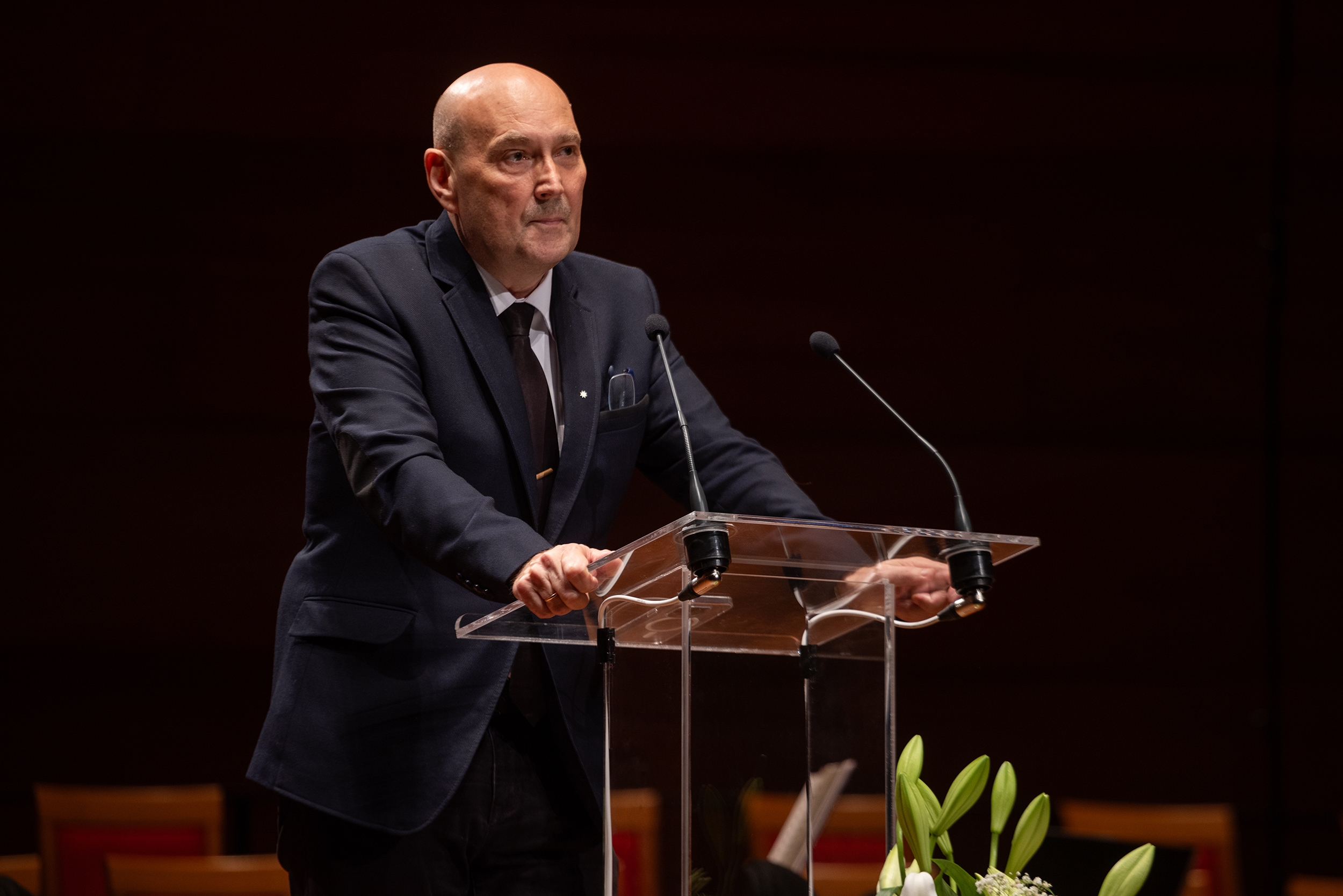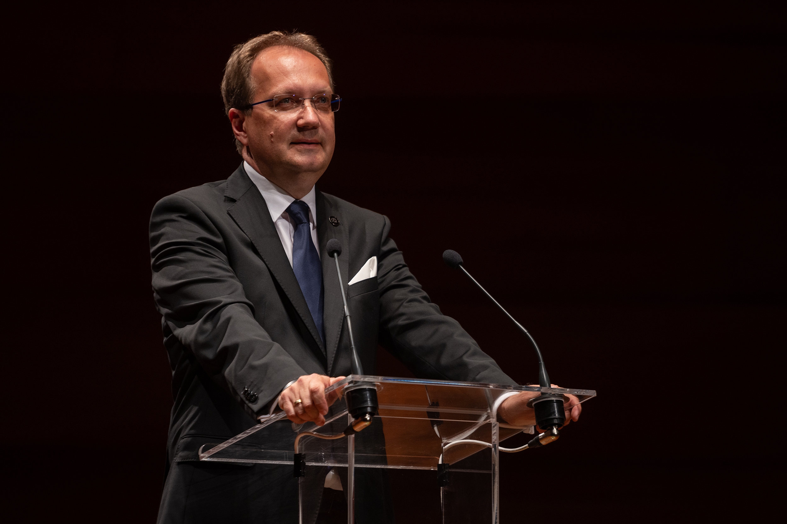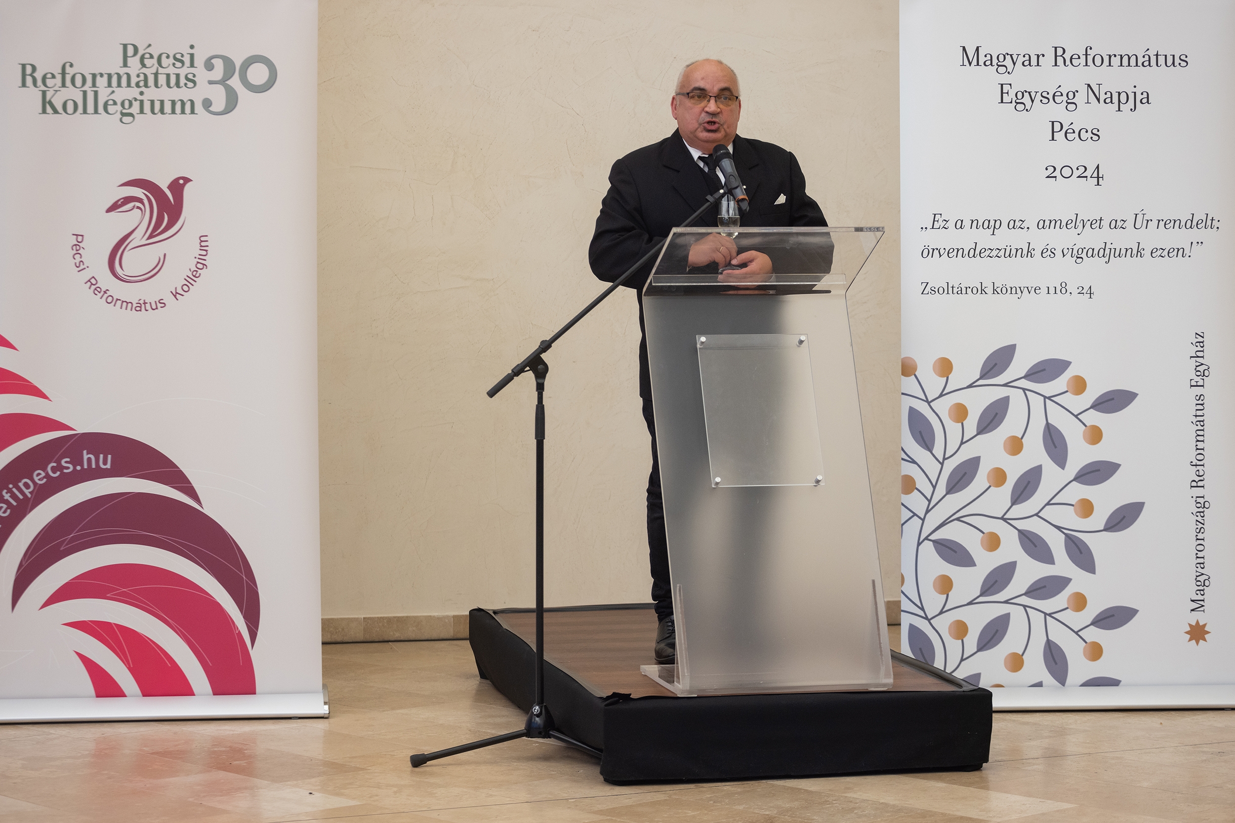 Az ünneplő gyülekezetet Hoppál Péter, a Pécsi Református Kollégium igazgatótanácsának elnöke köszöntötte. Méltatta az idén harminc éves intézmény jelentőségét Baranyában, hiszen az ma már tizennégy tagintézménnyel és ezernyolcszáz diákkal működik a megyében. Az ünnep kapcsán beszélt a református egység fontosságáról is. „A történelem viharai különböző országokba sodortak bennünket, magyarokat, reformátusokat, katolikusokat és más felekezetűeket. Így annál inkább szorgoskodnunk és dolgoznunk kell azon, hogy az egységet közösen éljük meg. Erről szól május huszonkettedike, a református egység napja.”