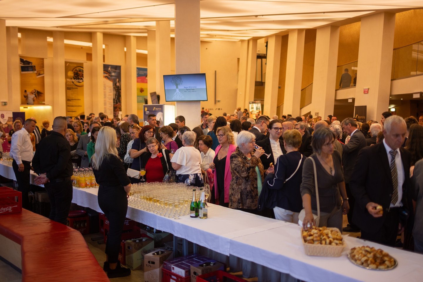 A koncert szünetében szeretetvendégséggel várták az ünneplő gyülekezetet. Kádár Péter, a Pécsi Református Kollégium főigazgatója mondott pohárköszöntőt. Beszédében kiemelte: csak az Úristen láthatta, hogy mindössze egy református osztályból hogyan növi ki magát egy olyan intézményrendszer, amely ma már egész Baranyát lefedi.