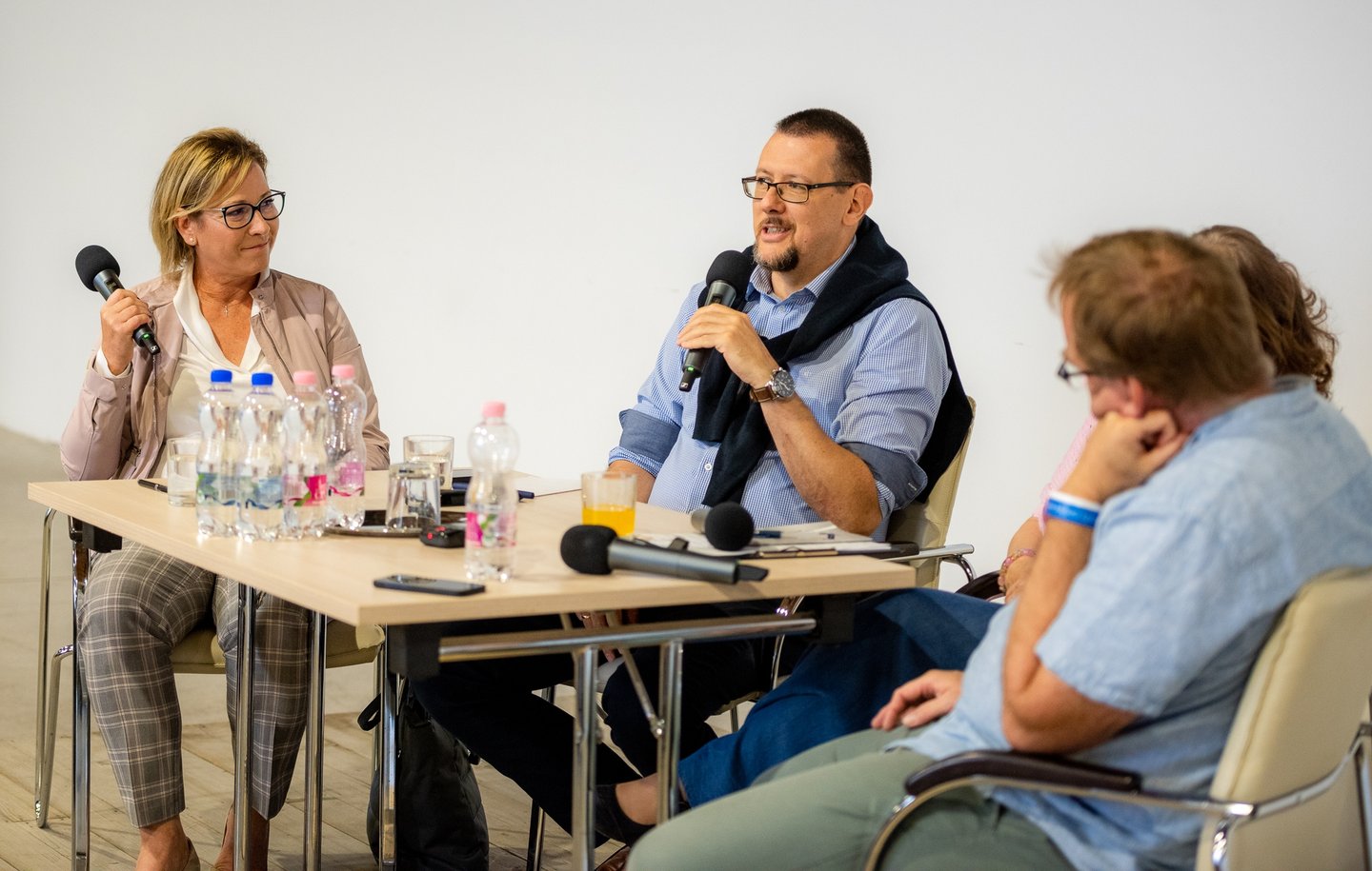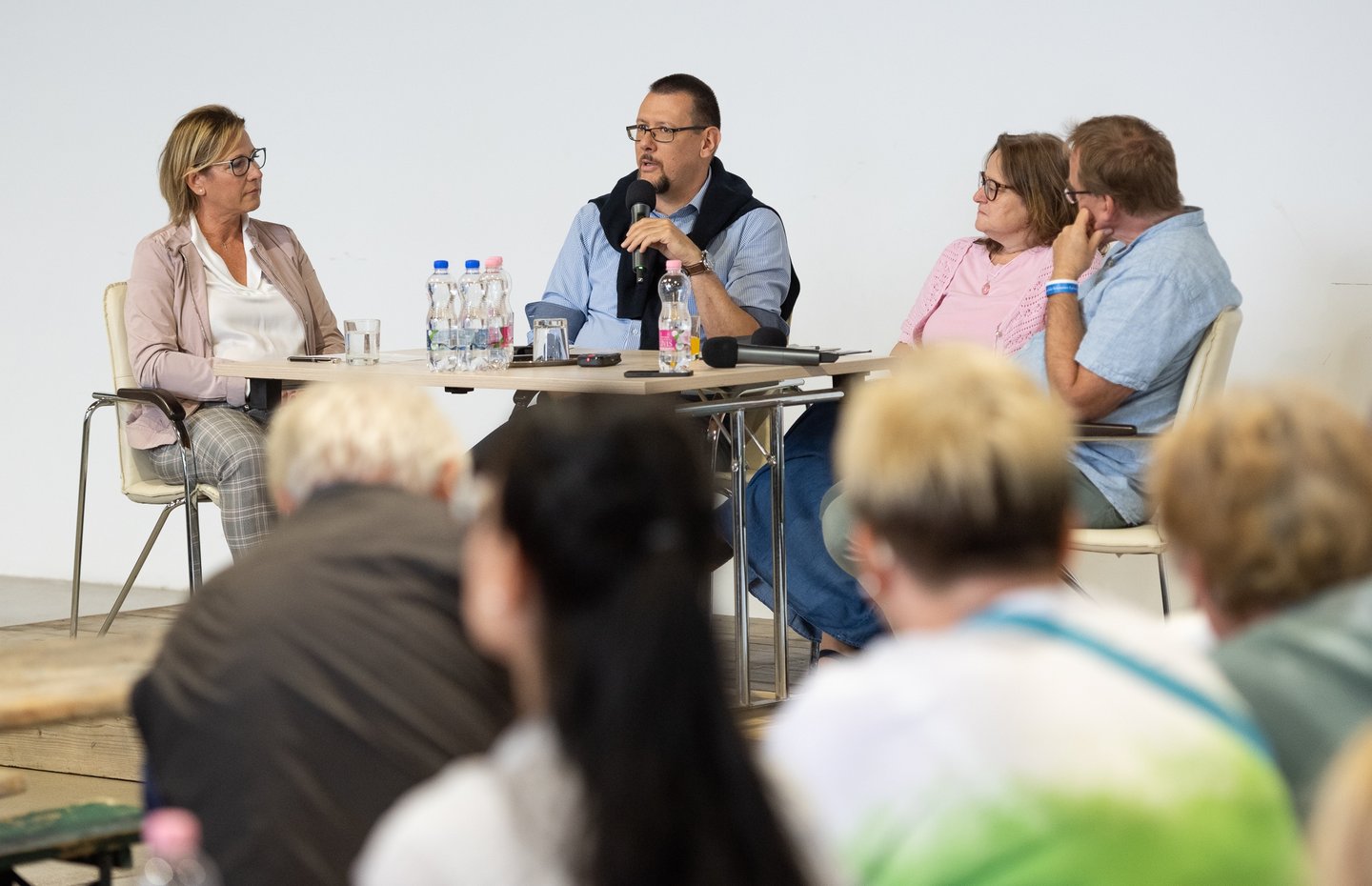 Az emberi hivatás három színtere a család, a társadalom és a hitélet – vezette fel az asztalközösséget követő pódiumbeszélgetést Volf-Nagy Tünde televíziós műsorvezető. Beszélgetőtársai éppen ezért erről a három színtérről érkeztek: Fodorné dr. Ablonczy Margit református lelkész, pedagógus, lelkigondozó, családterapeuta a családi szempontokat, Fürjes Zoltán egyházi és nemzetiségi kapcsolatokért felelős helyettes államtitkár a társadalmi szempontokat, Harmathy András szentendrei református lelkipásztor pedig a hitéleti szempontokat képviselte.