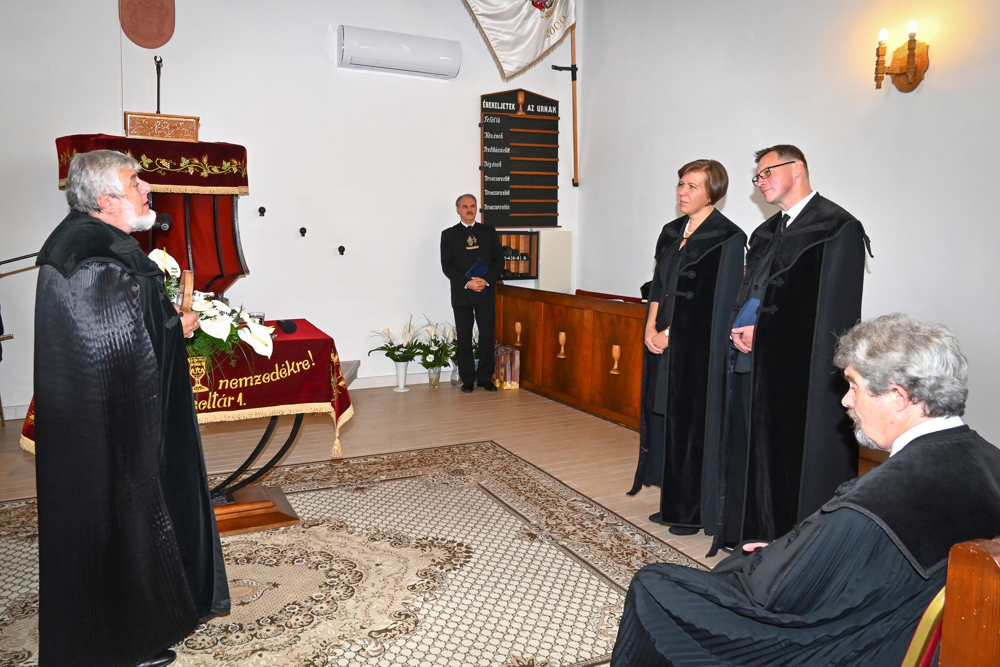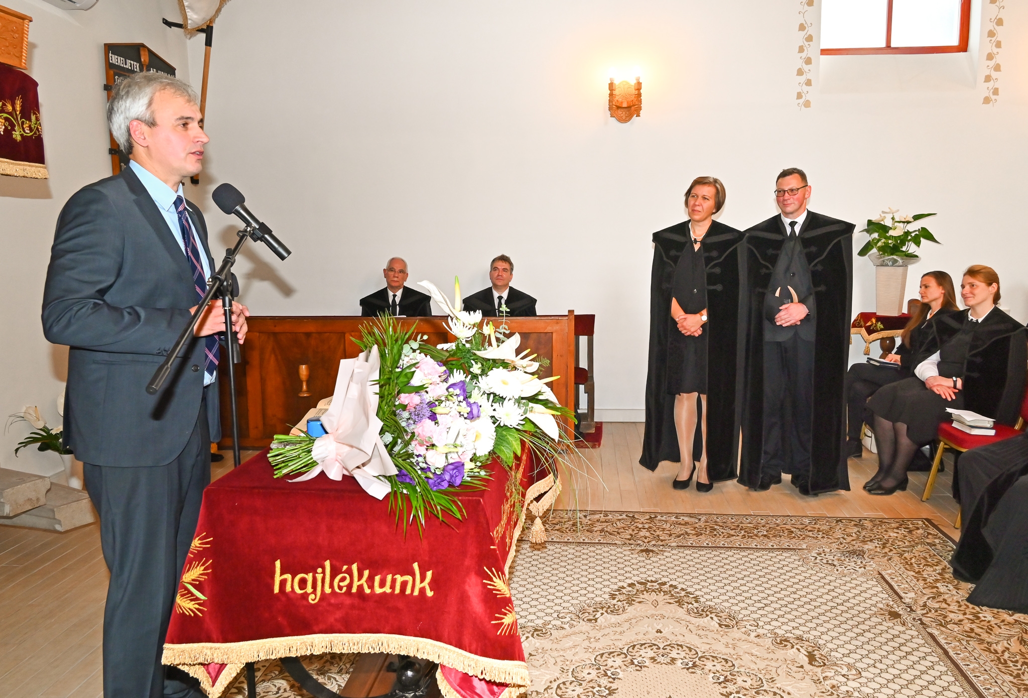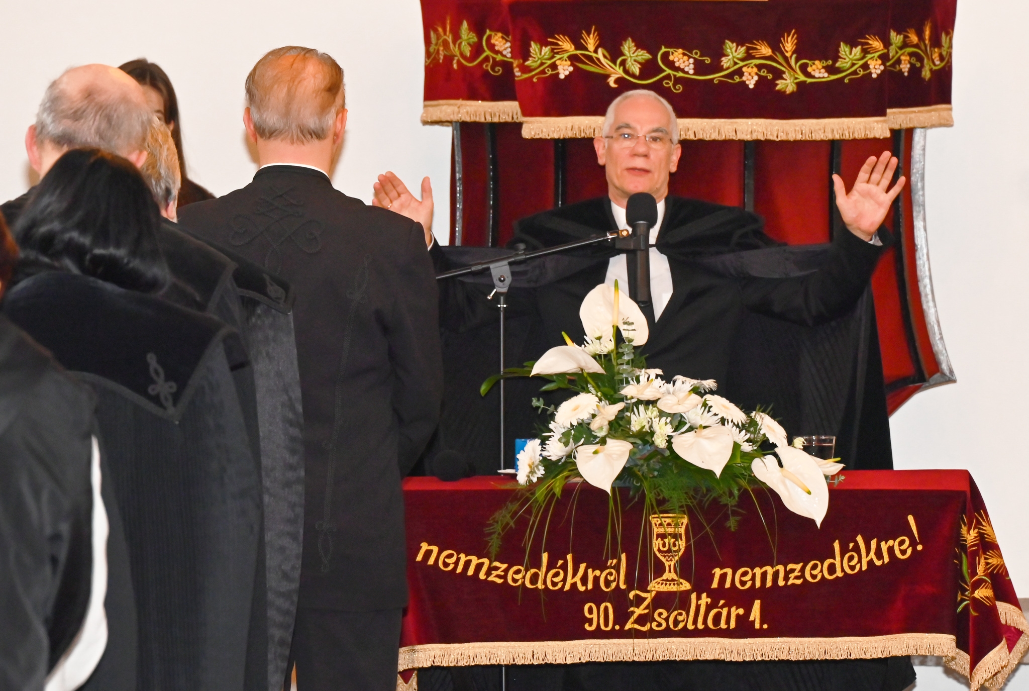 köszöntésében a Példabeszédek könyvéből azt az igét hozta, amellyel húsz évvel ezelőtt összeadta a lelkész házaspárt: „Add nekem a szívedet, fiam, és tartsd szemed előtt utaimat!” Az akkori szövetségkötésükre utalva hangsúlyozta, hogy a mostani esemény is egy szövetség megkötése, mégpedig a gyülekezettel, amelyből szintén új életeknek kell születnie.