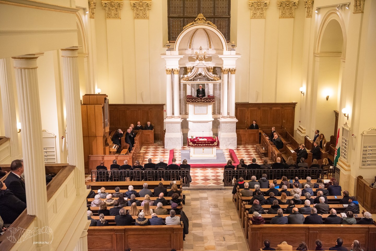 A 17 órakor kezdődő ünnepi istentiszteleten a templomban egybegyűlteket Veres Sándor, a Dunamelléki Református Egyházkerület főgondnoka köszöntötte.