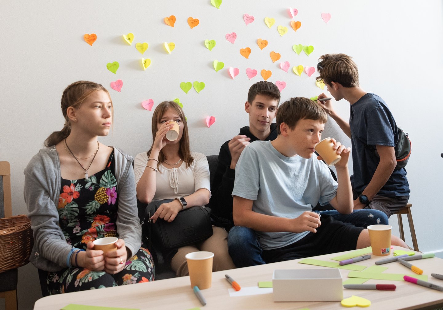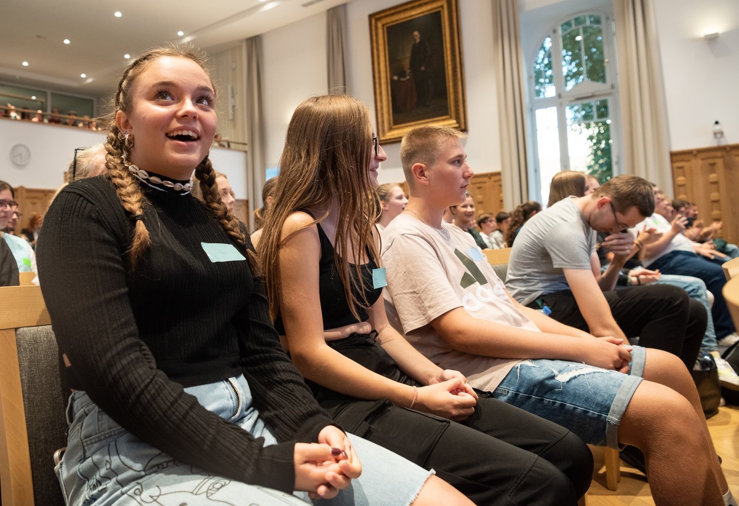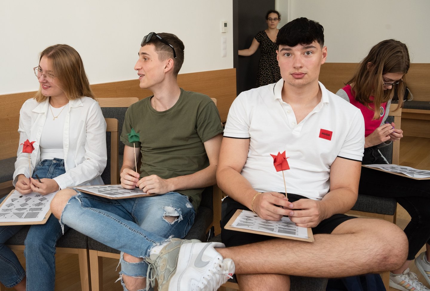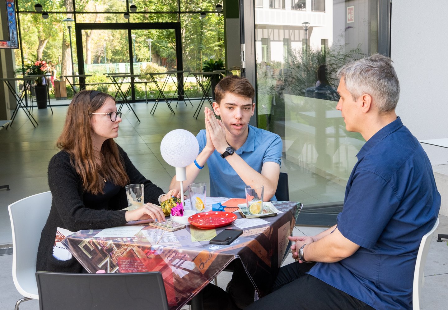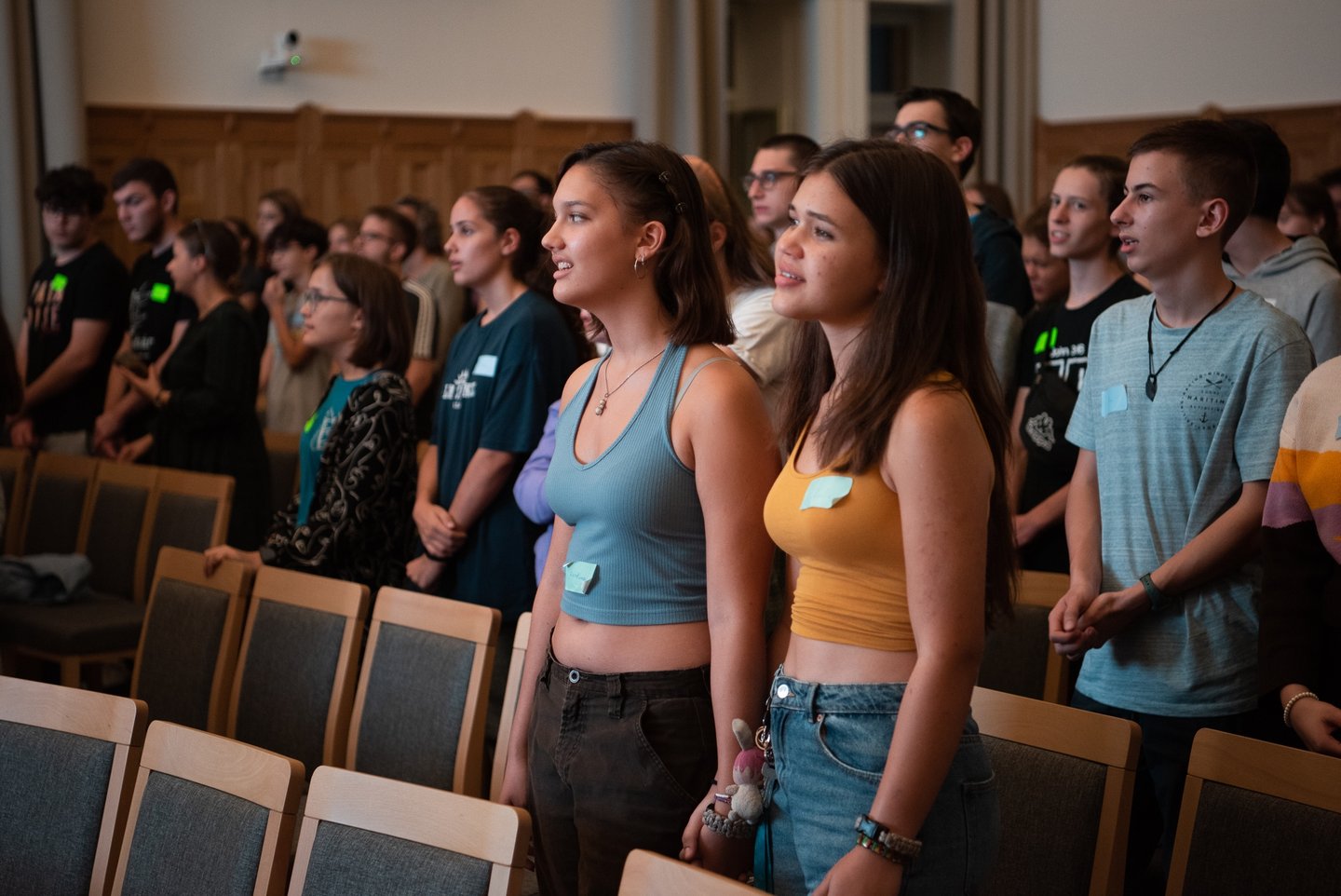 Az ifjúsági nap játékos, közös lezárására a díszteremben került sor, ahol a diákok testhelyzetükkel fejezhették ki mindazt, amit a délelőtt folyamán kaptak. A Ráday Ház végül helyben elkészített pizzaebéddel búcsúzott el tőlük.