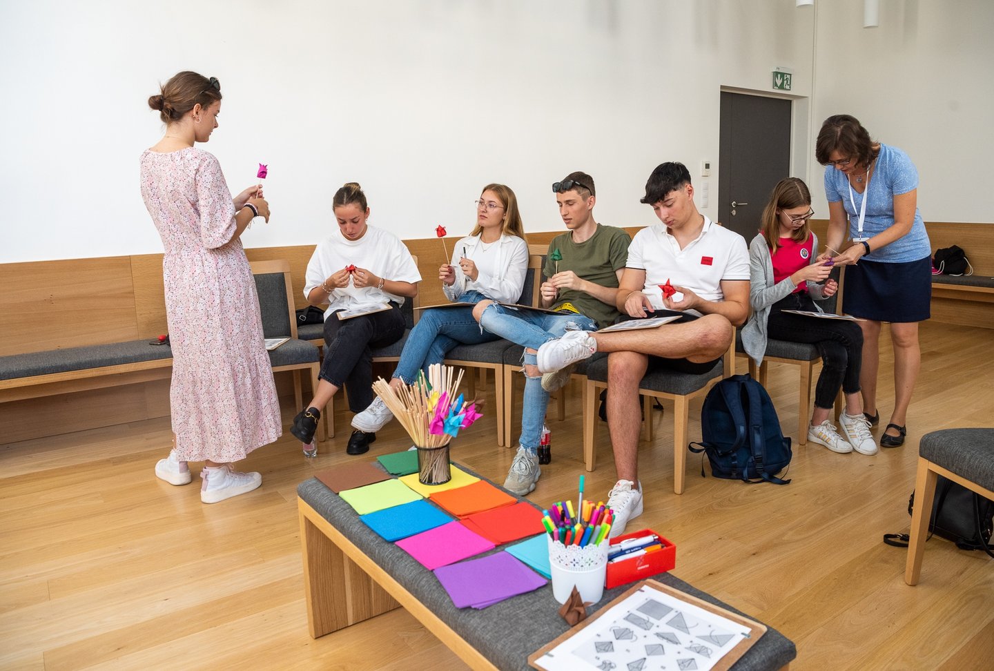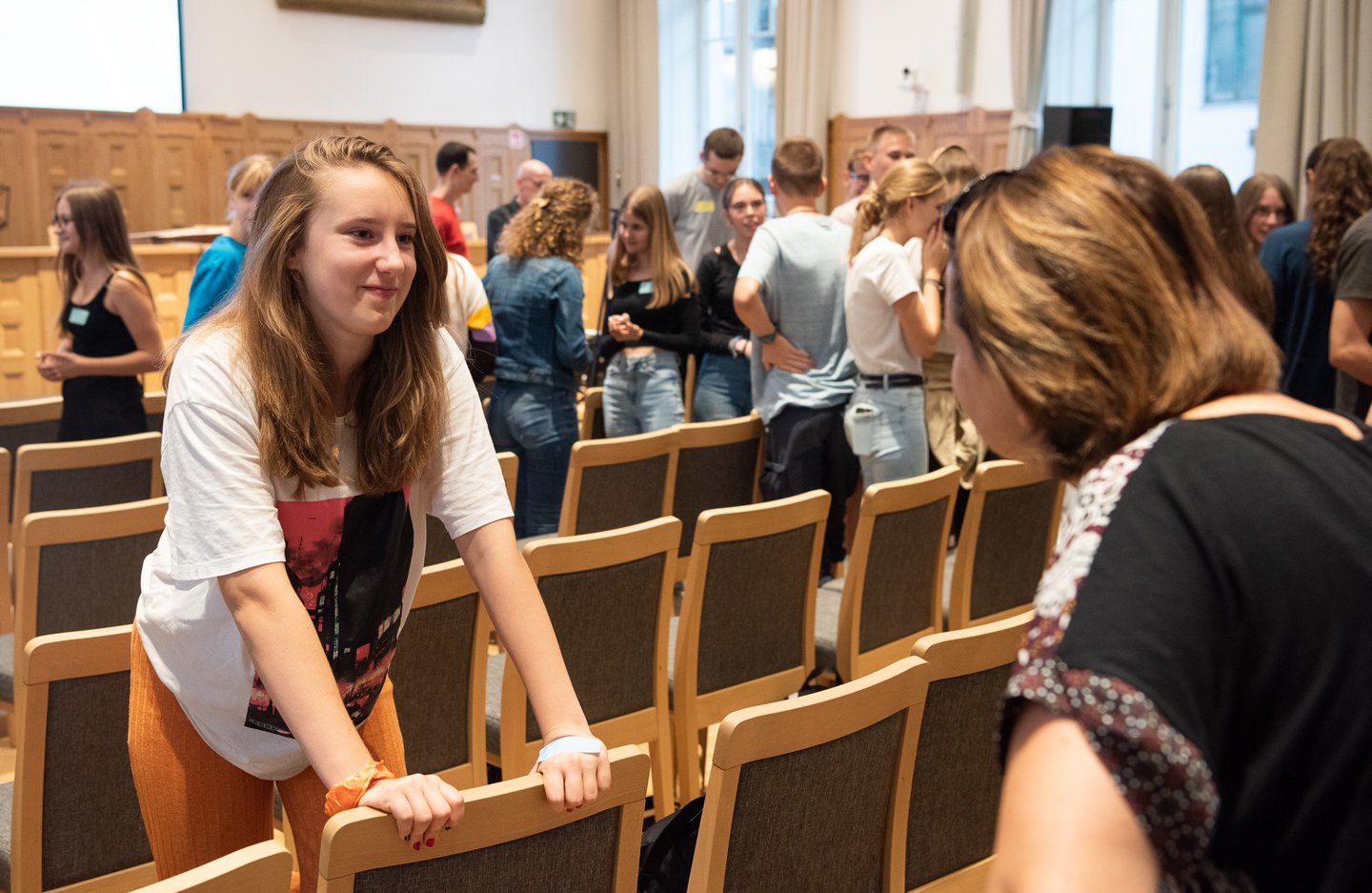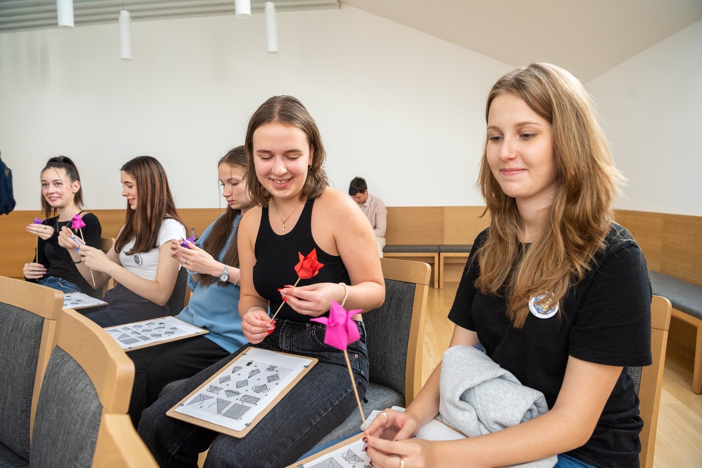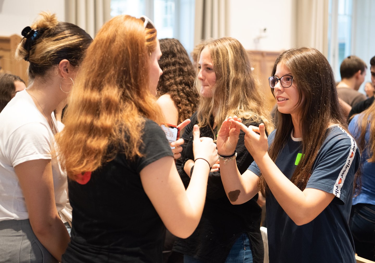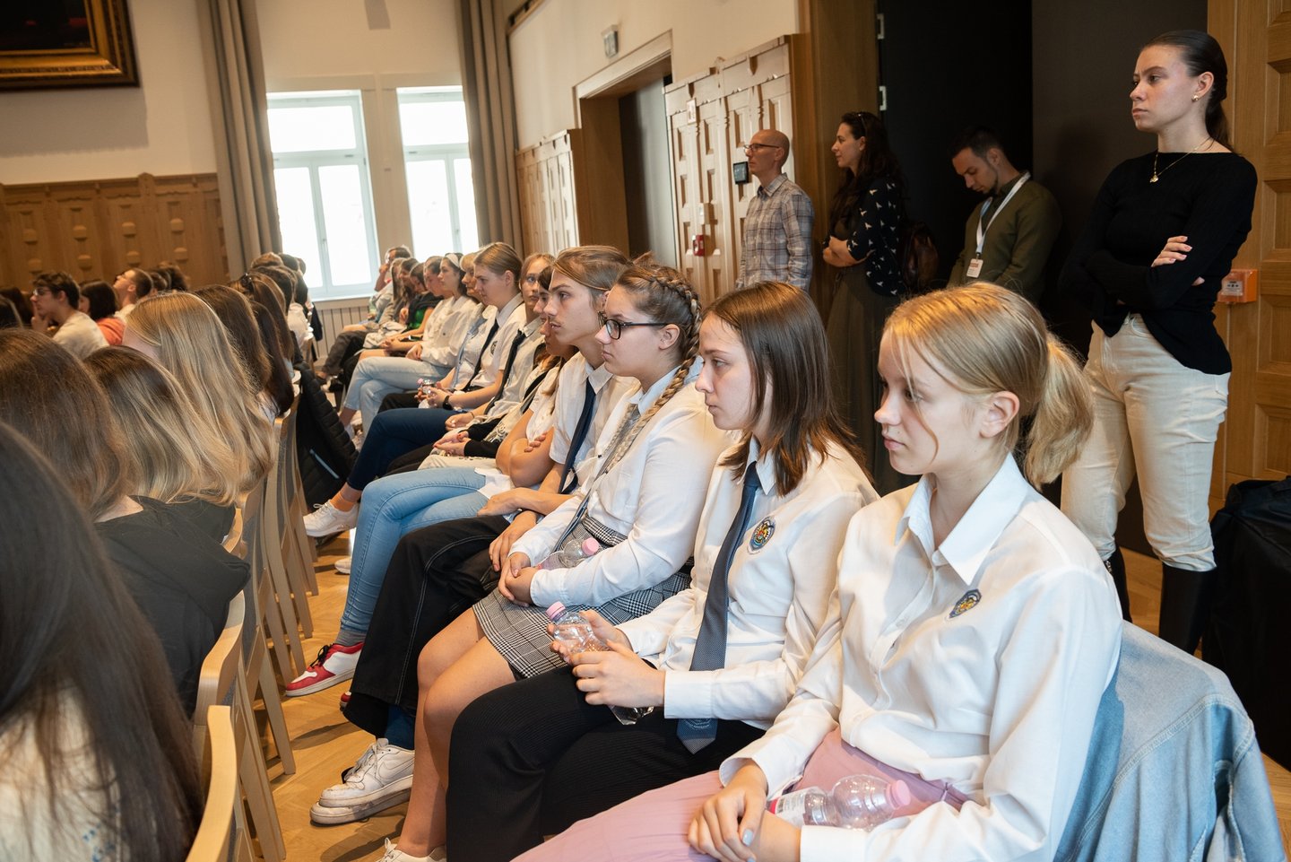 Az ifjúsági nap játékos, közös lezárására a díszteremben került sor, ahol a diákok testhelyzetükkel fejezhették ki mindazt, amit a délelőtt folyamán kaptak. A Ráday Ház végül helyben elkészített pizzaebéddel búcsúzott el tőlük.