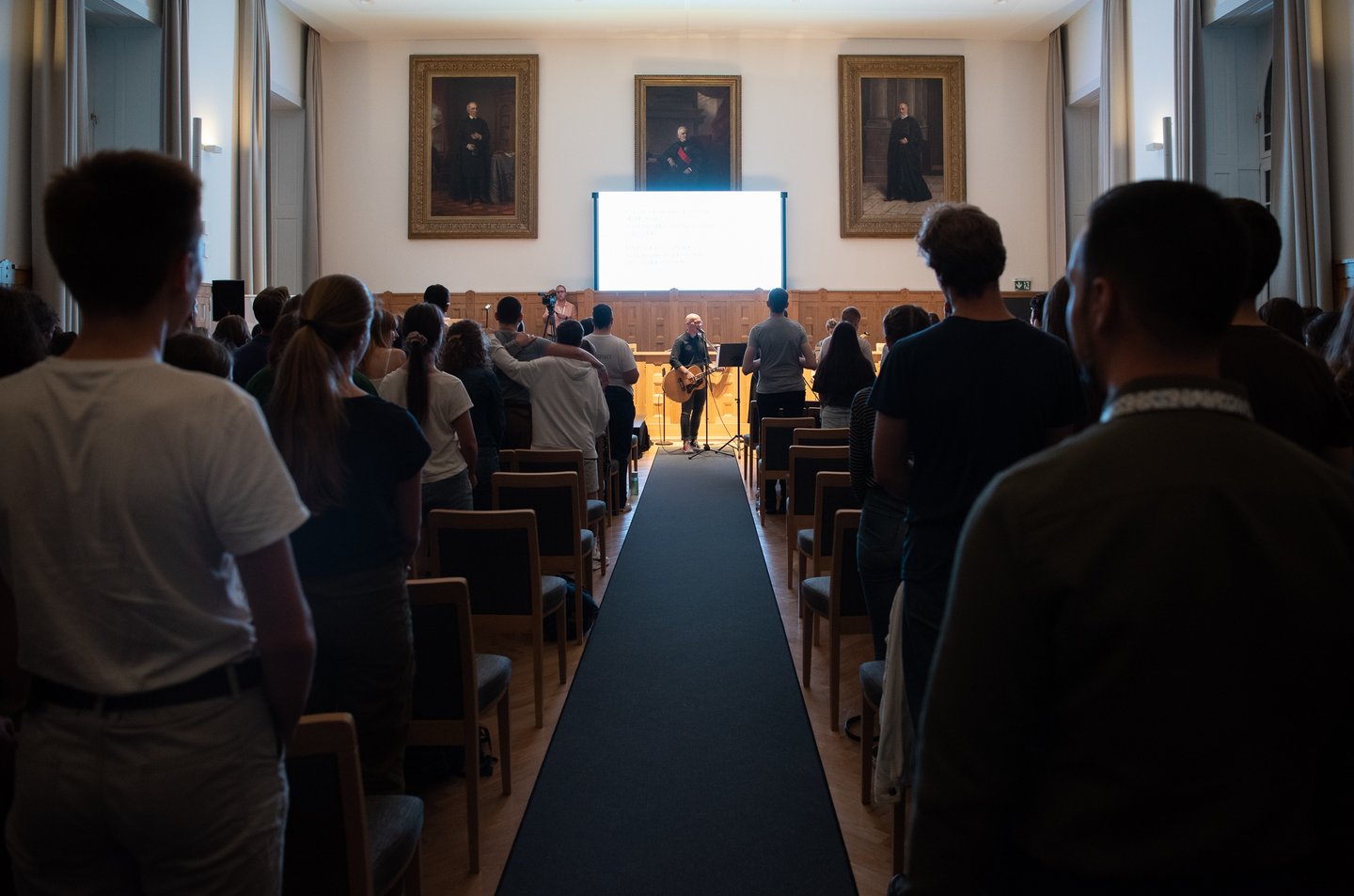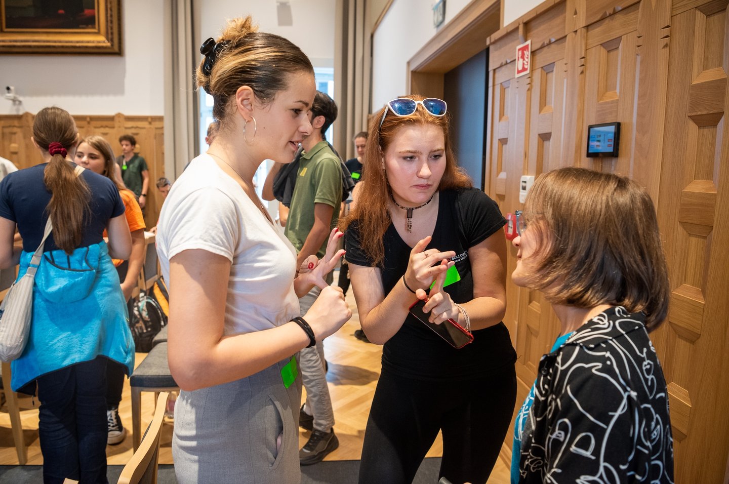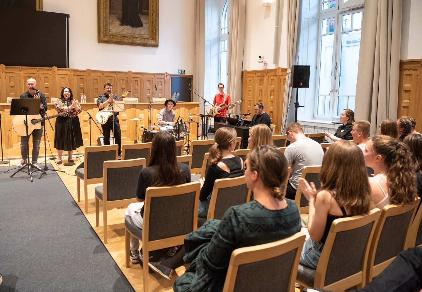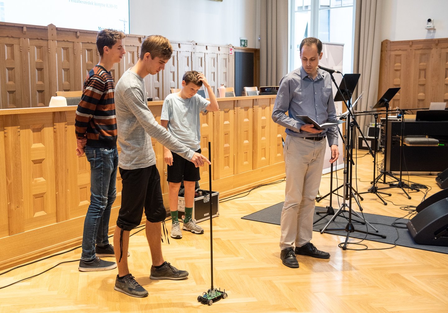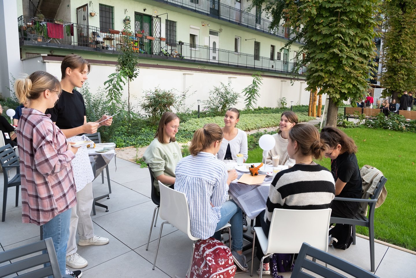 Az ifjúsági nap játékos, közös lezárására a díszteremben került sor, ahol a diákok testhelyzetükkel fejezhették ki mindazt, amit a délelőtt folyamán kaptak. A Ráday Ház végül helyben elkészített pizzaebéddel búcsúzott el tőlük.