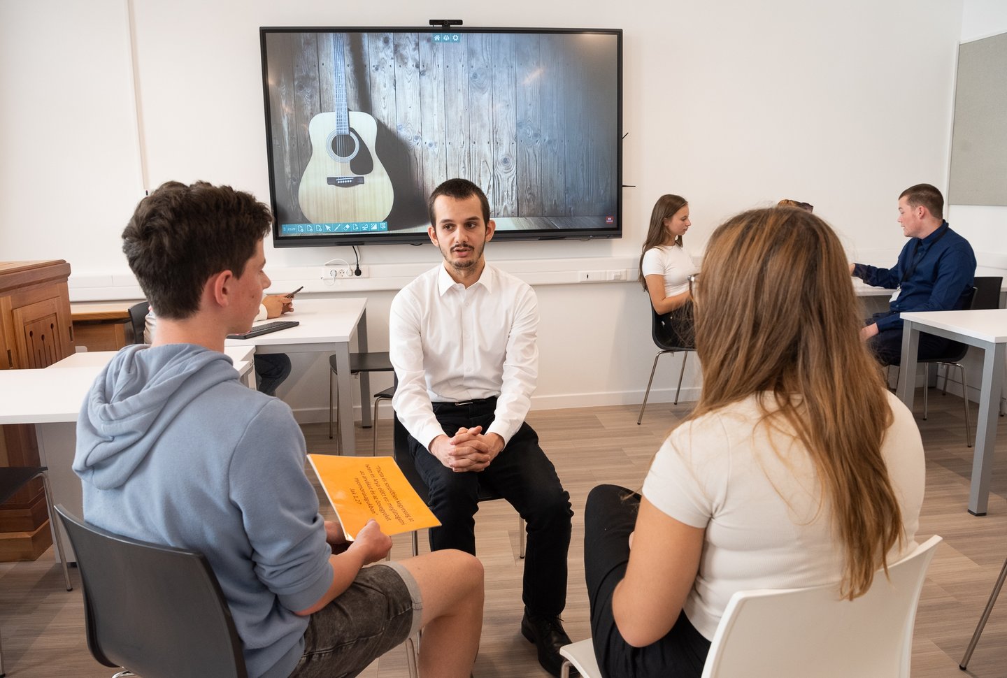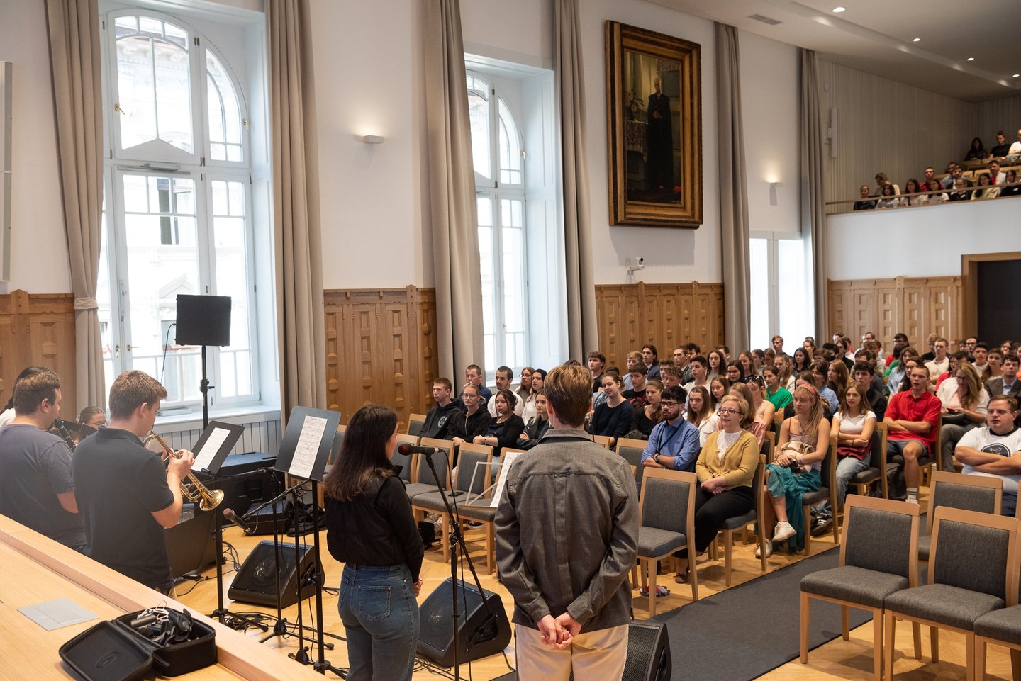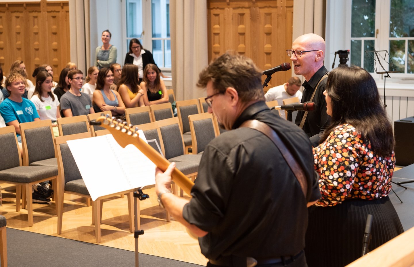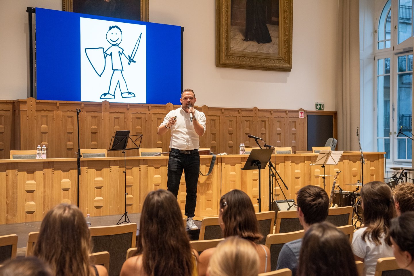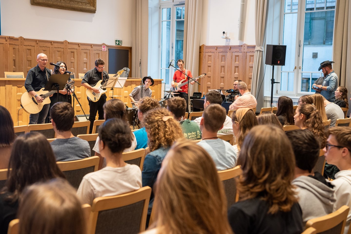 Az ifjúsági nap játékos, közös lezárására a díszteremben került sor, ahol a diákok testhelyzetükkel fejezhették ki mindazt, amit a délelőtt folyamán kaptak. A Ráday Ház végül helyben elkészített pizzaebéddel búcsúzott el tőlük.