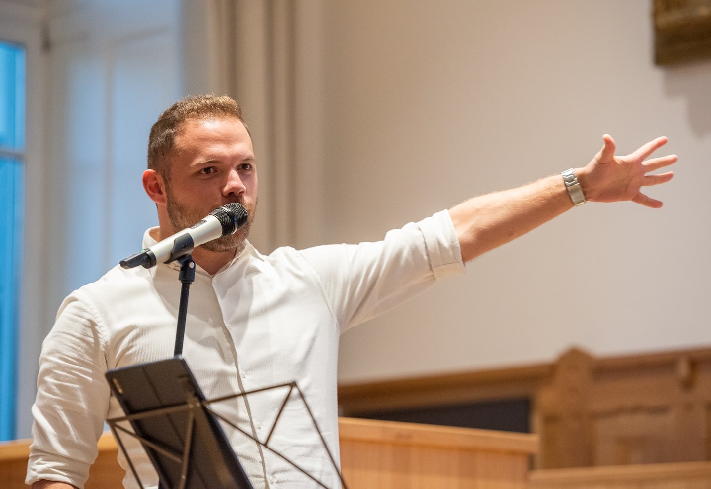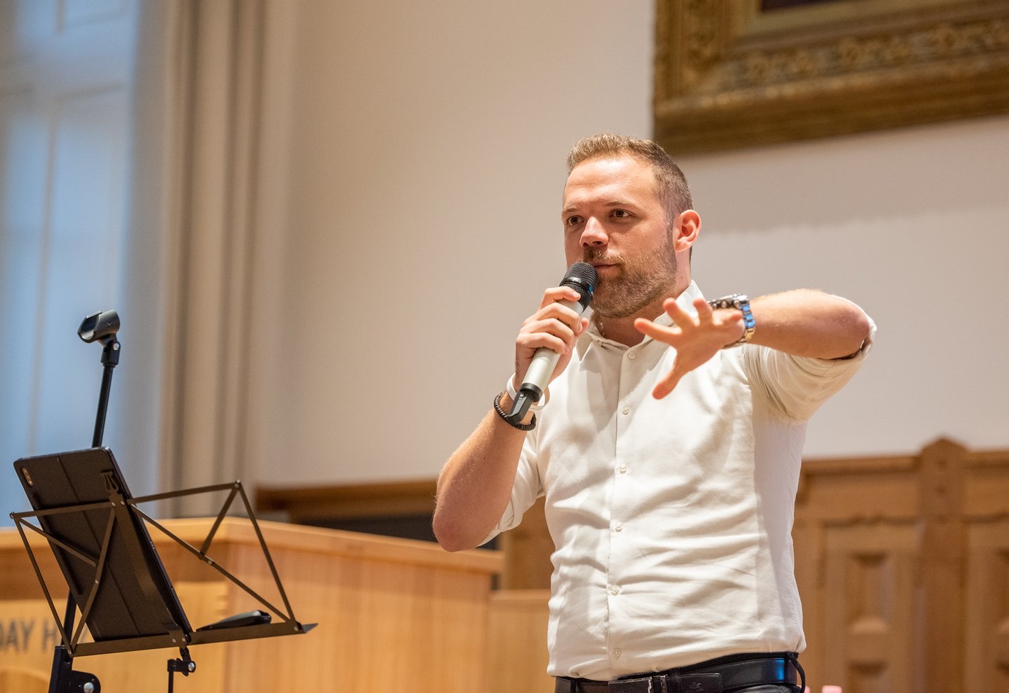 Kovách I. Bendegúz lelkipásztor előadásában arról beszélt, hogyan lépjünk ki abból a zárt gyülekezeti buborékból, amelyben élünk. Ennek szemléltetéseképpen közösen felvérteztek egy harcost erre a kilépésre. Az első, amire a harcosnak szüksége lesz, a bátor szív. Bátornak lenni, nem félni különösen nehéz a félelem kultúrájában, amelyben élünk. Ám aki fél, az befolyásolható, irányítható – figyelmeztette hallgatóságát az előadó. A legtöbbször attól félünk, hogy nem vagyunk elég értékesek mások szemében. Ezzel a félelemmel azonban nem léphetünk ki a templomajtón kívülre. „Jézus főpapi imájában arról beszél, hogy nem kivenni akarja a tanítványokat a világból. Az megfutamodás. Nekünk azért lehet ma hitünk, mert ők nem futamodtak meg. Jézus nem kivesz egy helyzetből, hanem hatással van körülményeinkre, és arra, ahogyan ezeket tapasztaljuk.” Az előadó kiemelte: Isten számára értékesek vagyunk, ezért erre kell hangolnunk a szívünket. Jézus meghalt a bűneinkért, ezért mehetünk hozzá, hogy kapjunk a szeretetéből.