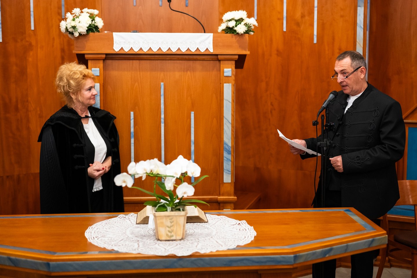 „Arra tanítottál minket, hogy ne feledkezzünk meg arról, hogy Istené a dicsőség, de meg lehet dicsérni egymást és köszönetet is lehet mondani egymásnak” – kezdett köszöntőjébe Tóth László főgondnok. Kifejtette: lelkészéről elsőként a szeretet jut az eszébe, amely által igazi szeretetközösséggé lettek. Másodikként a hitelességet említette: „Klári mindig azt cselekszi, amit hirdet és azt hirdeti, amit cselekszik.” Kiemelte a lelkész személyességét is, és azt, hogy a gyülekezetet gyermekének tekintette. Végül arra kérte, hogy pihenjen sokat.