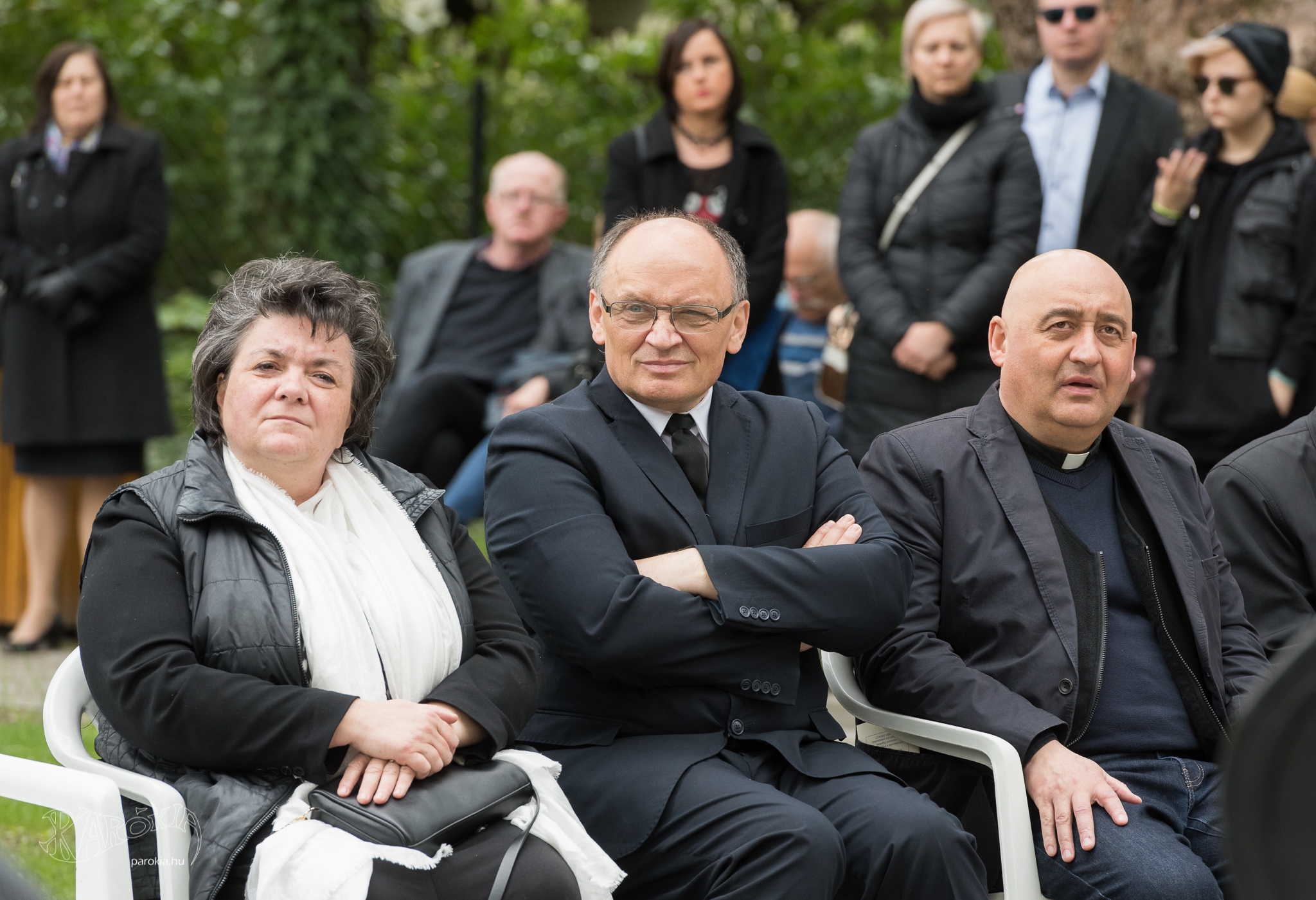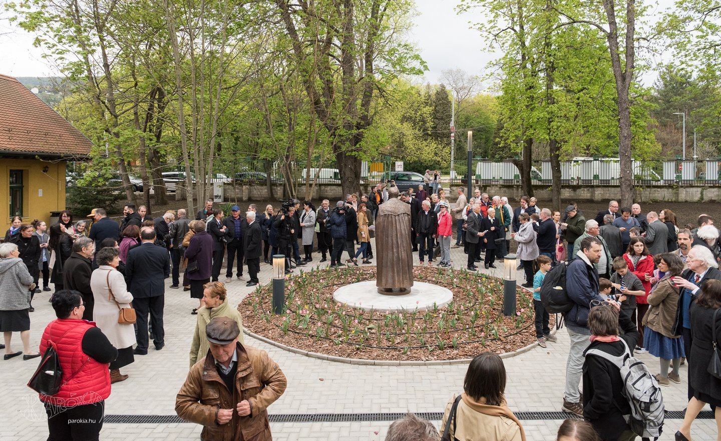 Az ünnepség Ravasz László szobrának leleplezésével folytatódott. A villaépület impozánsan felújított, egészen a Duna-partig húzódó kertjében kapott helyet – a világon elsőként – Ravasz László püspök egész alakos szobra. A 2,2 méter magas bronz alkotás a Magyar Érdemrend Lovagkeresztjével kitüntetett Kutas László szobrászművész munkája. A püspököt egyházi szolgálatának hangsúlyozásával, palástban és kezében Bibliával, de tudományos tevékenységét is jelezni kívánva, a palást alatt öltönyt viselve ábrázolja. A szobor Leányfalu központi helyére, a Ravasz Lászlóról elnevezett intézmény elé került. A szoborállítást kezdeményező helyi református gyülekezet Borzsák Sándor Alapítványa a műalkotást a Dunamelléki Református Egyházkerületnek ajándékozta. A gesztusértéken túl így kívánnak kellő védettséget biztosítani a műalkotásnak – számolt be érdeklődésünkre Kovách Tamás, a Pócsmegyer–Leányfalui Református Társegyházközség lelkipásztora (a képen középen).