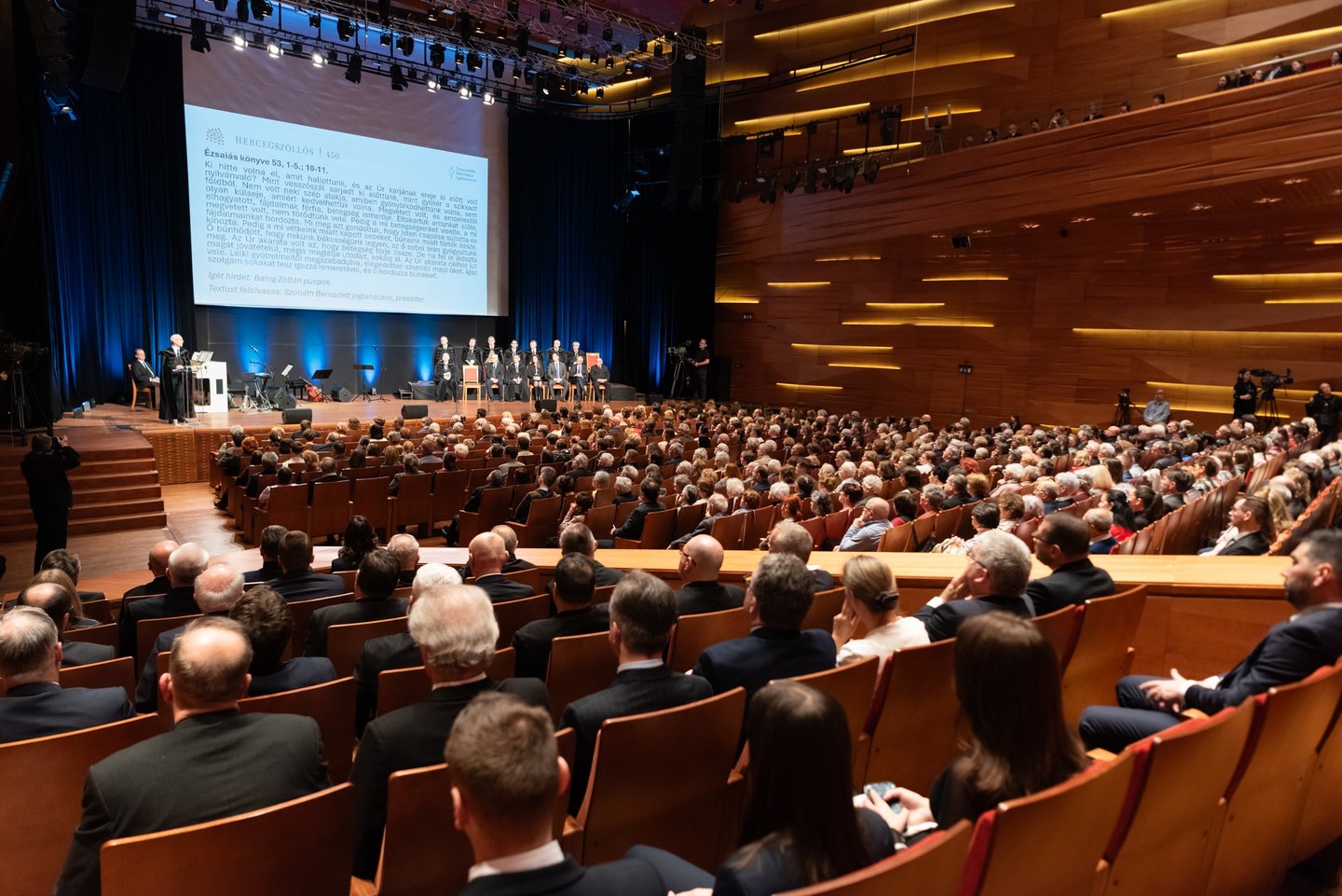 Hogy lehet ma lelki választ adni az ember és a nemzet megtartására? – tette fel a kérdést végül. „Lehet, hogy nem mindig választ kell adni, lehet, hogy kérdezni kell: hiszed-e, hogy a szabadítás, a megtartatás, a növekedés ereje nem bennünk van, hanem annak az áldozatában, aki értünk halt meg és értünk támadt fel?”
