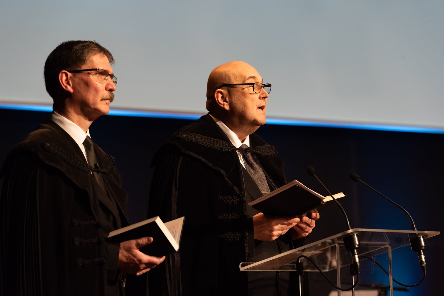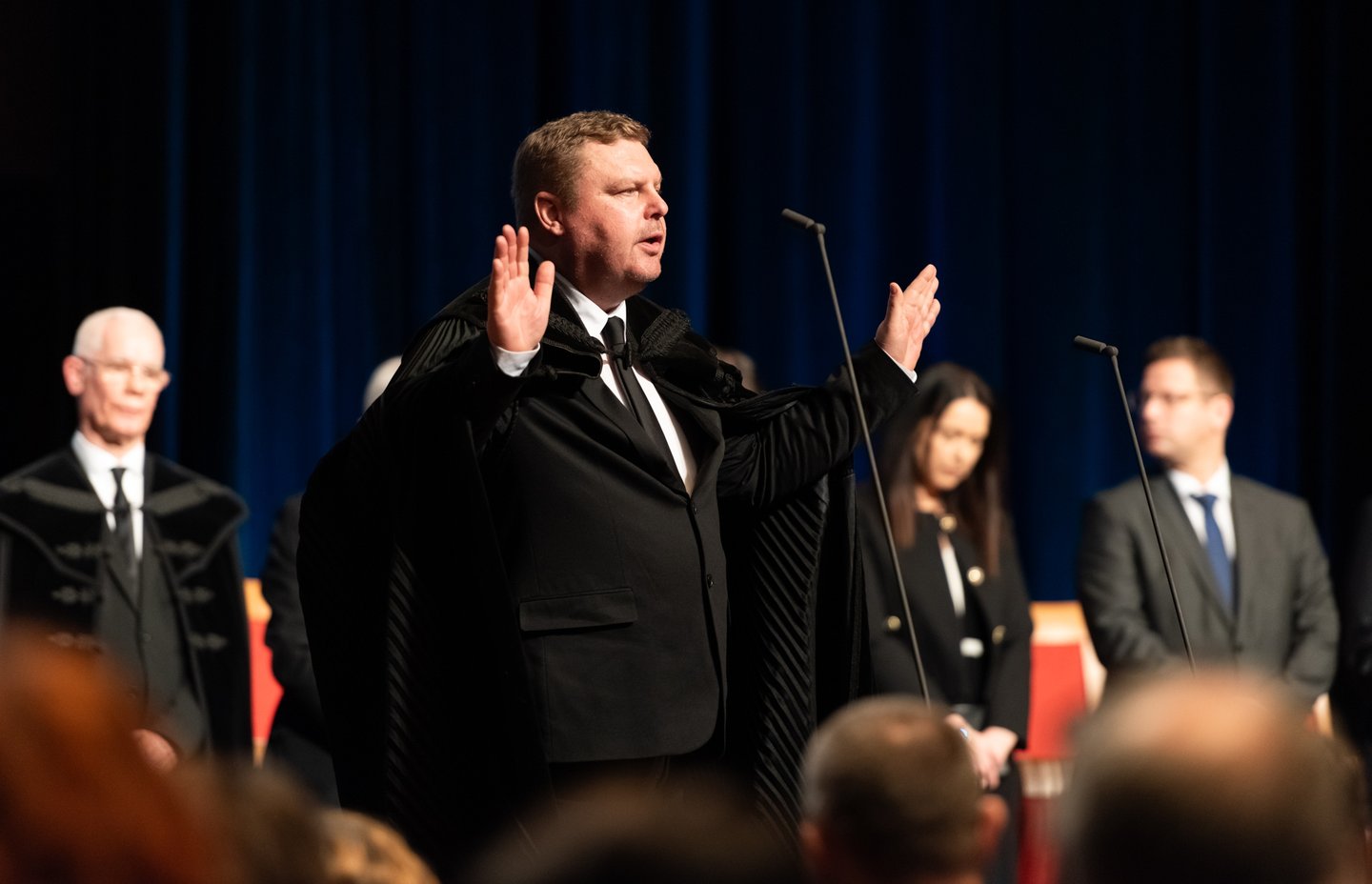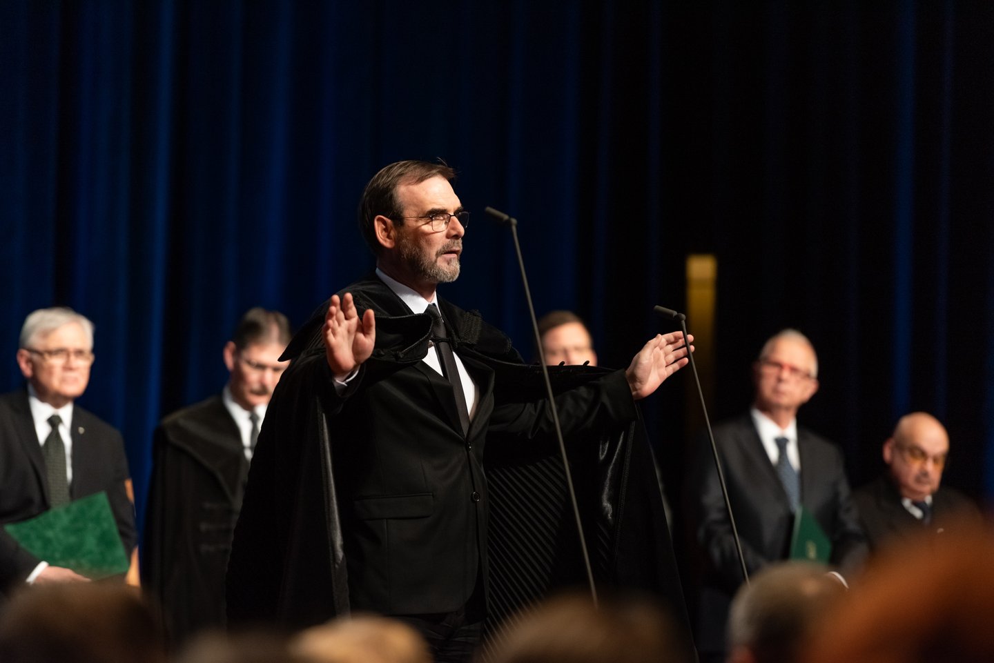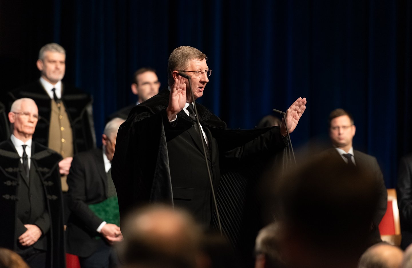 A rektor Ravasz László református püspököt idézte, aki szerint a közösség egyéniség nélkül nem működik, hiszen nyájból nem lesz nemzet, ugyanakkor a közösség nélkül, individuumként élő egyének összessége nem más, mint anarchia. A jubileumi év egyik védnöke arra buzdította az ünneplő közösséget, hogy álljanak ki értékeikért, emeljék fel szavukat, ha azokat veszélyeztetve látják. Az egykori prédikátorok hite és elkötelezettsége legyen példa a keskeny ösvény megtalálásában.