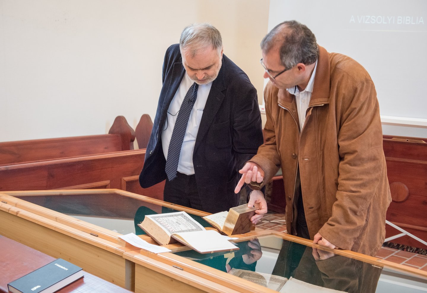 Az államtitkár beszélt a gyűjtemény egyik ritkaságáról, egy kissé megrongálódott 1590-es eredeti vizsolyi bibliáról is. A Károli-biblia jelentőségéről szólva elmondta, a magyar nyelvű teljes Szentírást kinyomtatását követően az ország minden nagy gyülekezetébe eljuttatták, így azt az anyanyelvű istentiszteleten használhatták. Korábban ugyanis latin nyelvből fordították a tárgyalt igehelyeket a prédikátorok.
