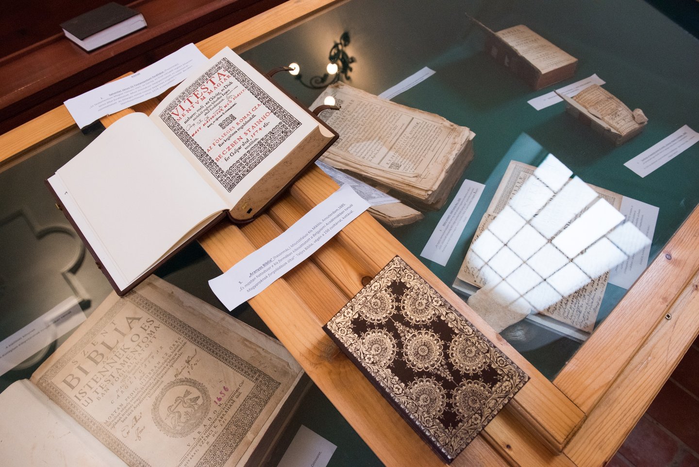 A kiállításon a többi közt megtekinthető az első teljes, magyar nyelvű, katolikus biblia, a Káldi György-féle fordítás; a Váradi Biblia, a 150 zsoltárral kiegészített pozsonyi biblia egy-egy példánya, valamint Misztótfalusi Kis Miklós Aranyas Bibliájának faximile kiadása is. Emellett hitvallási könyvek, istentiszteleti rendtartások is szerepelnek a gyűjteményben a 16. század végétől egészen a 18. századig. „Tekintélyes gondolkodók egyöntetű megállapítása szerint ha nem lett volna reformáció Magyarországon, akkor minden bizonnyal ma nem magyarul beszélnénk. A 16. századi egyházi megújító áramlat a humanizmussal együtt ugyanis megváltoztatta a három részre szakadt Magyarország lelkületét. Konokul ragaszkodóvá tette a magyarságot az anyanyelvhez, és hozzájárult az anyanyelv irodalmi megújításához. Megmaradásunk legfőbb záloga az egységes magyar nyelv reprezentálása lett, amelyet a magyar nyelvű Biblia tett lehetővé. Az pedig a könyvnyomtatásnak köszönhetően idővel nemcsak valamennyi egyházi közösséghez, hanem az összes családhoz is eljuthatott” – zárta gondolatait Hoppál Péter.
