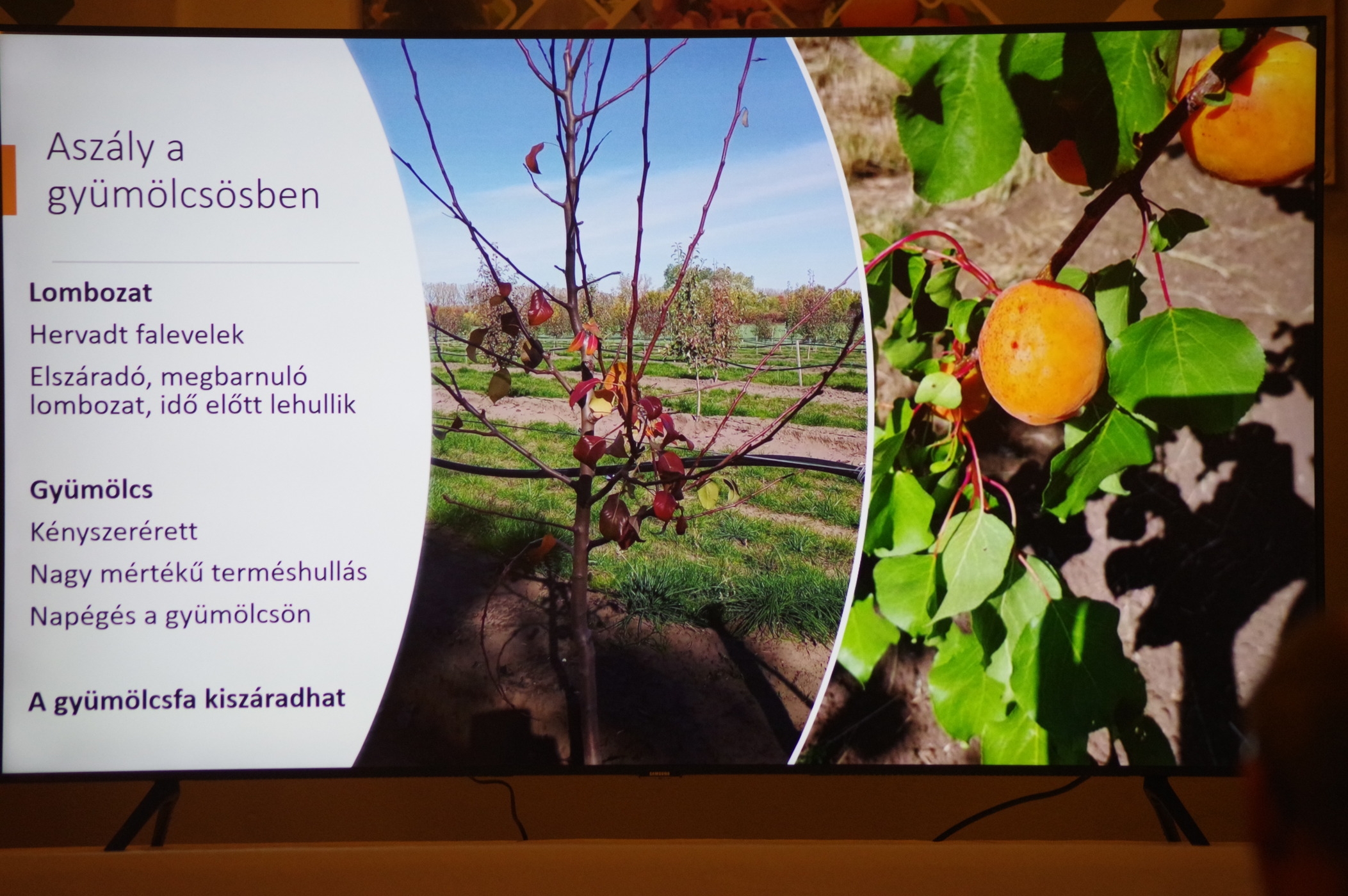 Baktai Boglárka, az intézet igazgatója köszöntőjét azzal fejezte be, hogy bemutatta azokat a munkatársakat, akik hol a háttérben, hol pedig szem előtt ténykednek. Az elvégzett munka mögött mindig van valaki, még akkor is, ha nem látható, nem találkozunk vele, nem halljuk a hangját. Pompás alkalom volt ez arra, hogy a közösség megköszönje, kifejezze háláját a csapatnak, akik a program folytonosságáért dolgoznak. Ezt követte Gyurkó Adrienn előadása az egyik legaktuálisabb kérdésről, az aszályról. Előterjesztésében nem csak az okokat és következményeket vette sorra, hanem gyakorlati útmutatást is adott, hogy talajtakarással, szerves trágyával, jól megválasztott vadalannyal, irányított gyökérlocsolással, tányérozással eredményesen védekezhetnek a kerttulajdonosok.