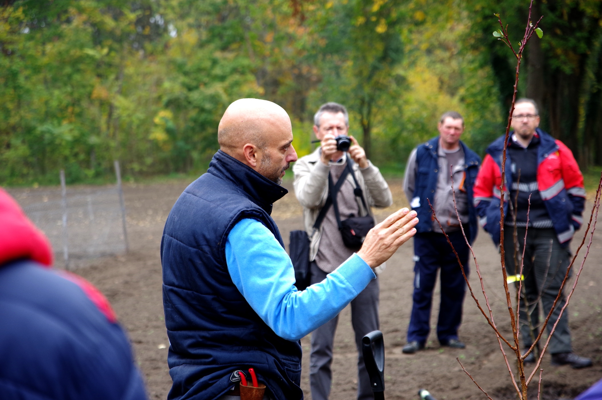 A gyümölcsész rendezvény aszalvány- és szörpkóstolóval folytatódott. A helyi gyümölcsösben termett különféle fajtájú almát, meggyet többféle feldolgozásban, cukorral, cukor nélkül ízlelgethették a résztvevők. A kóstolót a szervezők nem csupán csemegézésnek szánták, hanem mindenki értékelőlappal a kezében véleményezhette az ízhatást. Elmaradhatatlan része a találkozóknak az ültetési bemutató, amit Szani Zsolt végez, aki a NÉBIH munkatársa. Rendkívül szerény, nagy tudású és jó humorú előadó, aki praktikus tanácsaival óriási segítséget nyújt a kezdő kertészeknek. Szavai, gyakorlati eligazításai, még a témától távolságot tartókat is elhiteti, hogy ezt még ők is meg tudják csinálni.