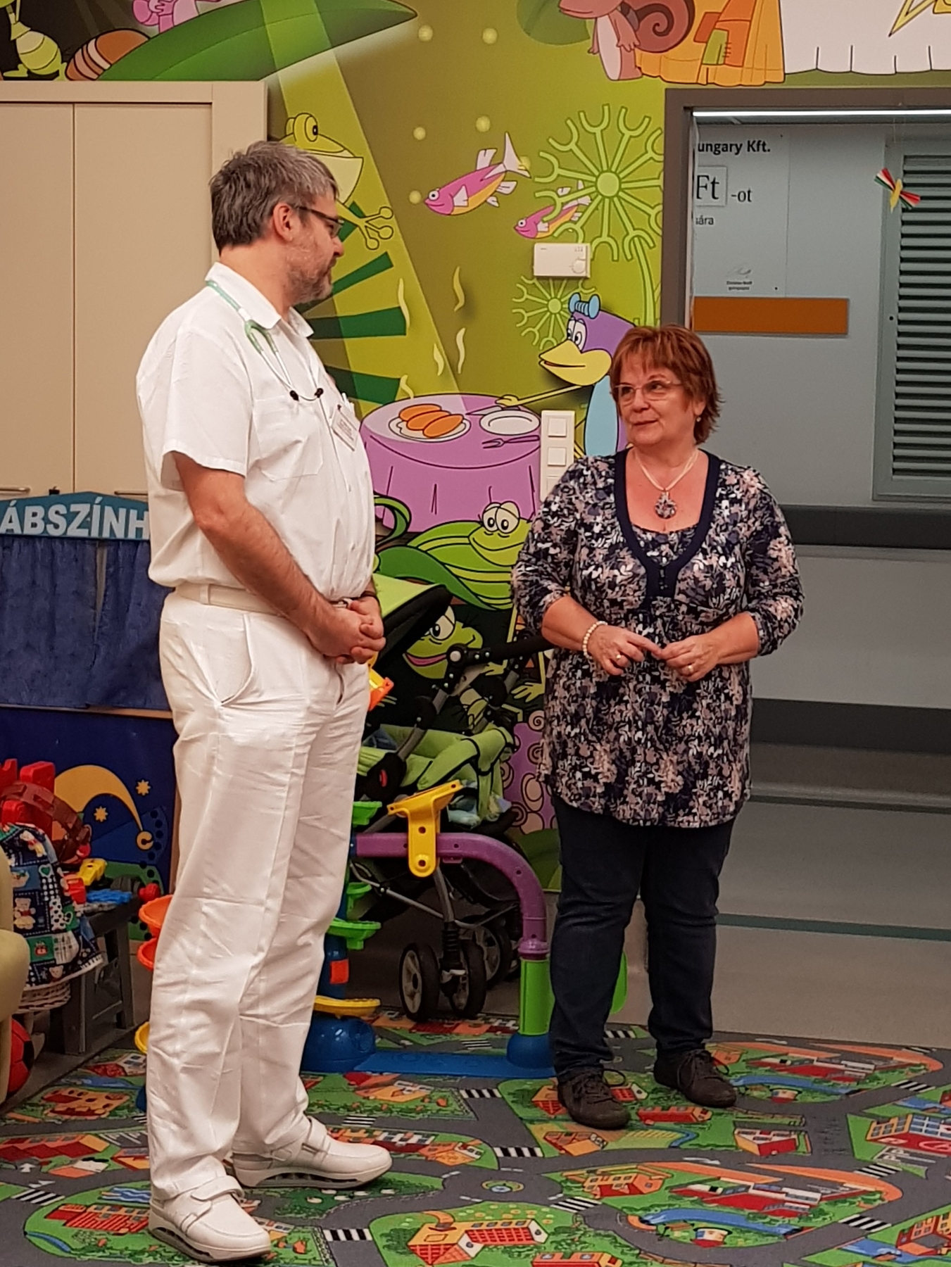 Dr. Tálosi Gyula osztályvezető főorvos néhány munkatársával együtt személyesen köszönte meg a múzeum által összegyűjtött ajándékot.
