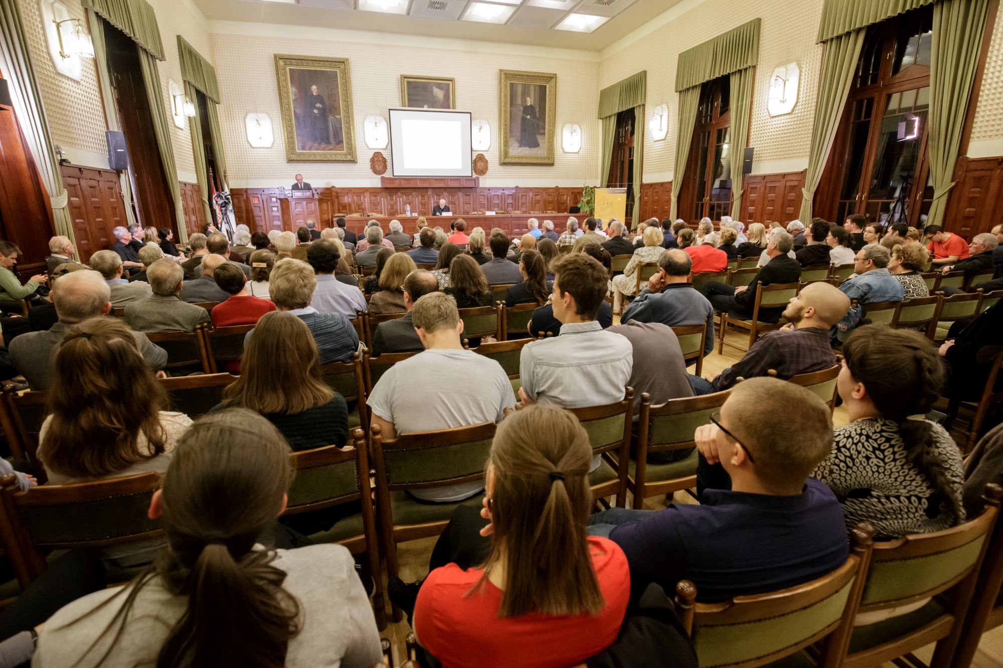 Erdő Péter katolikus bíboros és Bogárdi Szabó István református püspök tartott előadást a reformációról október 17-én Budapesten, a Károli Gáspár Református Egyetem Hittudományi Karán. A teológia két kiváló, tudós művelője – ahogy Balla Péter rektor nevezte őket – az 500 évvel ezelőtti történések előzményeiről, a keresztyén felekezetek közötti párbeszéd elmúlt évszázadairól és mai helyzetéről is elmondta véleményét.