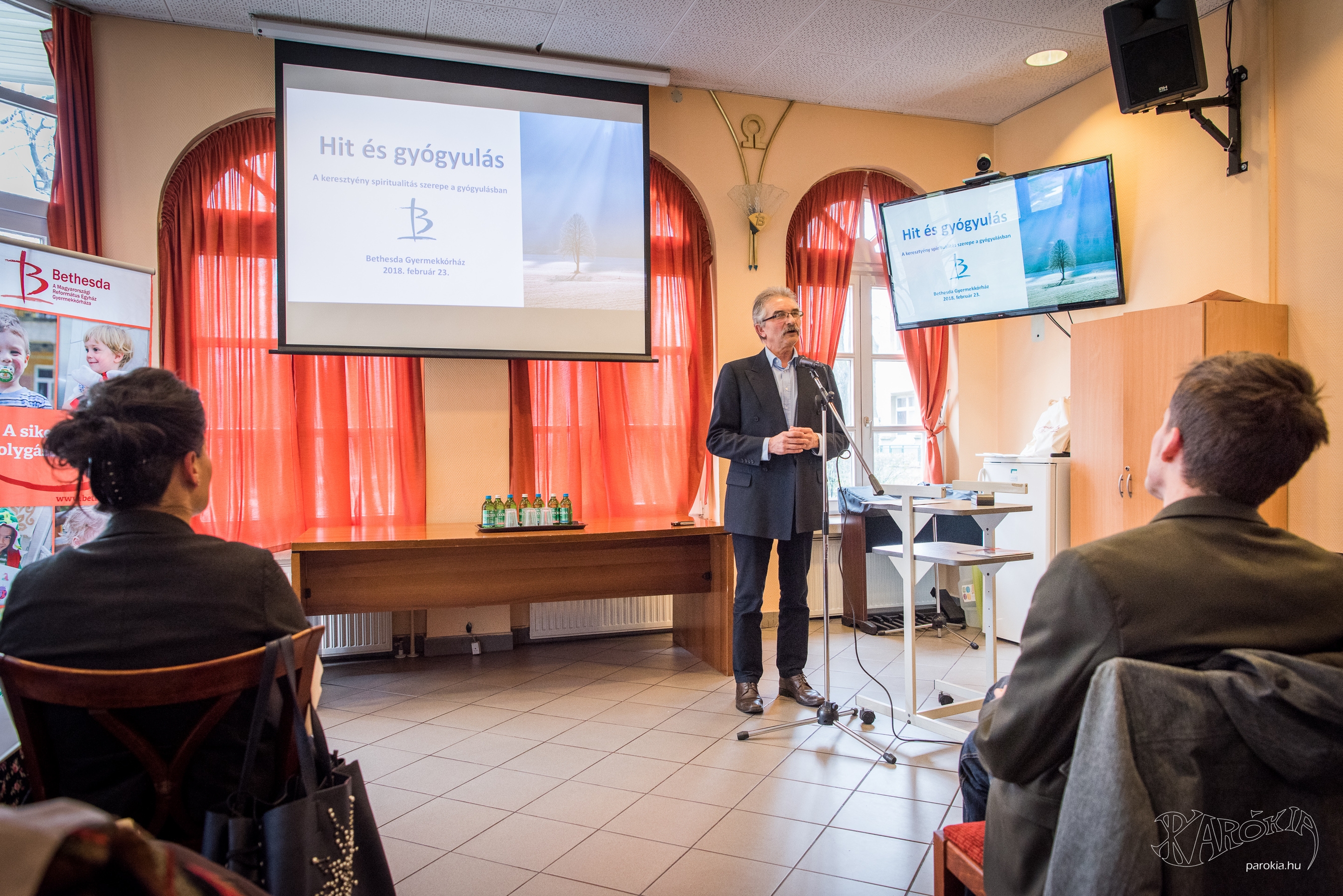 Dr. Jeanné Loós Anita, a Bethesda Kórház klinikai szakpszichológusa előadását azzal kezdte, egy mondatban elintézhetnénk, ki a gyógyító, hiszen tudjuk, hogy Jézus Krisztus. Erről szólni kell a környezetünkben, mert mindig van, aki rászorul. Már pusztán egy jó szóval, biztató tekintettel, bármilyen gesztussal segíthetünk a másik embernek továbblendülni. „Ha ezt megtettük, igen sokat tettünk” – mutatott rá. Sok kutatás született, amelyben a pszichés állapot és a testben zajló biokémiai folyamatok kapcsolatát figyelték, azt, hogy milyen hatással van az immunrendszerre a lelki állapotunk. A hit pszichoneuro-immunológiai hatást fejt ki, adaptívabban küzdünk meg a problémákkal, gyorsabb a felépülés, segíti a hosszabb életet. Egyértelműen egészségvédő hatása van, személyes kapcsolataink pedig erősödnek. Önmagában erősít az abban való bizalom, hogy rendelkezünk forrással a problémák leküzdéséhez. Ugyanígy azt is megfigyelték, hogy a vallásosság, a hit hatással van a testi-lelki egészségre. A Bethesda Kórház szakpszichológusa hangsúlyozta, az erősebb vallásosság jobb állapotot eredményez. Aki megéli a hitét, van istenélménye, tudja, ki élete vezetője, s így éli az életét, annak jobb a mentális és testi egészsége. Csökken a kockázata a depressziónak, drogfogyasztásnak, öngyilkosságnak, ráknak. Egy vallásos család biztonságosabb érzelmi hátteret tud nyújtani a gyermekeknek. Ha stressz éri őket, akkor a szenvedés értelmét is megpróbálják megkeresni, s hitük segítségével megküzdeni vele. A hitre jutott alacsonyabb szociális helyzetű emberek élete kivirágzik, munkához jutnak, dolgoznak, emberi kapcsolataik erősödnek. Az imák és istendicsőítő énekek a légzés szabályozásával pozitívan hatnak a központi idegrendszerre, relaxáló hatásúak, védik a szív- és érrendszert. A vallásukat rendszeresen gyakorlók kevesebb napot munkaképtelenek, kevésbé csökken a munkaképességük. Egyértelmű, hogy az élet értelmébe vetett hit bizonyul a leginkább védő hatásúnak. Dr. Jeanné Loós Anita beszélt arról is, hogy döntő a gyógyulás szempontjából az első lépés. Fel kell állni. Nem szabad másokat hibáztatni, felelősséget hárítani.