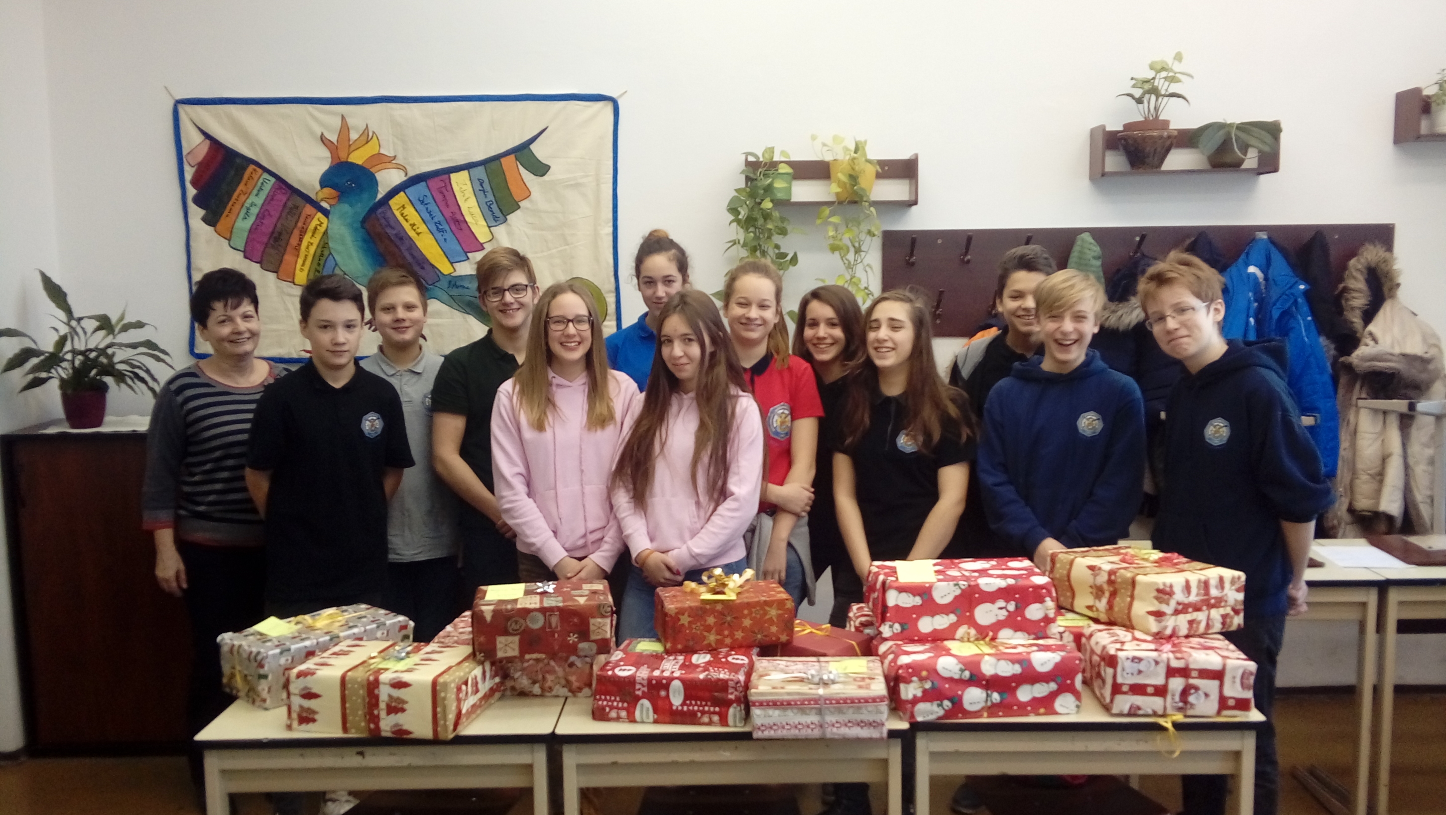 Ennek keretében diákjaink egy vagy több cipős dobozt töltenek meg nélkülöző gyermekeknek szánt ajándékokkal és csomagolják azokat be szép díszesen.