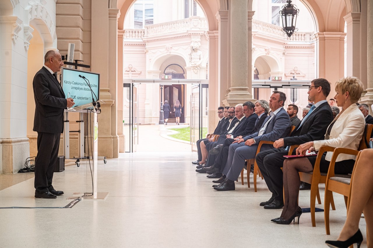 A szeptember elsején tartott átadó ünnepségen Gulyás Gergely Miniszterelnökséget vezető miniszter elmondta, a magyar kormány a rendszerváltás régi adósságát tudta le a felújítással. Az épületet nem kímélték a 20. századi magyar történelem viharai, a szocialista rendszer nem ismerte fel sem a palotaegyüttes jelentőségét, sem az elszenvedett károk nagyságát.