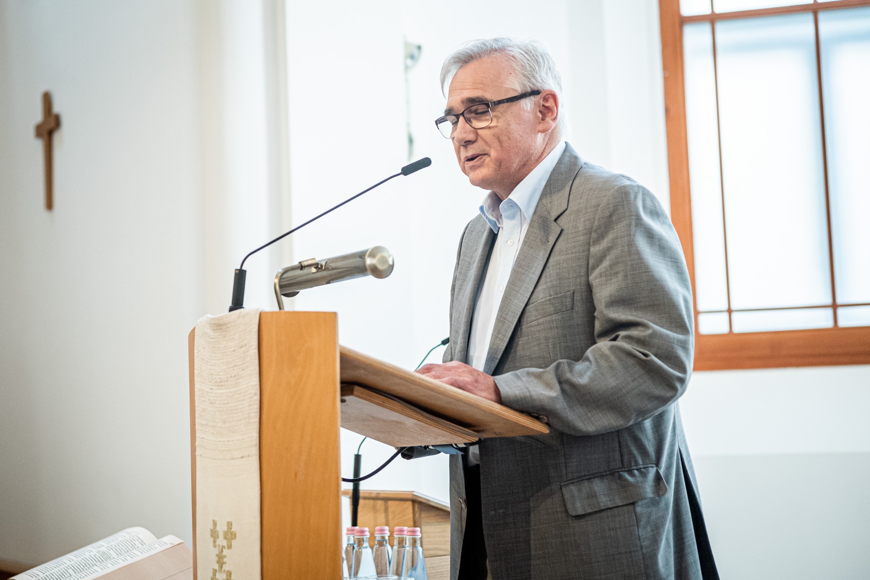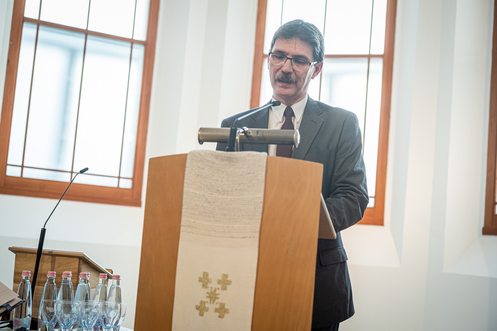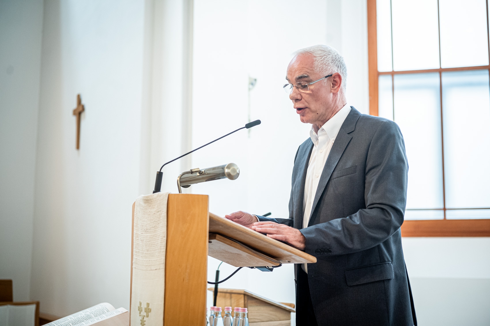 Mit jelent mindez a társadalmi és nemzeti keretek tekintetében? – tette fel a kérdést. „Adjunk hálát, hogy vannak nemzeti keretek! A textus és a kontextus viszonya a mi kezünkben van. A kiszolgáltatottsággal szemben az Ige üzenetét kell vállalnunk.” Hozzátette: a belső elhívásról, magáról a szolgálatról és az anyagi biztonságról együtt kell beszélnünk. „Legyen végre olyan egyházkerületi választás, amely békességben zajlik! Én ezért mindent meg fogok tenni” – ígérte. „Ha Isten tudja szeretni az egyházat, mi miért nem? Szigetek vagyunk, de kontinenssé kell összeállnunk.” Végezetül arra figyelmeztetett, hogy becsüljük meg azt, amikor egyházon kívül is beszélnek a kereszténységről, például a keresztény szabadság kapcsán. „Vonjuk be őket a párbeszédbe, és tegyük hozzá az igei alapjainkat! Ez kell a határok átlépéséhez.”