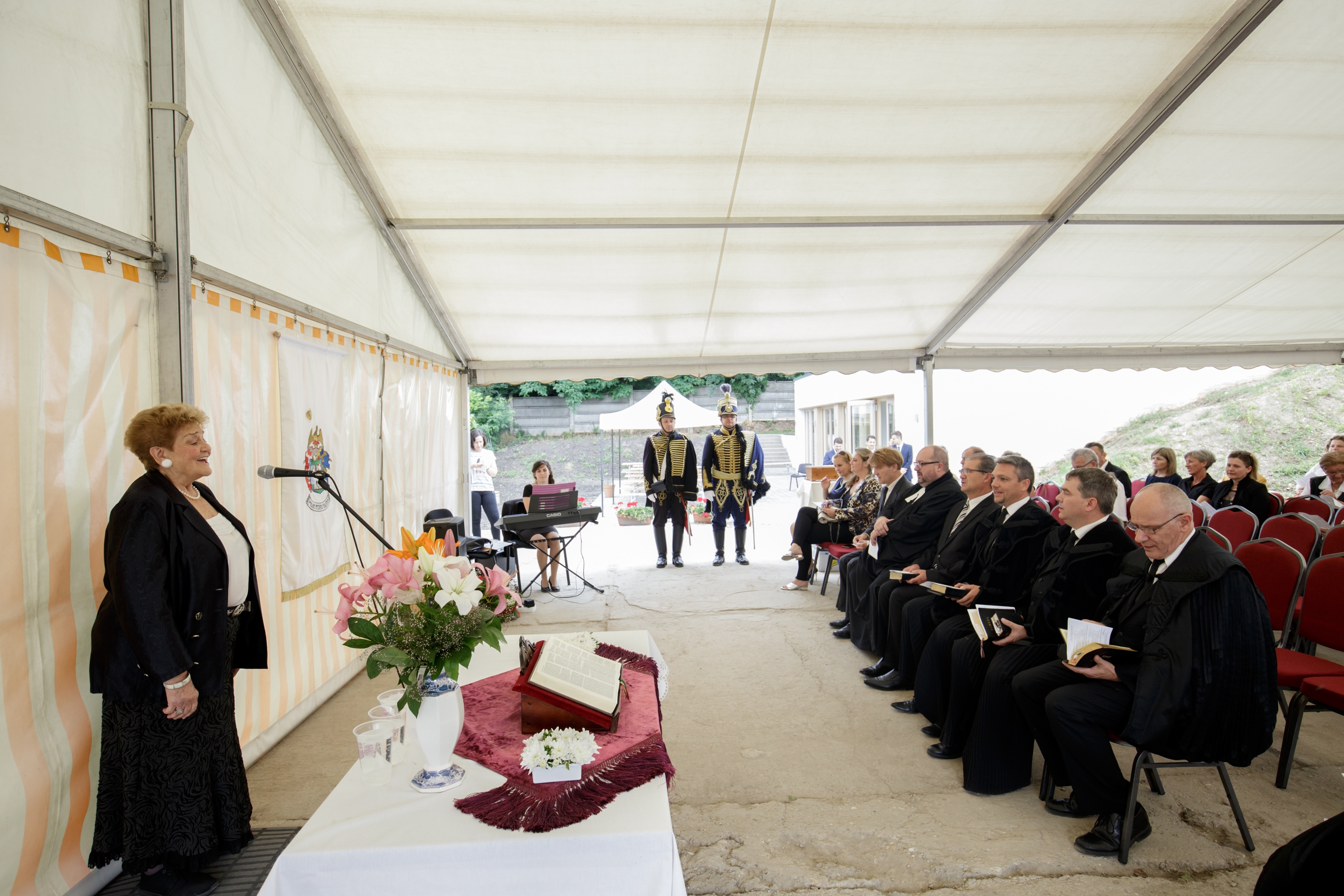 „Rügyet fakaszt az ág, bár mit sem ígér bimbaja, pompás lesz a virág. Ki kétkedőn boncolja Őt, annak választ nem ád, de a hívő előtt az Úr megfejti önmagát…” – énekelte a gyülekezetnek Lipcsei Edit énekművész – Esztergály Előd Gábor lelkipásztor édesanyja – Az Úr csodásan működik című dicsőítő éneket. A lélekemelő dallamokhoz csatlakozott a közel kétszáz ünneplő jelenlévő is, hálát adva az Úrnak azért, hogy a történelem sodrában növekedett gyülekezet régi álma teljesült a Magvető Házának megszületésével, valamint a következő évben Isten Házának felépítésével.
