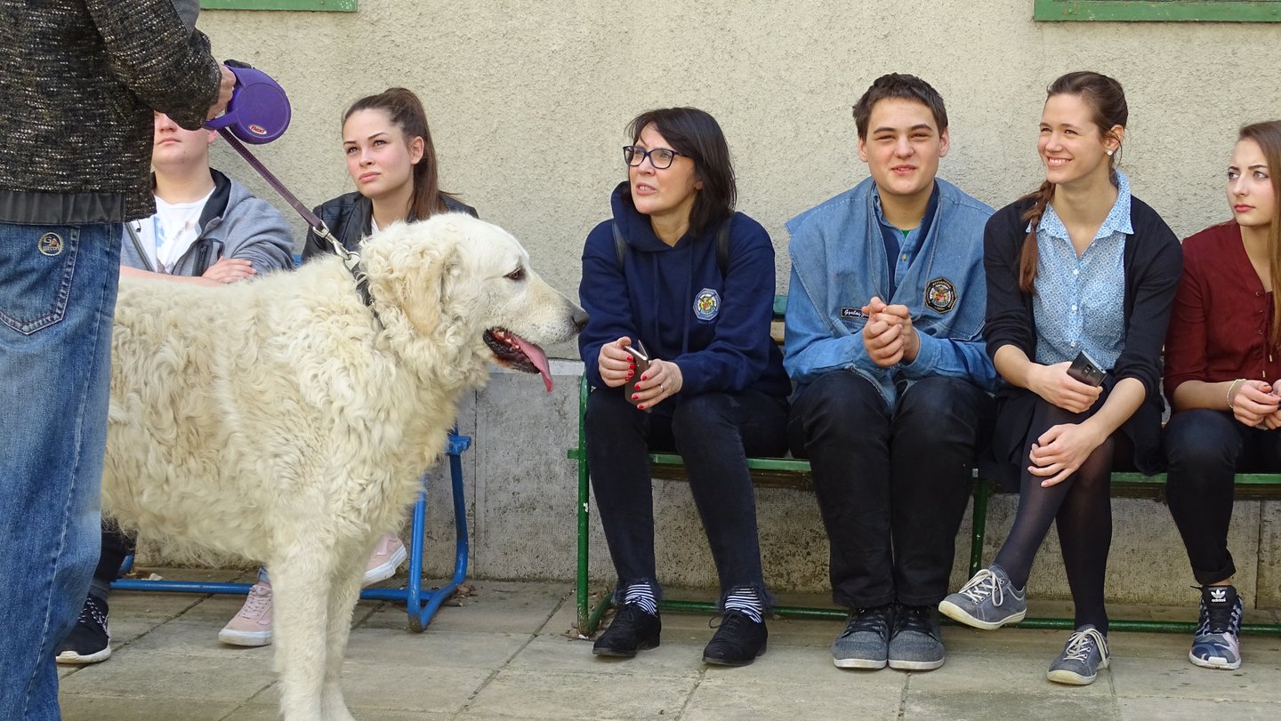 Kende, a kuvasz mérhetetlen türelemmel és barátsággal fogadta az érdeklődő ifjúságot, sőt a sok simogatást és ölelgetést egy-egy nyalintással viszonozta mindenki örömére. Az alsóbb évfolyamos diákjainknak előadást is szerveztünk az egészséges életmódról. Nemcsak iskolánk diákjai élvezték az állatbemutatót, hanem a hozzánk ellátogató óvodás- és általános iskolás csoportok is nagy örömmel töltöttek el nálunk egy kis időt.