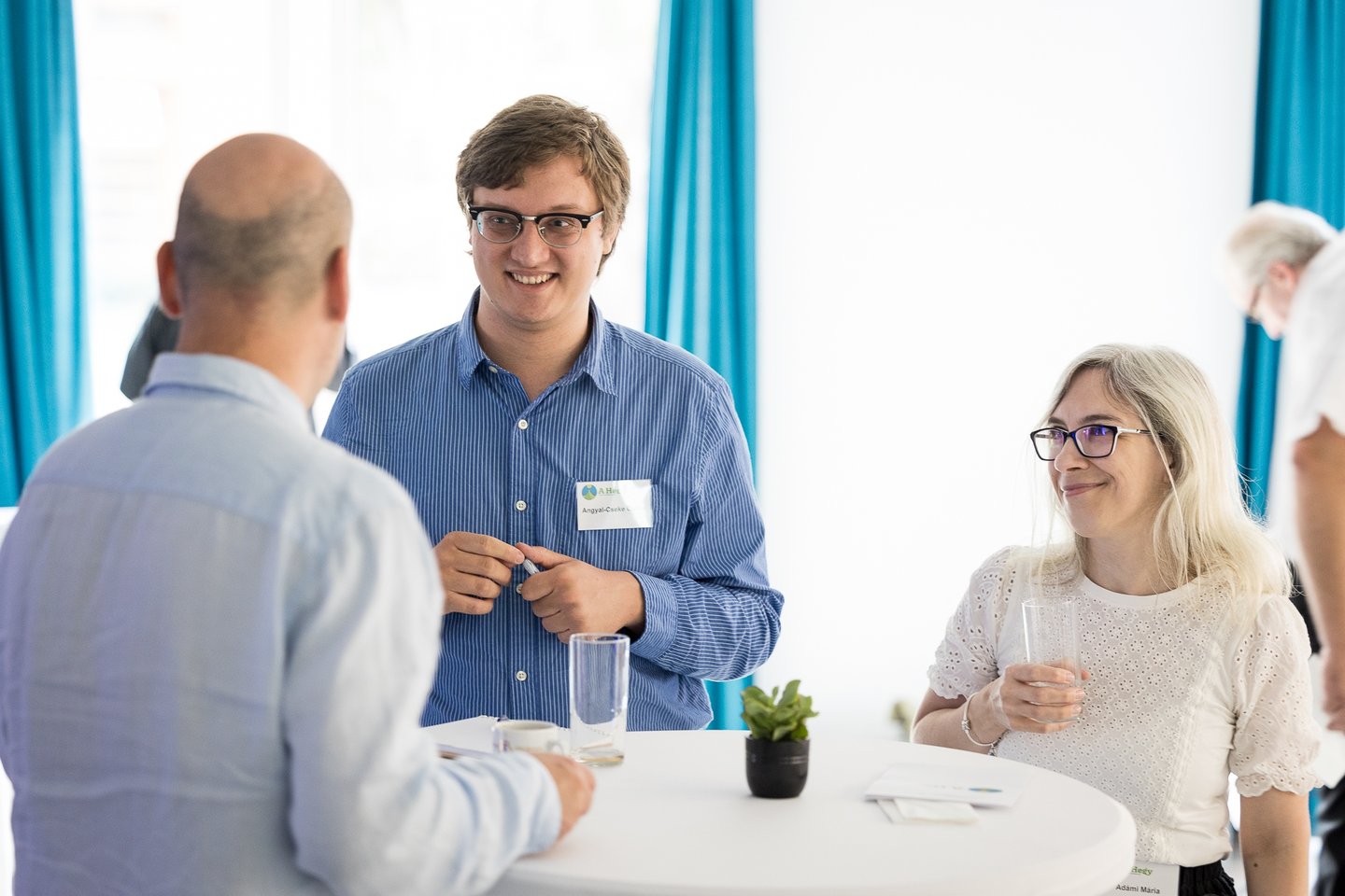 A délelőtt folytatásában az egyház és nyilvánosság témájáról való közös gondolkodásra pódiumbeszélgetés hívta a résztvevőket, amelynek alkalmával Kuzmányi István a Magyar Kurír főszerkesztője, Kézdi Beáta az Evangélikus Információs Szolgálat főszerkesztője, valamint Somorjai Balázs Magyarországi Református Egyház zsinati hivatalának kommunikációs osztályvezetője osztotta meg tapasztalatait. A Szlaukó-Bobál Orsolya evangélikus lelkész vezette beszélgetésben kirajzolódott, hogy a széles nyilvánosságot megszólítani igyekvő médiafelületek másodlagos missziói felületként arra is szolgálhatnak, hogy érthető választ adjanak korunk kérdéseire, de tisztán kell látni, hogy ennek hol vannak a határai. A számos érdekfeszítő kérdést megmozgató beszélgetésben hangsúlyossá vált, hogy tehetséges, elkötelezett keresztény fiatalok megszólításával az egyházi média jövőjét most lehet és most kell koncepcionálisan megalapozni.