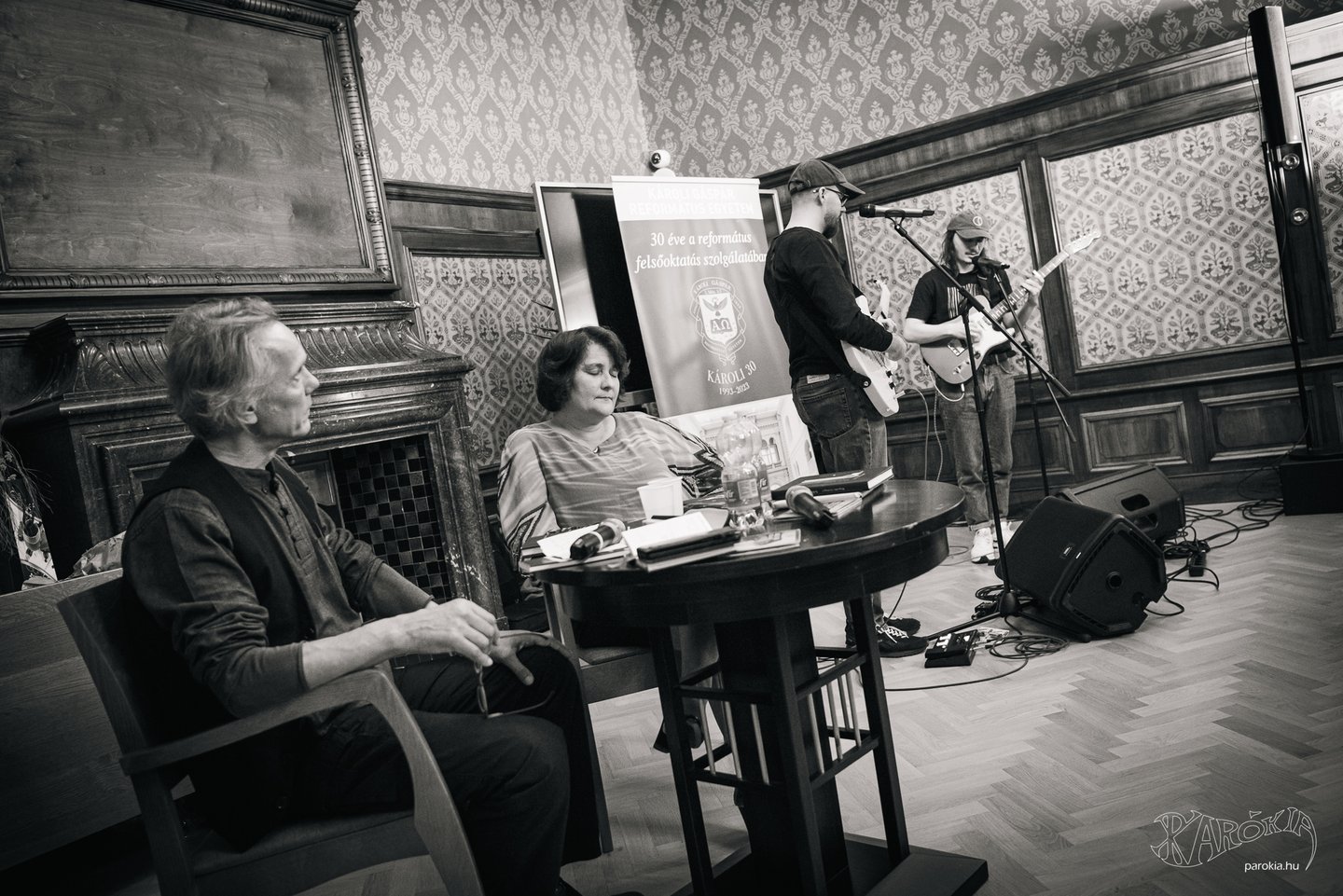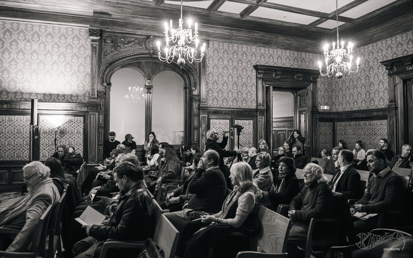 „Bennem is ott van a hegy, csúcsával lefelé. Egy út van, a zuhanás: elérem tetejét.” – A Platon Karataev dala intim, csendes duófelállásban nem is teremthetne erősebb atmoszférát Hegedűs Gyöngyi második kötetének bemutatójához. A Károli zavarba ejtően elegáns szivarszobája megtelt, a hangulat ünnepélyes és családias – a meghittség, a keresetlen őszinteség értelmében, az épp a dal záróakkordját játszó Balla Gergely – Czakó-Kuraly Sebestyén-duóból előbbi például a költő fia. Nem tudok nem arra gondolni, mennyire más ez az este, mint a régen, ifjúkoromban, a romkocsmákban tartott kötetbemutatók. És ebben nincs értékítélet egyik irányba sem. Az egyetem – számomra – új épülete is különös érzéssel tölt el. A Károli bölcsészkarára jártam (még az ezredforduló idején), de ez az épület akkor, az ezredfordulón még nem tartozott az egyetemhez, és ez az ünnepélyesség sem volt a campus tartozéka. Furcsa, nosztalgiától mentes, idegenszerű otthonosságba mártózom tehát.