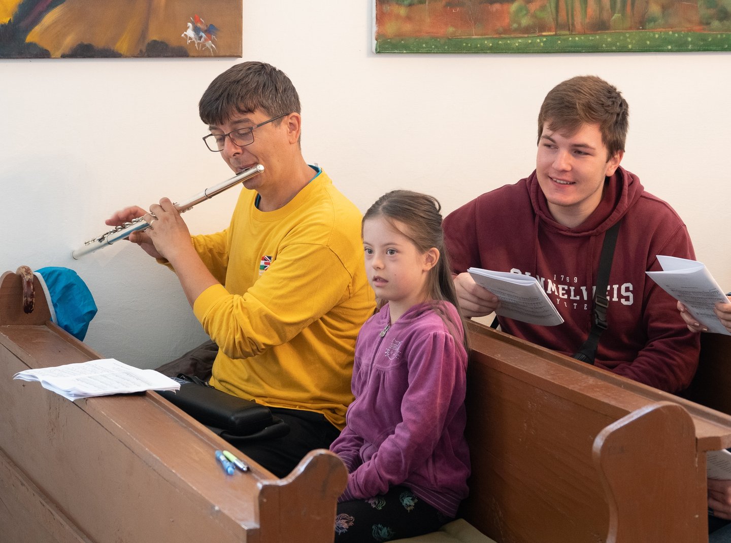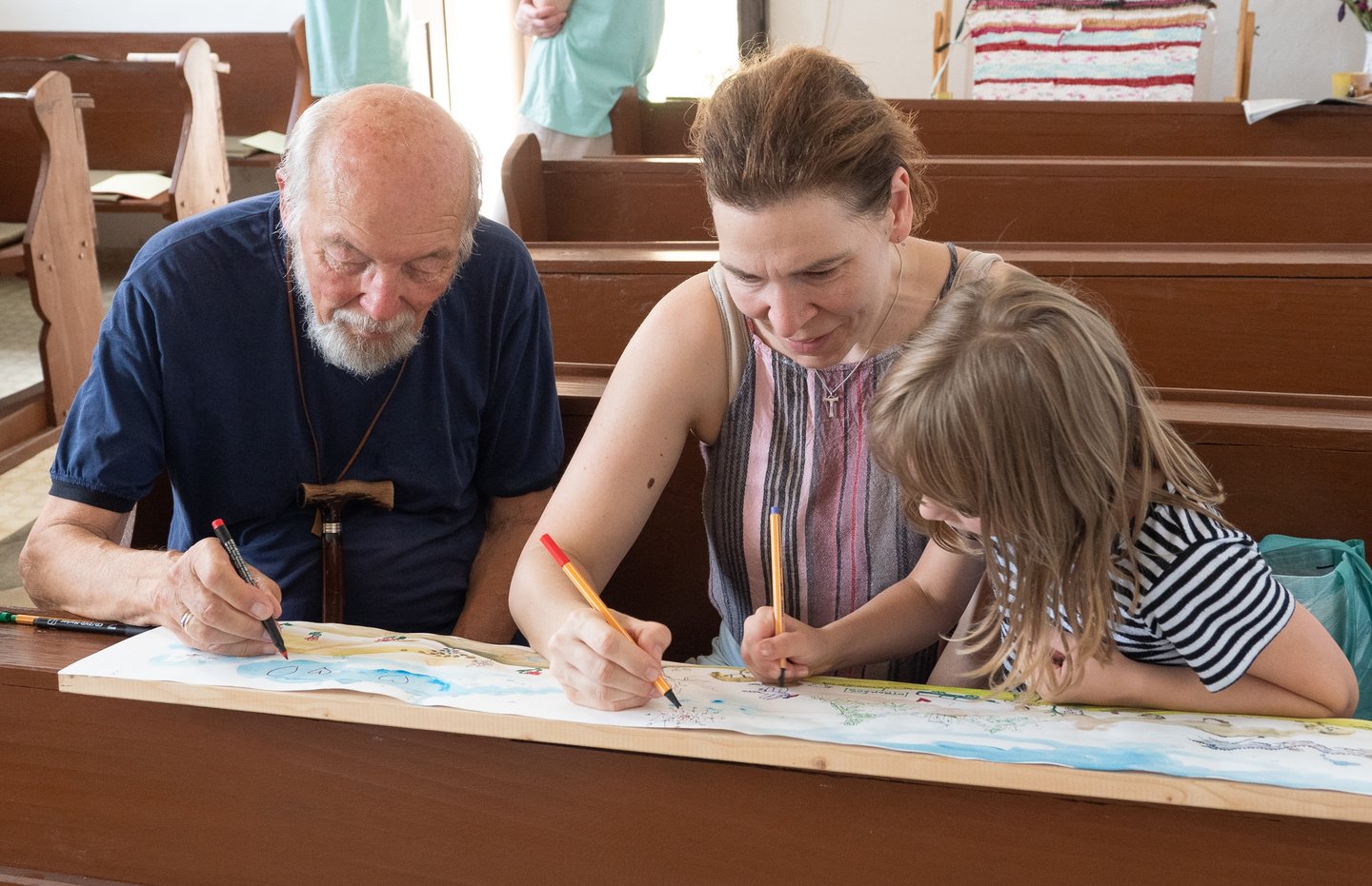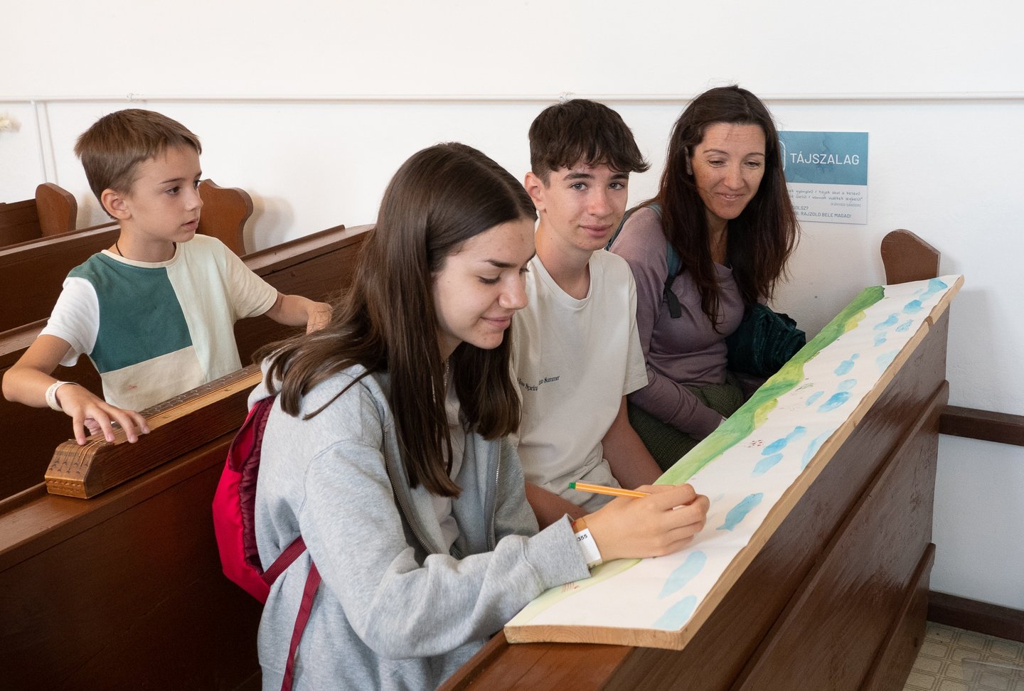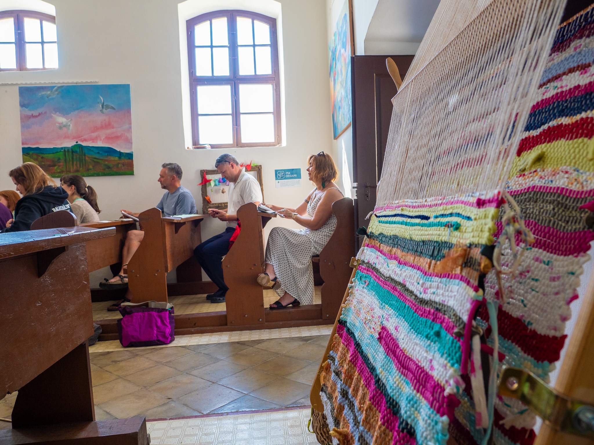 A legtöbbeknek ez a béke szigete. Az origami művészetével ismerkedő édesapa, Vrazsgyák Attila elmondja: a felesége kérésére jöttek a taliándörögdi református templomba, aki szerette volna megmutatni a családjának azt a festett kazettás mennyezetet, amely itt készült pár éve, amikor a többi völgylakóval együtt ő is ecsetet ragadott. Violetta most a szövőszékre telepedett le. „Szeretünk ide járni, mert itt újra láthatjuk kiállítva, amit közösen elkészítünk. Ez a kis templom is kedves nekem a maga egyszerűségével.”