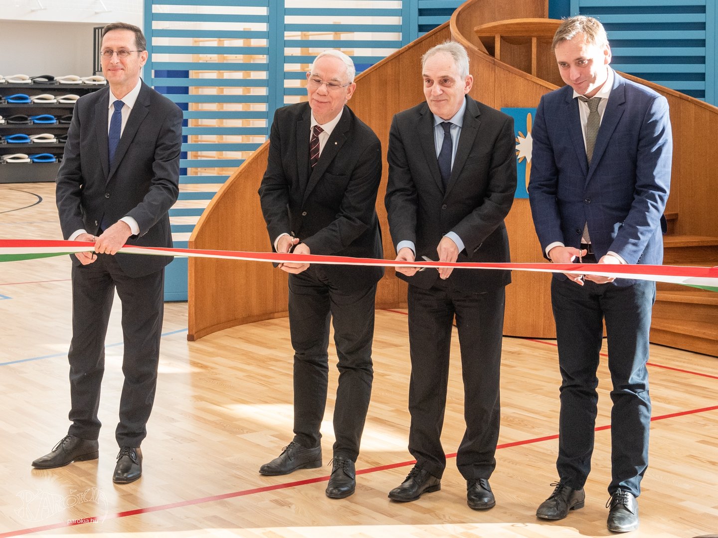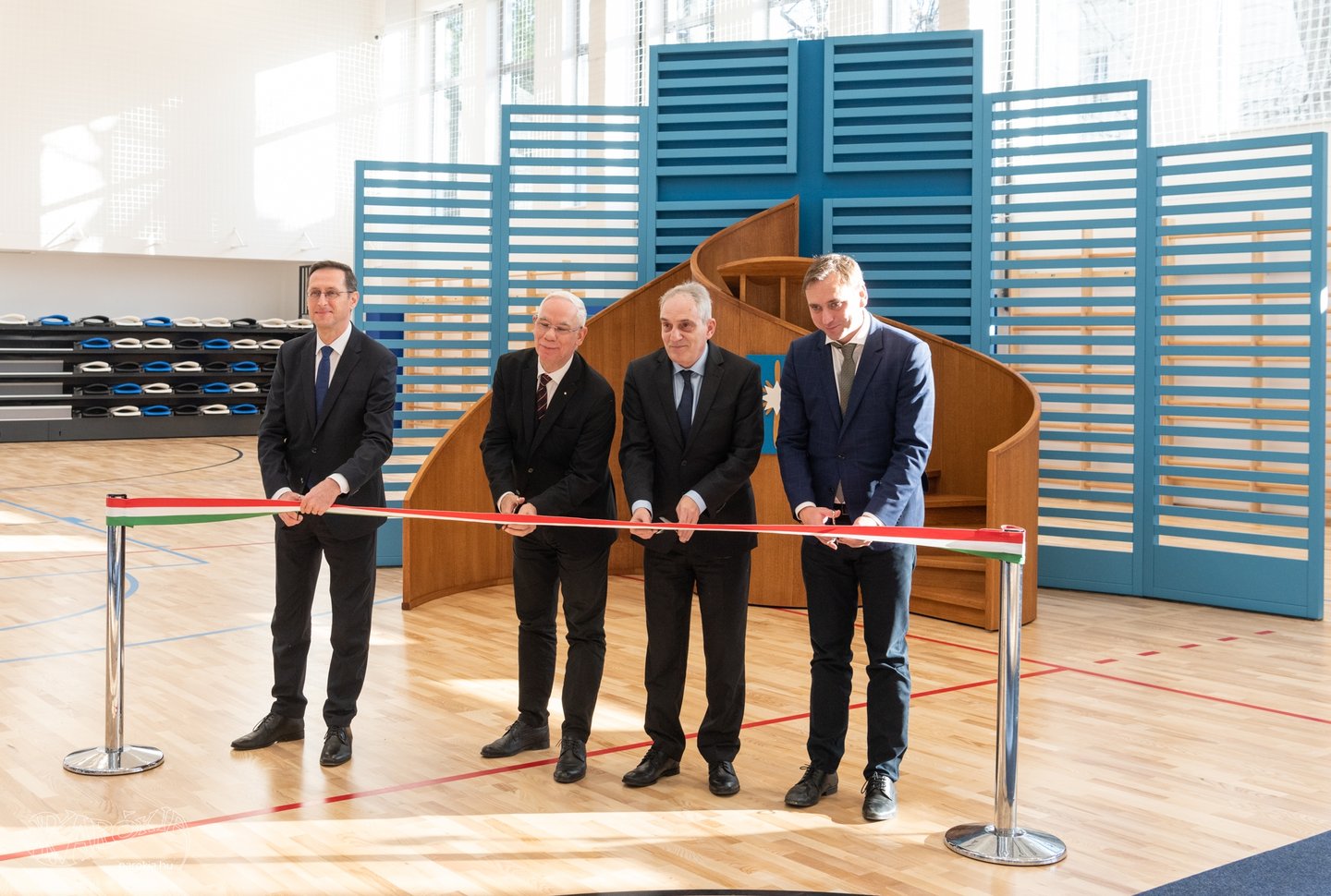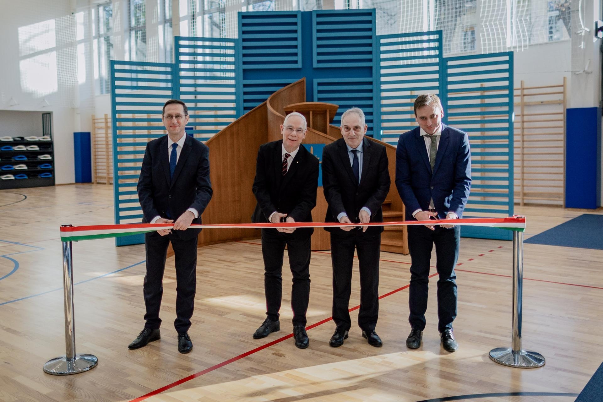 Az ünnepség végén Balog Zoltán, Varga Mihály, Tombor László és Őrsi Gergely II. kerületi polgármester a nemzeti színű szalag átvágásával szimbolikusan is felavatta az új tornacsarnokot – az esemény a Szózat közös eléneklésével zárult.