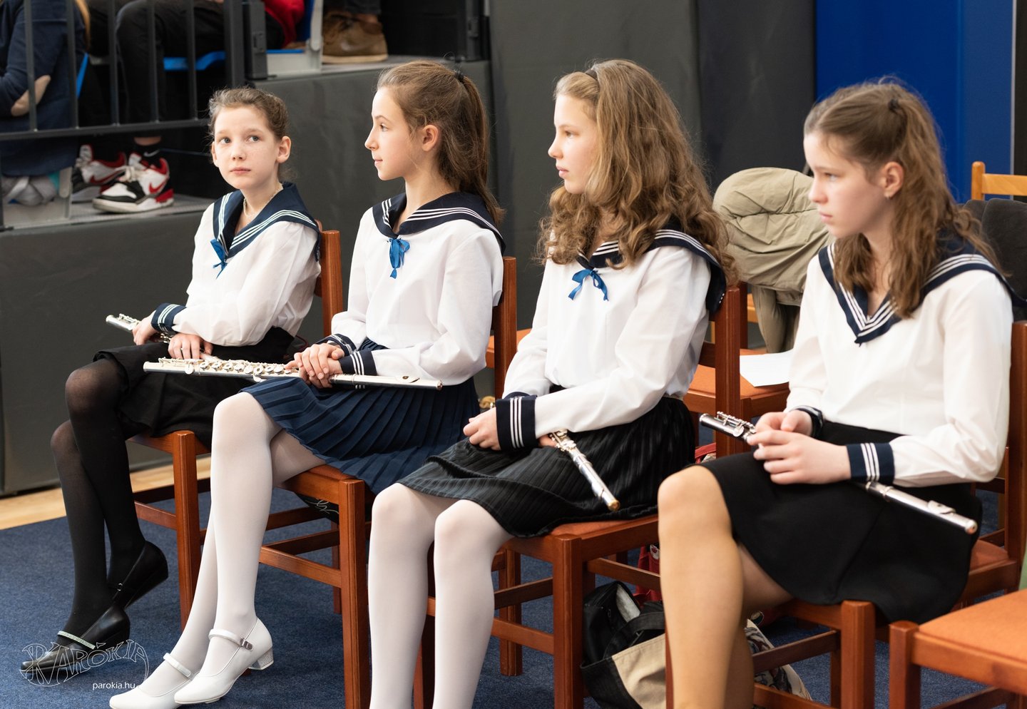 Az ünnepséget zenei betétek is kísérték: az 5.a. osztály négy tanulója az Ibolya című darabot adta elő fuvolán, az iskola kórusa pedig Balázs Árpád: Bodzavirág című kórusművét – a Baár–Madas egykori diákja, Nemes Nagy Ágnes: Tavaszi felhők című versének feldolgozását. A szintén öregdiák Balla Gergely Loránt, a Platon Karataev zenekar énekese formációja legutóbbi albumának címadó dalát – Partért kiáltó – énekelte el. Az M4 sportriportere, Berkesi Judit is korábbi Baár–Madas-osként szólt az ünnepség résztvevőihez, egy részletet felolvasva Németh László: Homályból homályba című művéből.