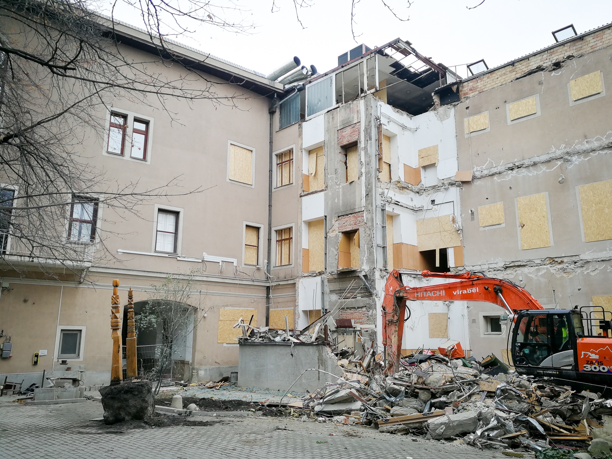 Az átköltözés időzítése össze volt ugyan hangolva a Ráday utcai székházon zajló munkálatok megkezdésével, de a kisebb csúszások miatt végül elkerülhetetlen volt, hogy a hivatal munkatársainak egy rövid ideig az építkezési folyamatokkal párhuzamosan is dolgoznia kelljen a székházban. „A Köztelek utcai főépületi részből ki kellett bontani egy nagyjából hatszor tizennégy négyzetméteres területet. Amikor ezt bontották, néha az egész épület rezgett, mert annak részei elég merev rendszerrel kapcsolódnak össze. Azért is tolódott el kissé ennek a bontásnak a megkezdése, mert előtte meg kellett erősíteni azt az épületszakaszt, ami megmarad.” Aki tehette, ezalatt otthoni munkavégzésre állt át, de ez nem mindig és nem mindenki számára volt opció.