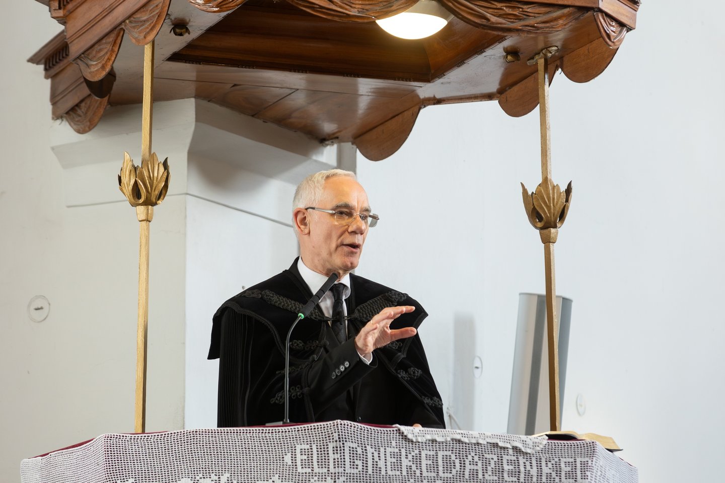 A püspök elmondta, a dicsőség keresése gyakori kísértés a lelkészi szolgálatban, ilyenkor pedig fontos tudatosítani, hogy az élet, az egyház és a gyülekezet nem velünk kezdődött, és bízunk benne, hogy nem is velünk fog végződni. „Dunavecsén 1550 óta élnek reformátusok, a szolgálatba lépő lelkészek folytatták, amit elődjük elkezdett. Azzal, hogy egyedül az Övé a dicsőség, azzal Isten nem elvesz tőlünk, hanem ad valamit. Azt, hogy mindig Vele legyünk. A dicsőség nem fizikai helyen, hanem Jézus Krisztusban van, de mégis keressük a bizonyítékokat arra, amit a világ elé tudunk tenni. A dicsőség jele lehet például egy Krisztus szeretetétől mosolygó arc, vagy az egyenes, tiszta beszéd. Azt kívánjuk a gyülekezet új lelkészeinek, hogy ezek a jelek megmutatkozzanak közöttük.”