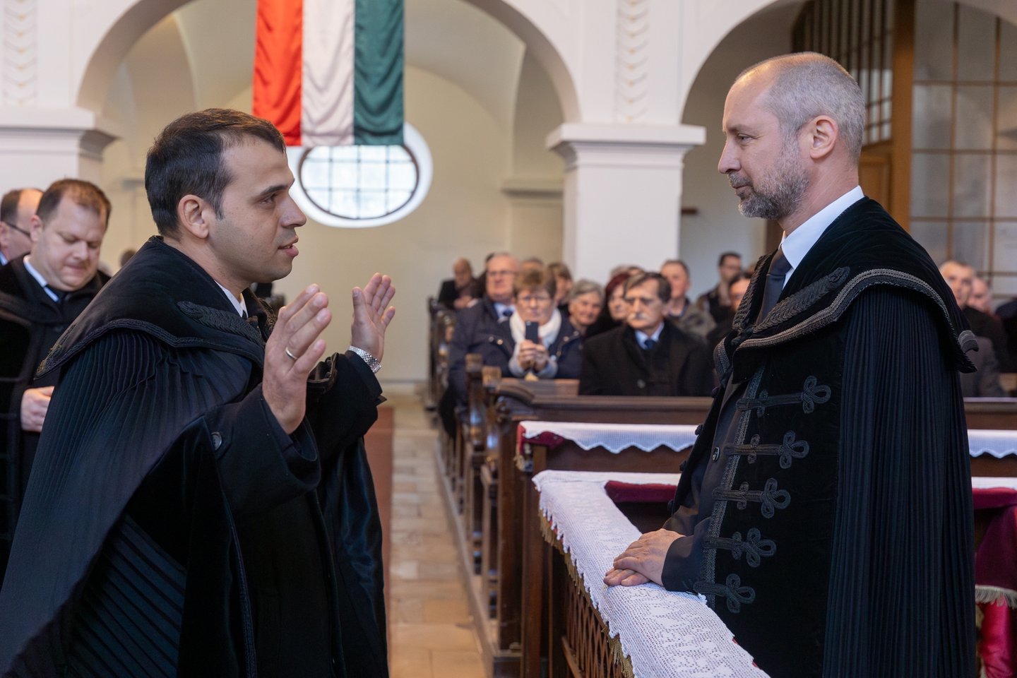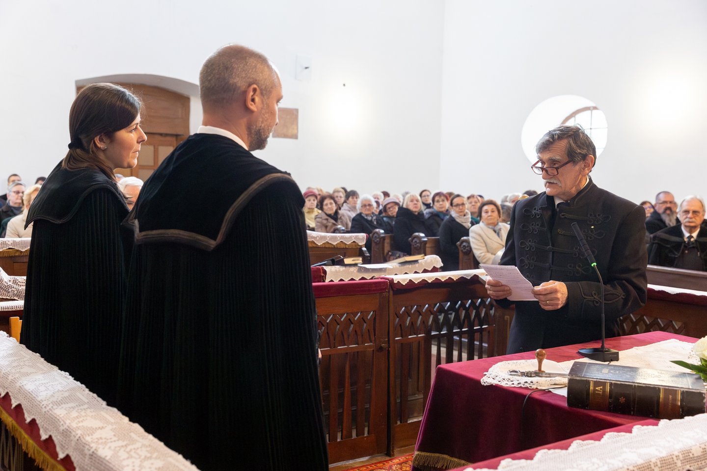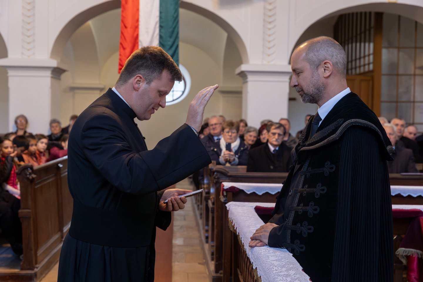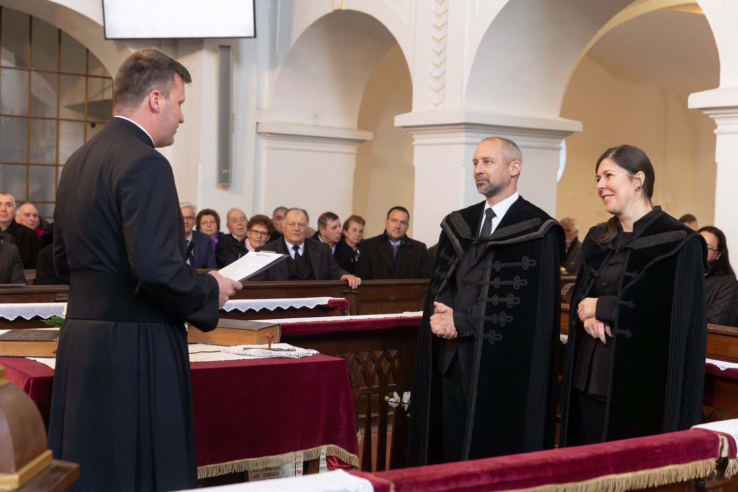 A meghívott vendégek közül elsőként Bese Gergő plébános, a Dunavecsei Római Katolikus Egyházközség és az egész katolikus közösség nevében köszöntötte a lelkészházaspárt, Jeremiás próféta szavait idézte: „Az Úr Igéje csak gyalázatot és gúnyt szerzett nekem egész nap. Azt gondoltam: nem törődöm vele, nem szólok többé az ő nevében. De perzselő tűzzé vált szívemben, csontjaimba van rekesztve. Erőlködtem, hogy magamban tartsam, de nincs rajta hatalmam.” (Jer 20,8-9.) Könnyű terepen nem kihívás Istenről beszélni, nehéz terepen annál inkább. Szeressétek a dunavecseiket, győzzétek le a rosszat jóval! Kedves vecseiek, becsüljétek meg a lelkészházaspárt, hordozzátok őket imádságban!” – mondta.