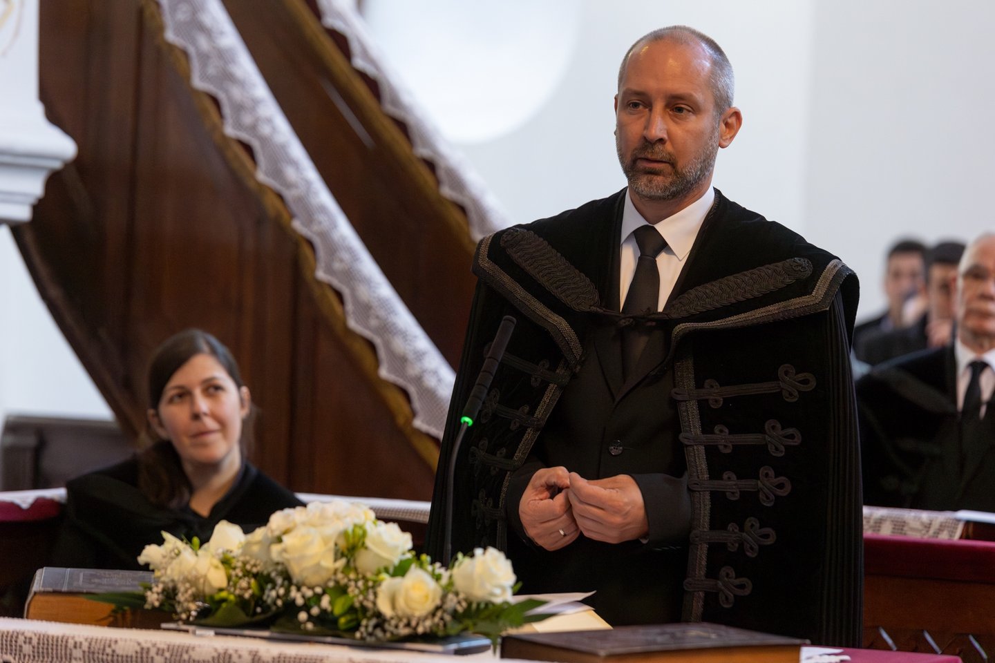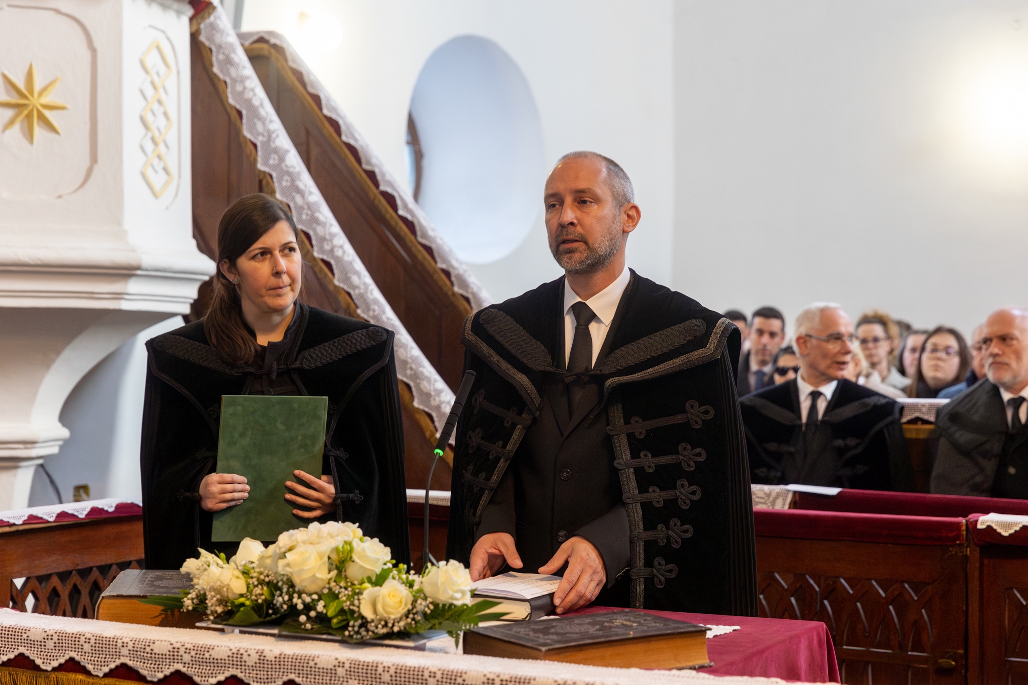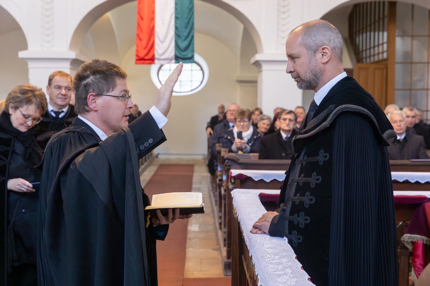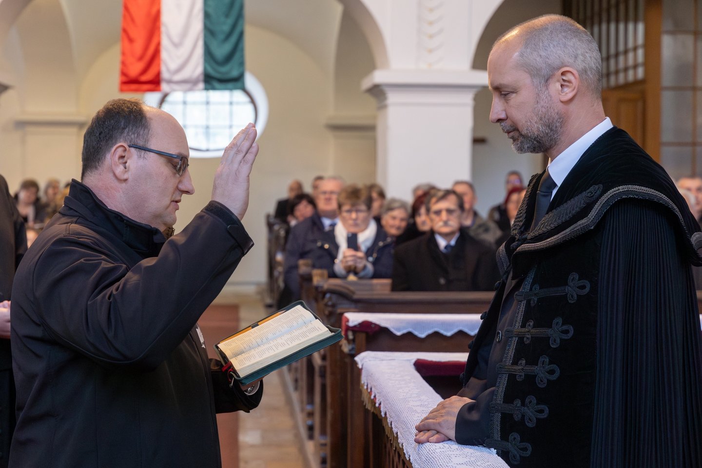 A meghívott vendégek közül elsőként Bese Gergő plébános, a Dunavecsei Római Katolikus Egyházközség és az egész katolikus közösség nevében köszöntötte a lelkészházaspárt, Jeremiás próféta szavait idézte: „Az Úr Igéje csak gyalázatot és gúnyt szerzett nekem egész nap. Azt gondoltam: nem törődöm vele, nem szólok többé az ő nevében. De perzselő tűzzé vált szívemben, csontjaimba van rekesztve. Erőlködtem, hogy magamban tartsam, de nincs rajta hatalmam.” (Jer 20,8-9.) Könnyű terepen nem kihívás Istenről beszélni, nehéz terepen annál inkább. Szeressétek a dunavecseiket, győzzétek le a rosszat jóval! Kedves vecseiek, becsüljétek meg a lelkészházaspárt, hordozzátok őket imádságban!” – mondta.