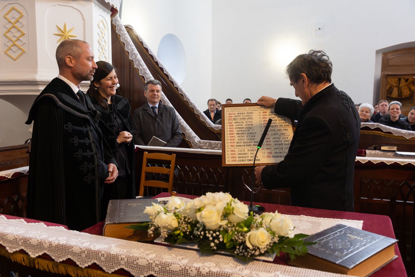 Vörös Sándor, Dunavecse polgármestere felelevenítette, hogy a város története a kezdetektől fogva összeforrt a reformátussággal. „Azt kívánom, hogy hagyjatok nyomot a településen, ahogyan elődeitek tették! Fontos, hogy a gyülekezetnek odaadó lelki vezetője, az intézményeinknek pedig megfelelő fenntartója legyen.”