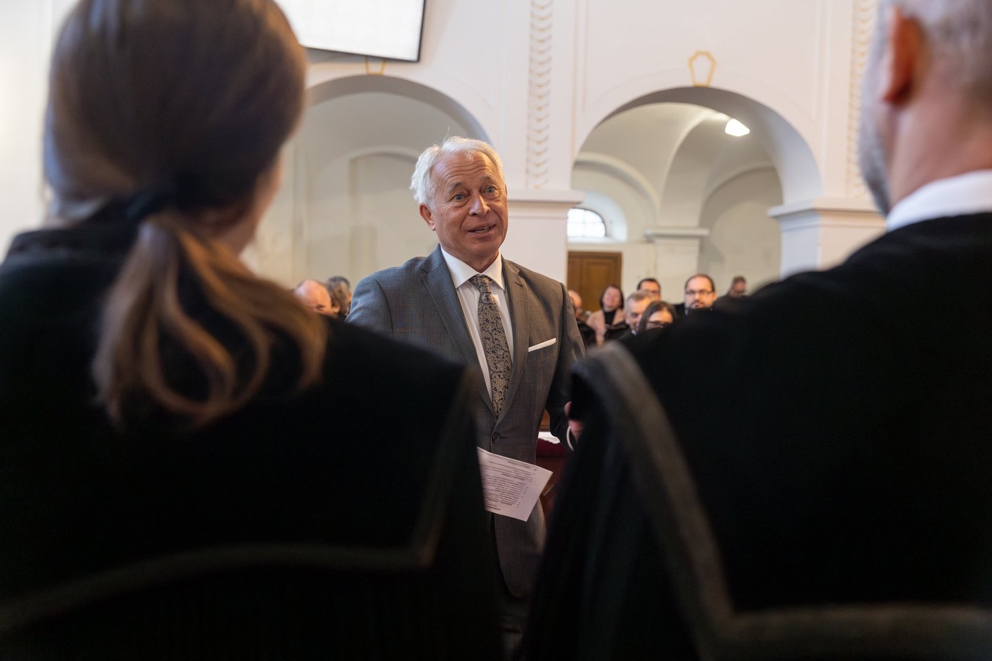 Az iskolai kórus és a gyermekek által készített ajándék átadása után a gyülekezet főgondnoka köszöntötte a lelkipásztort. Hernáth László hitet, reményt és szeretetet kért Arany-Michels Richárd és felesége életére, egyúttal jókedvet, amely reménysége szerint meg fogja határozni a Dunavecsén töltött mindennapjaikat. A főgondnok nyújtotta át a gyülekezet ajándékát, melyen a Dunavecsei Református Egyházközség lelkipásztorainak bekeretezett névsora található, immár Arany-Michels Richárd nevével bővítve.