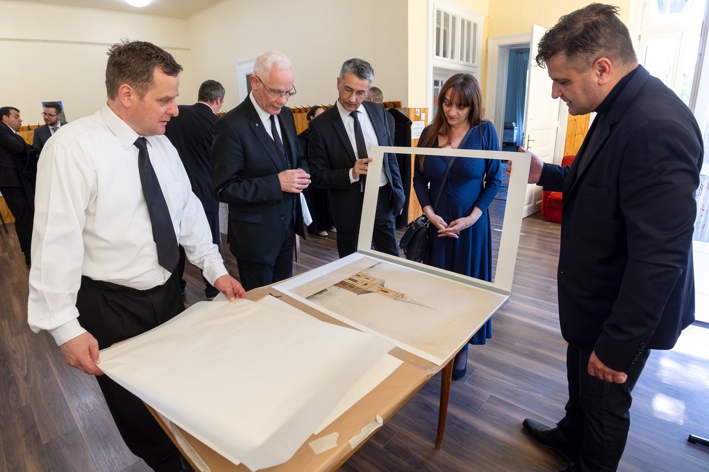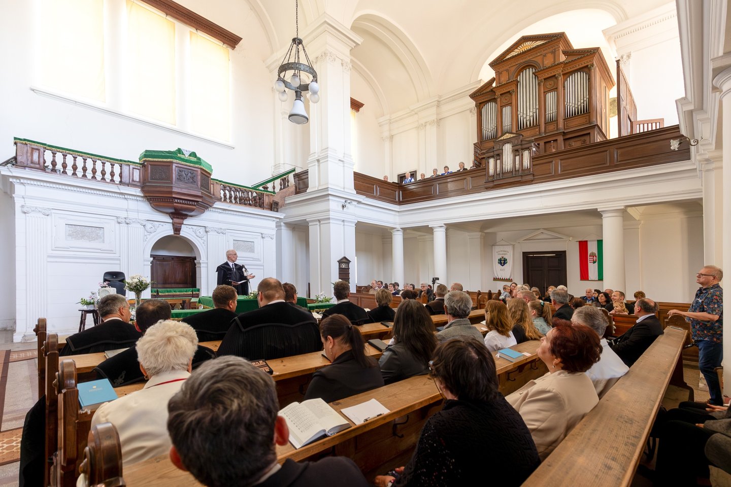 Balog Zoltán dunamelléki püspök a tervrajzok eredetijének megtekintése után a felújított gyülekezeti teremtől vonult át a református templomba a palástos lelkipásztorok kíséretében, ahol igehirdetéssel szolgált az ünnepi istentiszteleten.