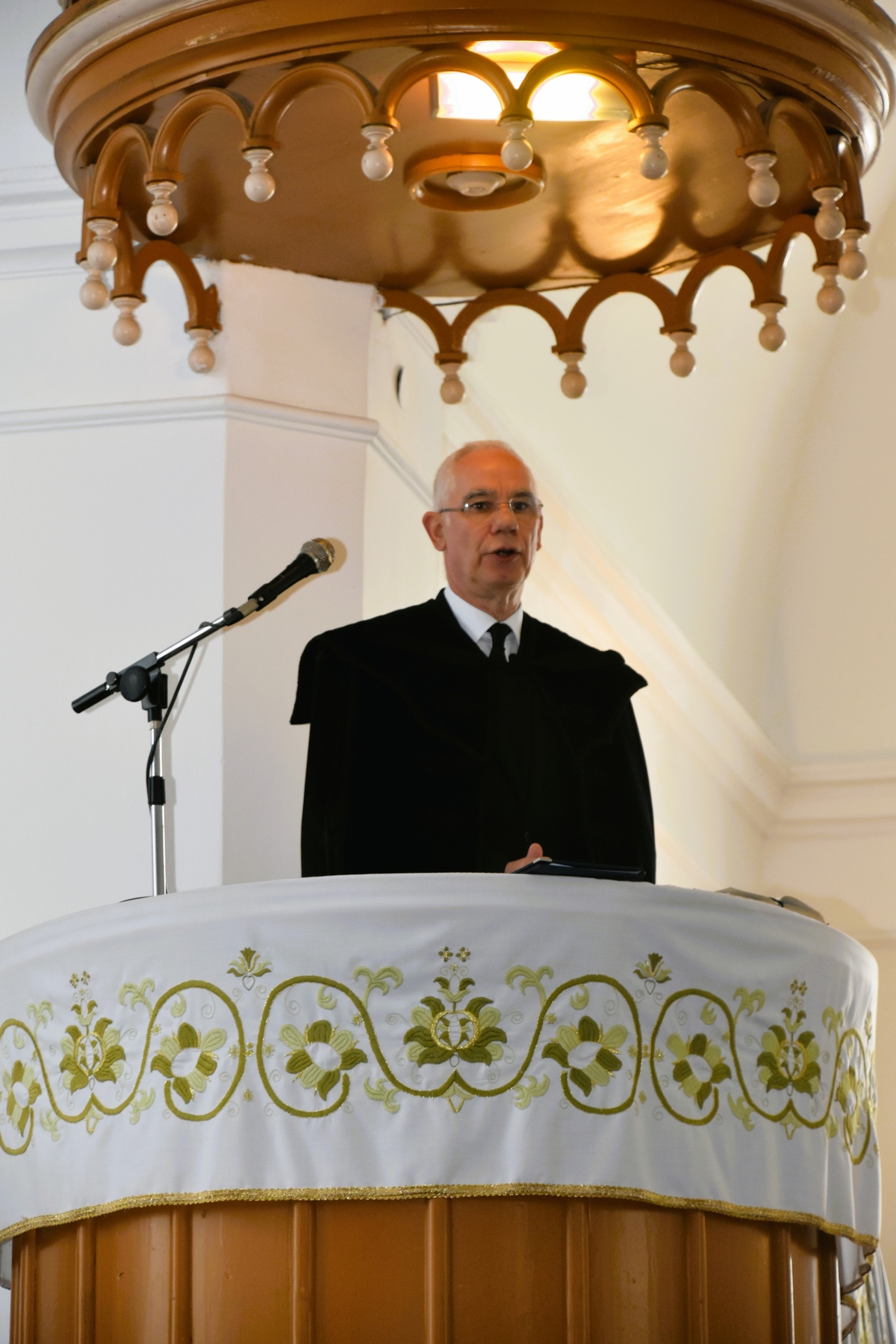 „Mivel érdemes kezdeni a napunkat, hetünket, évünket vagy éppen az életünket? –tette fel püspök a kérdést. Kezdjük a kezdettel – hangzott a válasz. A Biblia, az egyik evangélium kezdőszava is a kezdetben szó. A mi kezdetünk is ebben a szóban van, mert a mi életünket Ő már akkor is kezében tartotta, amikor mi még a világra sem jöttünk. A napunkat is lehet, sőt, szabad a napi igével kezdeni. Ez összekötő kapocs lehet nekünk, keresztyéneknek. A felolvasott levélrészlet az adakozásra helyezi a fókuszt. Hol kezdődik az adakozás? Ott, ahol minden döntésünk kezdődik.” Példaként, biztatásként elhangzott, hogy a magyarországi reformátusok soha ekkora támogatást nem gyűjtöttek az elmúlt hetven évben a kárpátaljai testvérek megsegítésére, mint most – hasonló mértékben adakoztunk, mint a nyugat-európai reformátusok. „Ha ismerjük, emlékezünk rá és nem felejtjük el Jézus Krisztus kegyelmét, akkor az igazi kiindulópont lehet a számunkra: a nehézségek közepette is megtapasztalhatjuk Isten gondviselő szeretetét, hálásan élhetünk a megpróbáltatásban is, és ezért hálából másokon is segíthetünk.”
