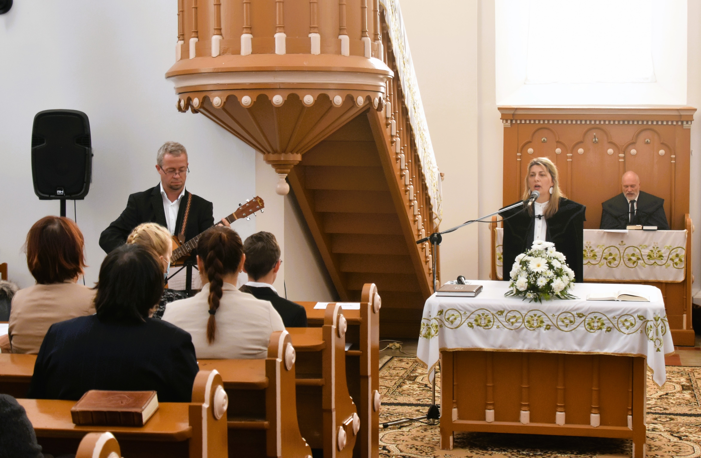 Lekcióként a meghívóra is felkerült 100. zsoltárt olvasta fel Gulyás Bíborka, az igehirdetés alapigéje pedig a Korinthusbeliekhez írt második levél 8. részének 7-15. versei voltak.
